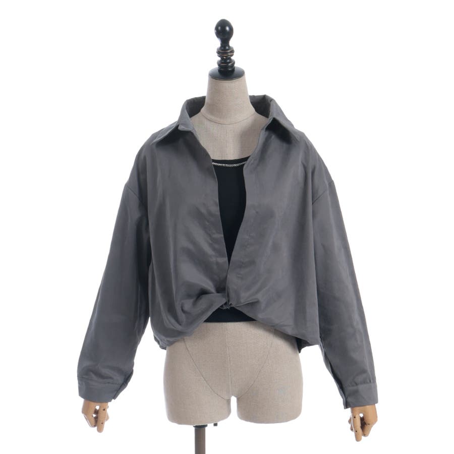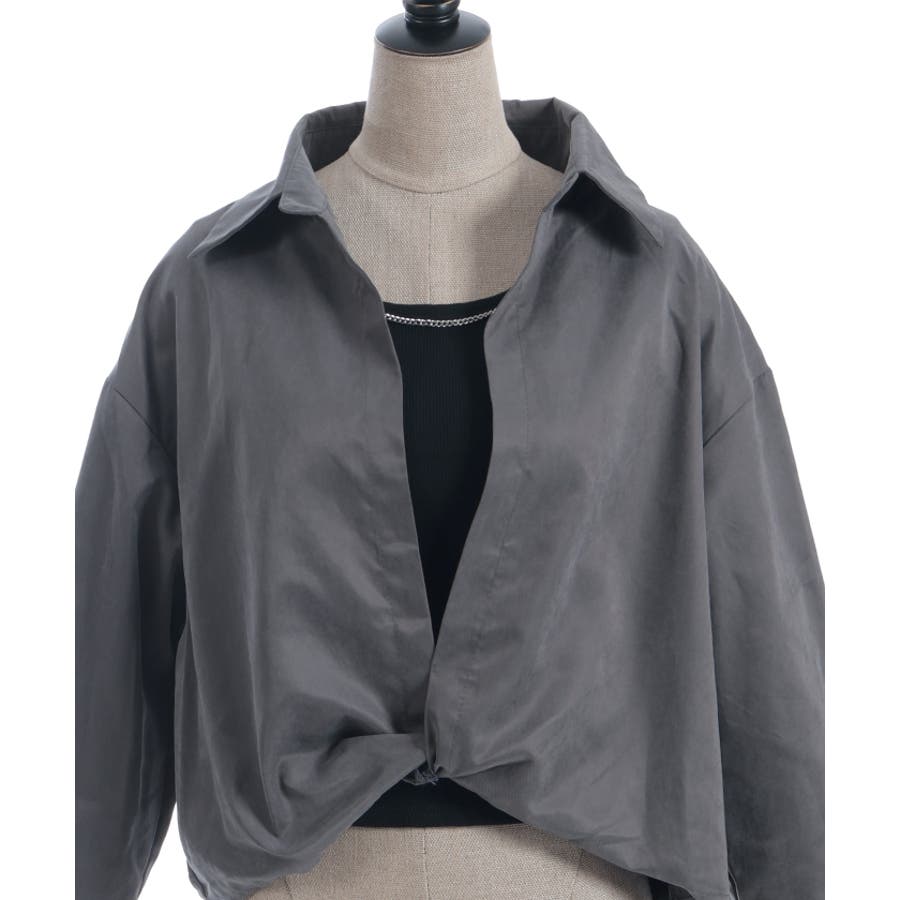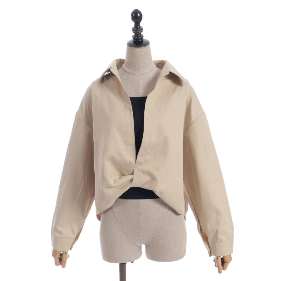 前身頃のねじりディテールがポイントで、立体感のあるシルエットを実現。