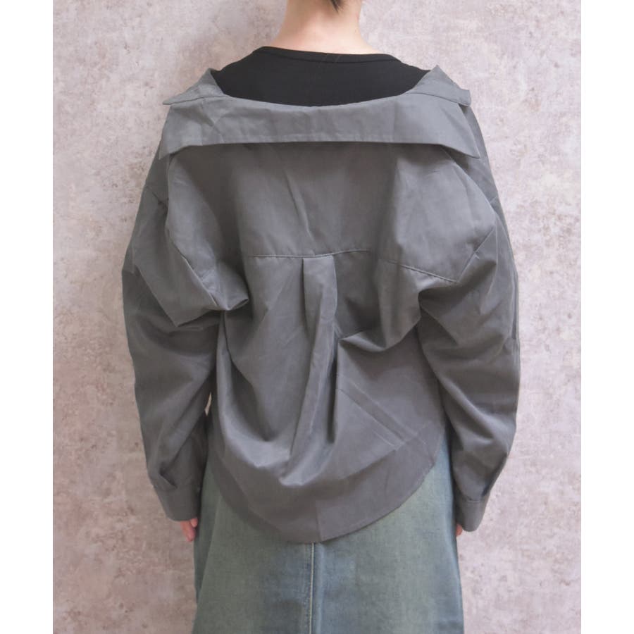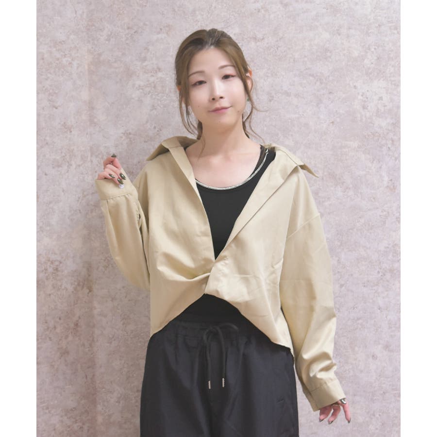 トレンドのレイヤードスタイルを楽しめるツイストデザインシャツ。