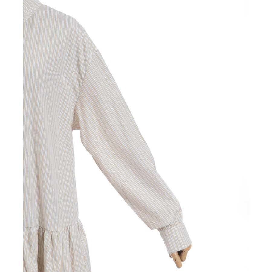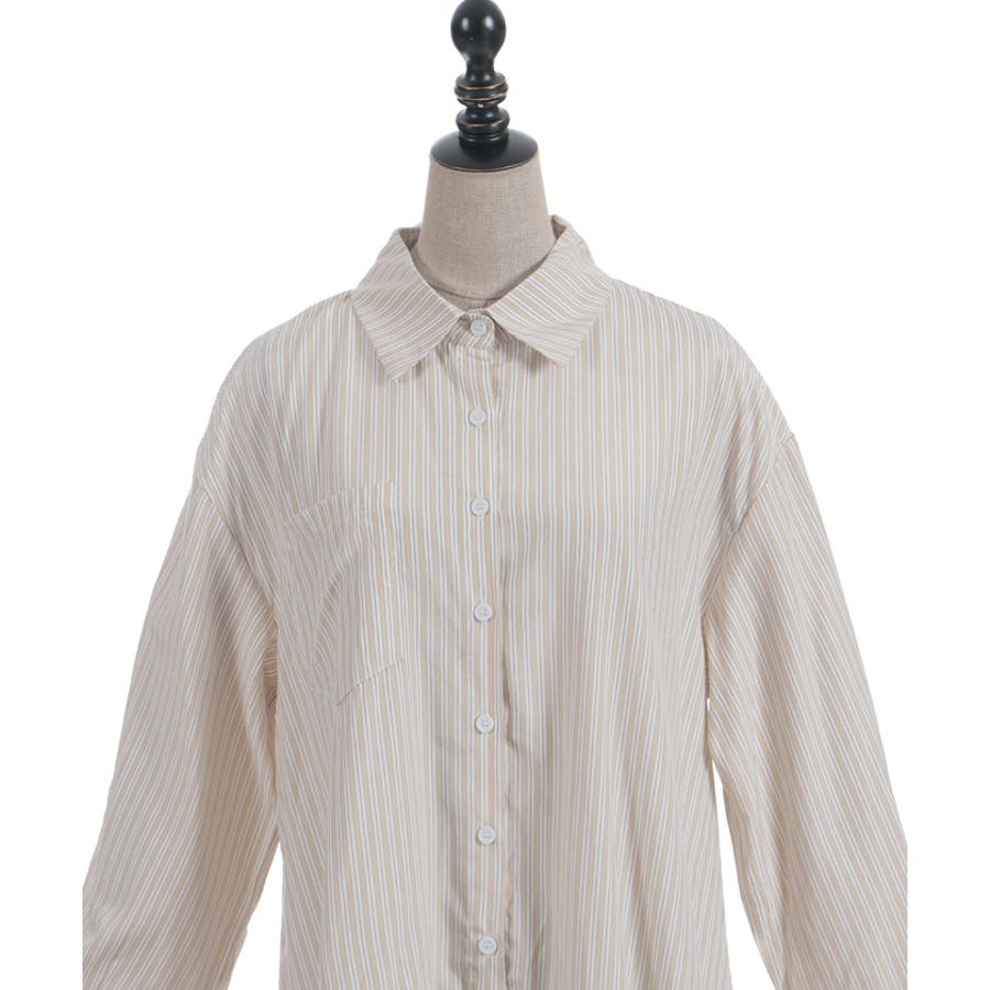 爽やかなストライプ柄が上品に映え、きちんと感と可愛らしさを両立したストライプチュニック。