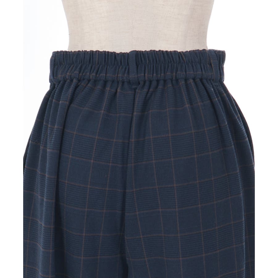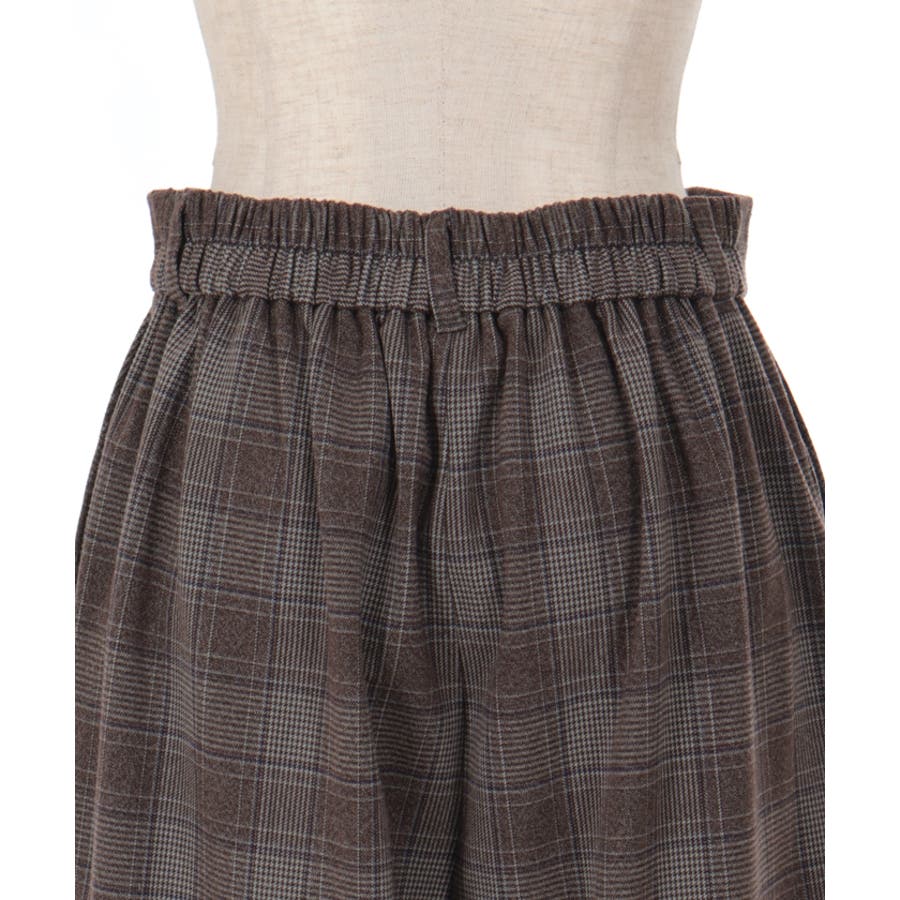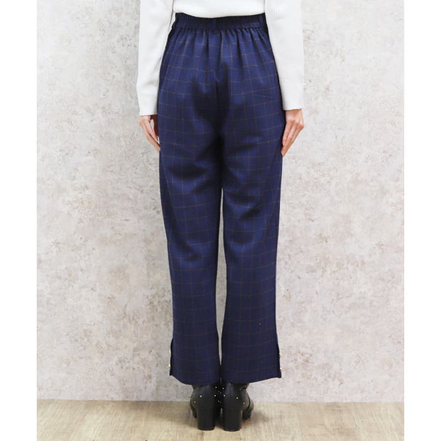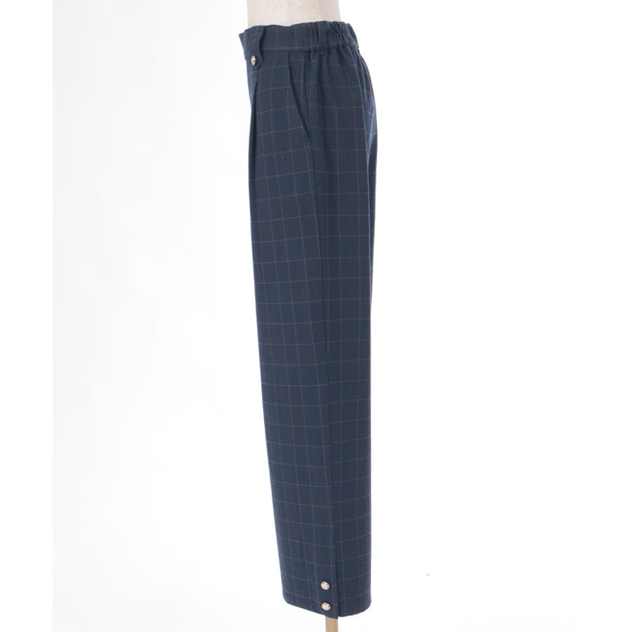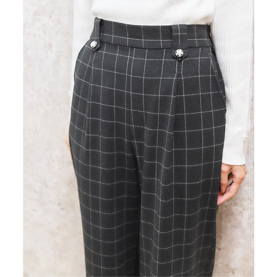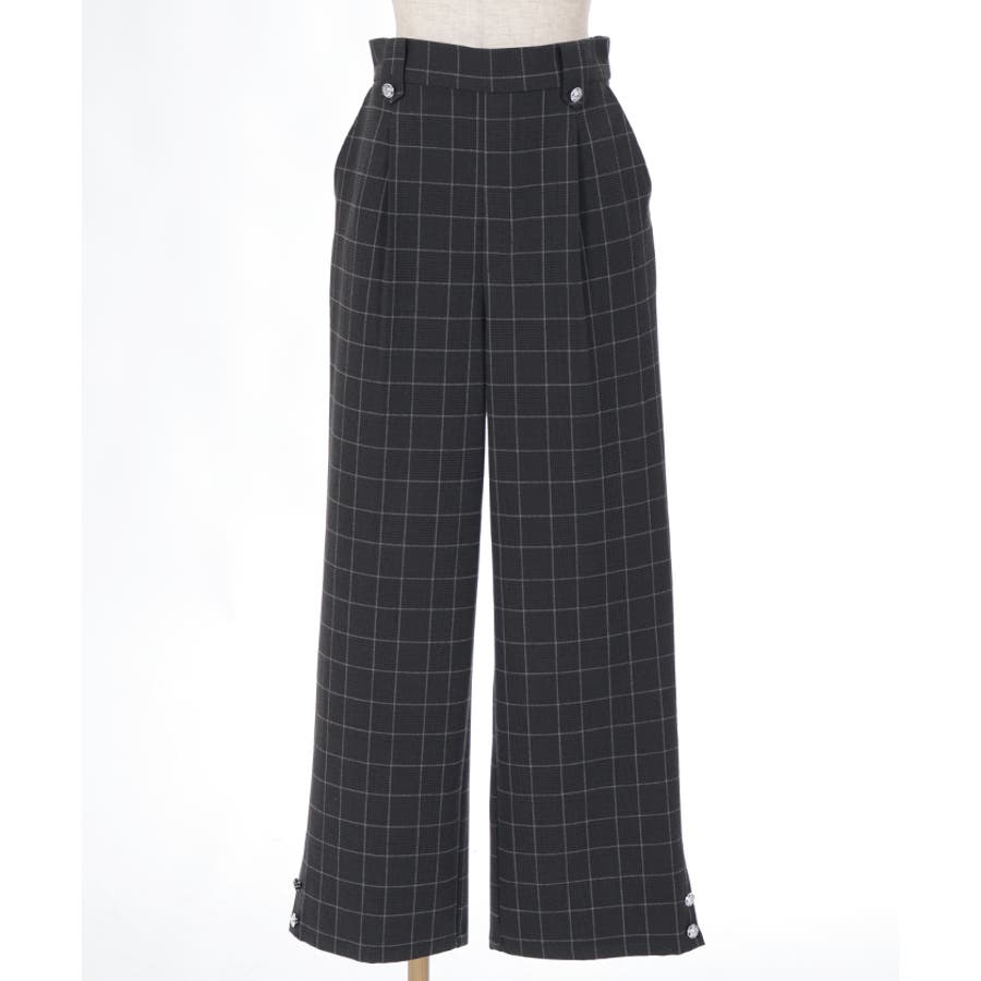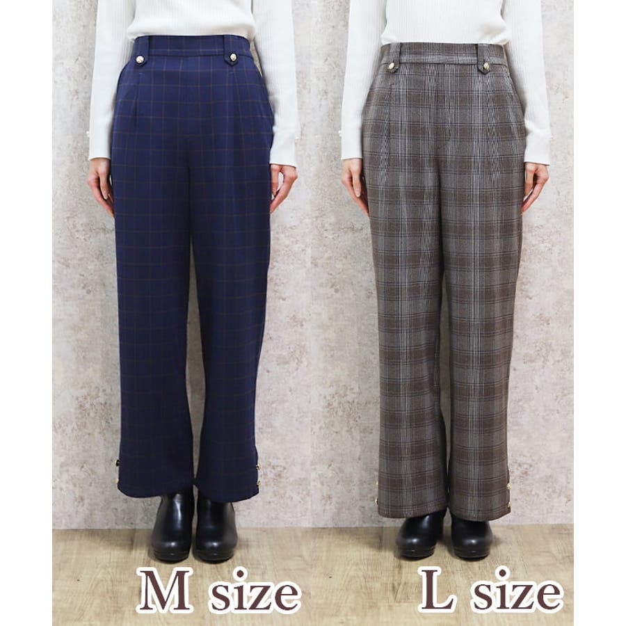 裾釦起毛チェックワイドパンツ