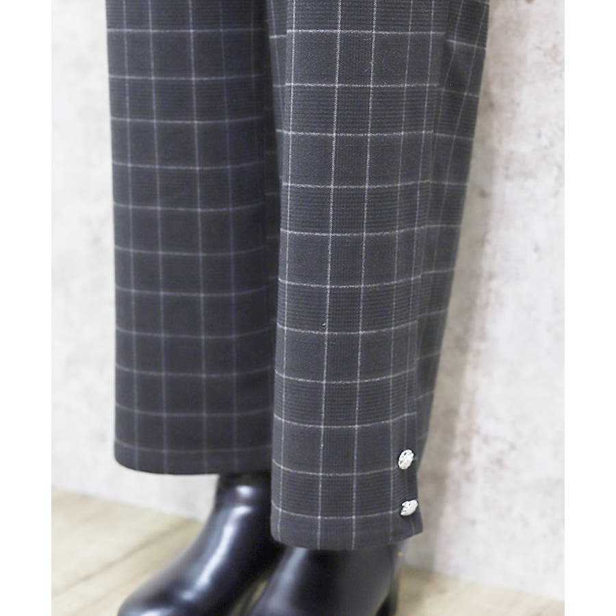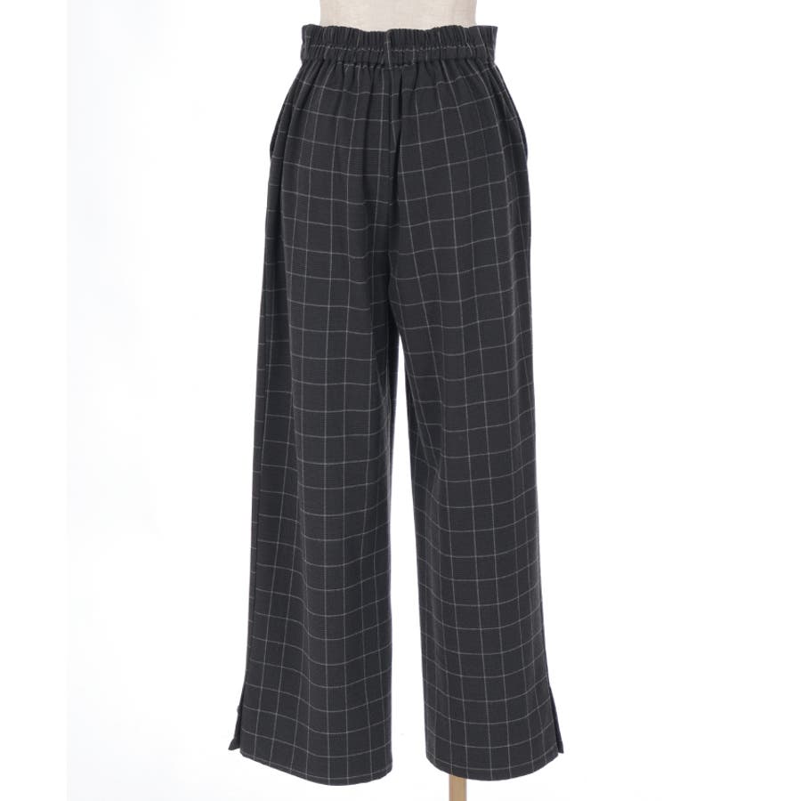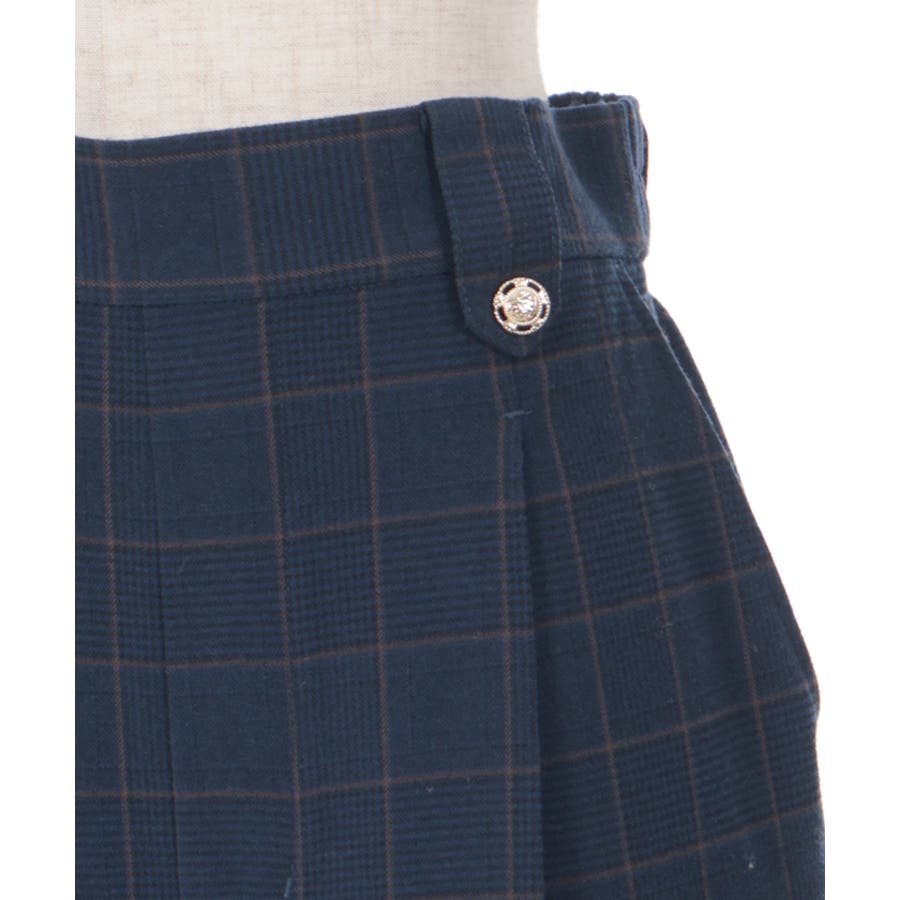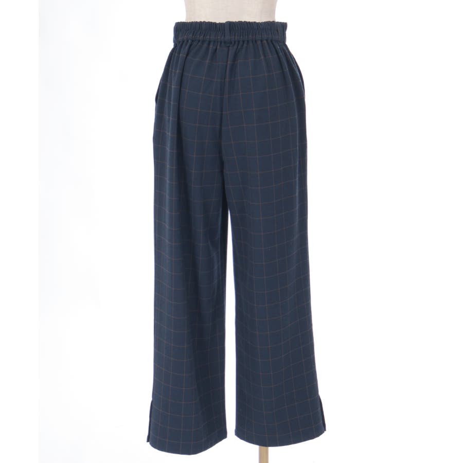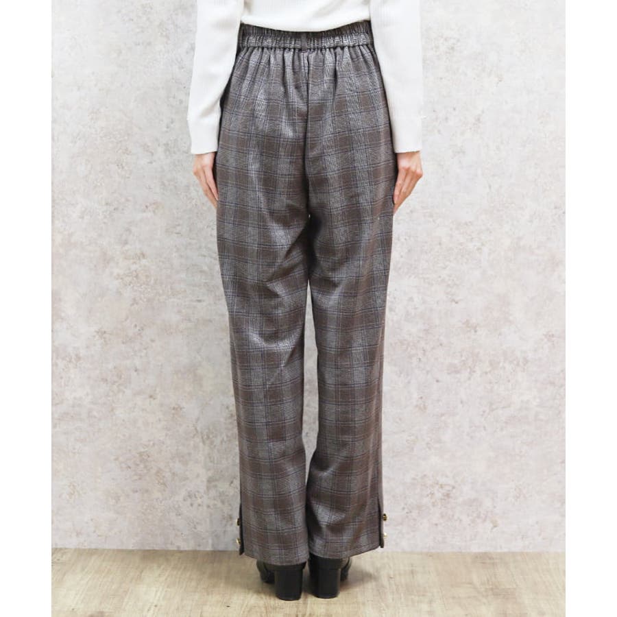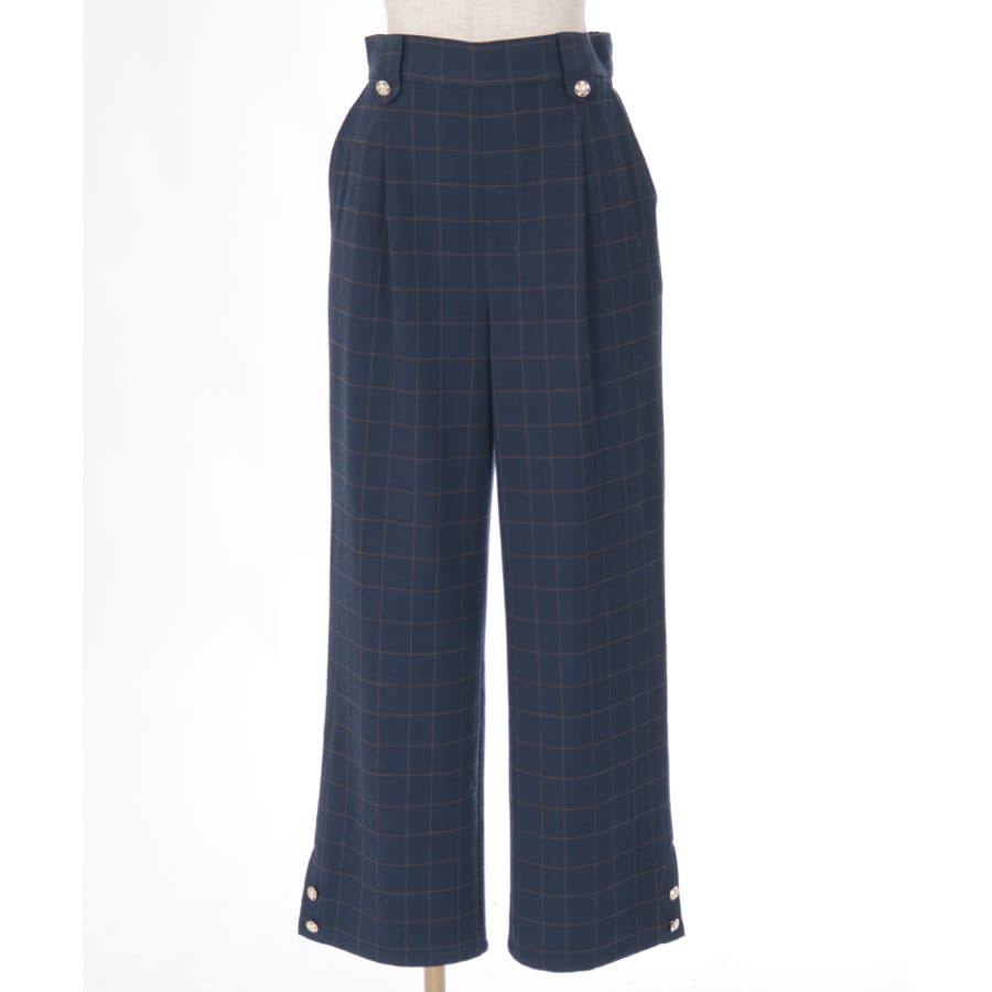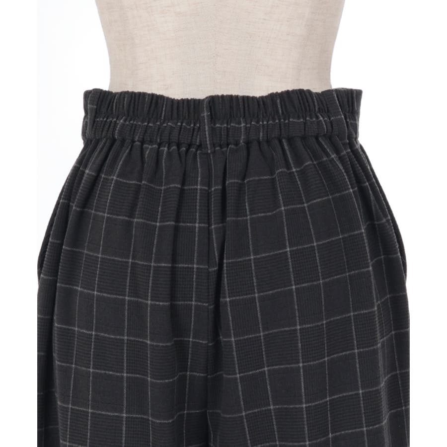 裾釦起毛チェックワイドパンツ
