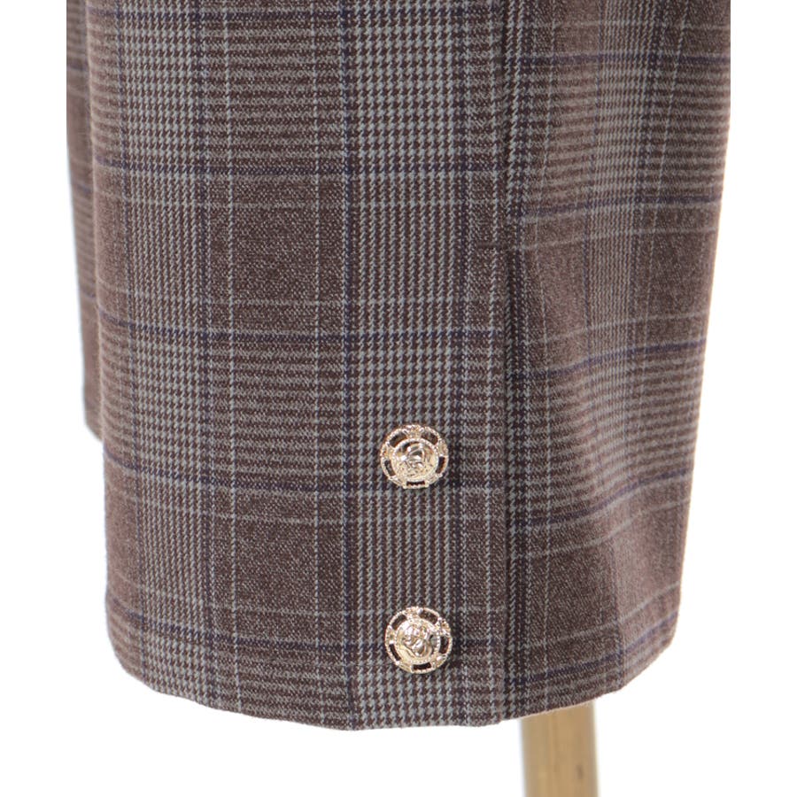 裾はトレンドライクなボタンデザインで、フェミニン感をプラス。