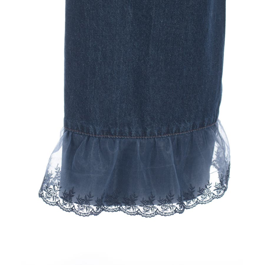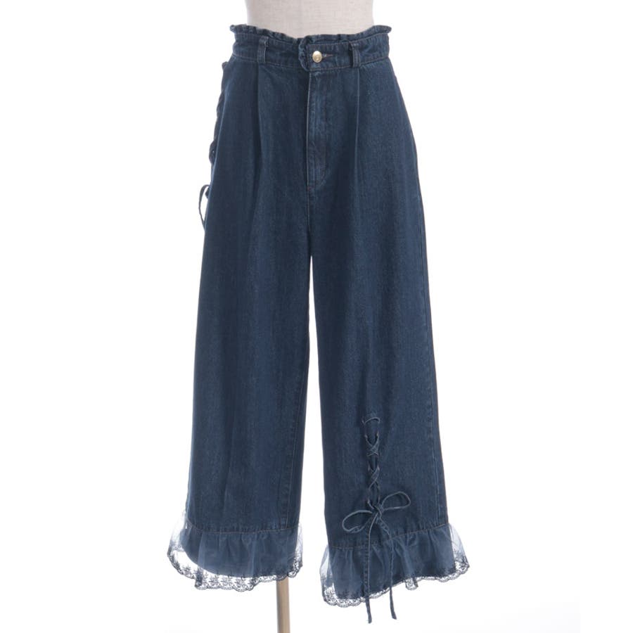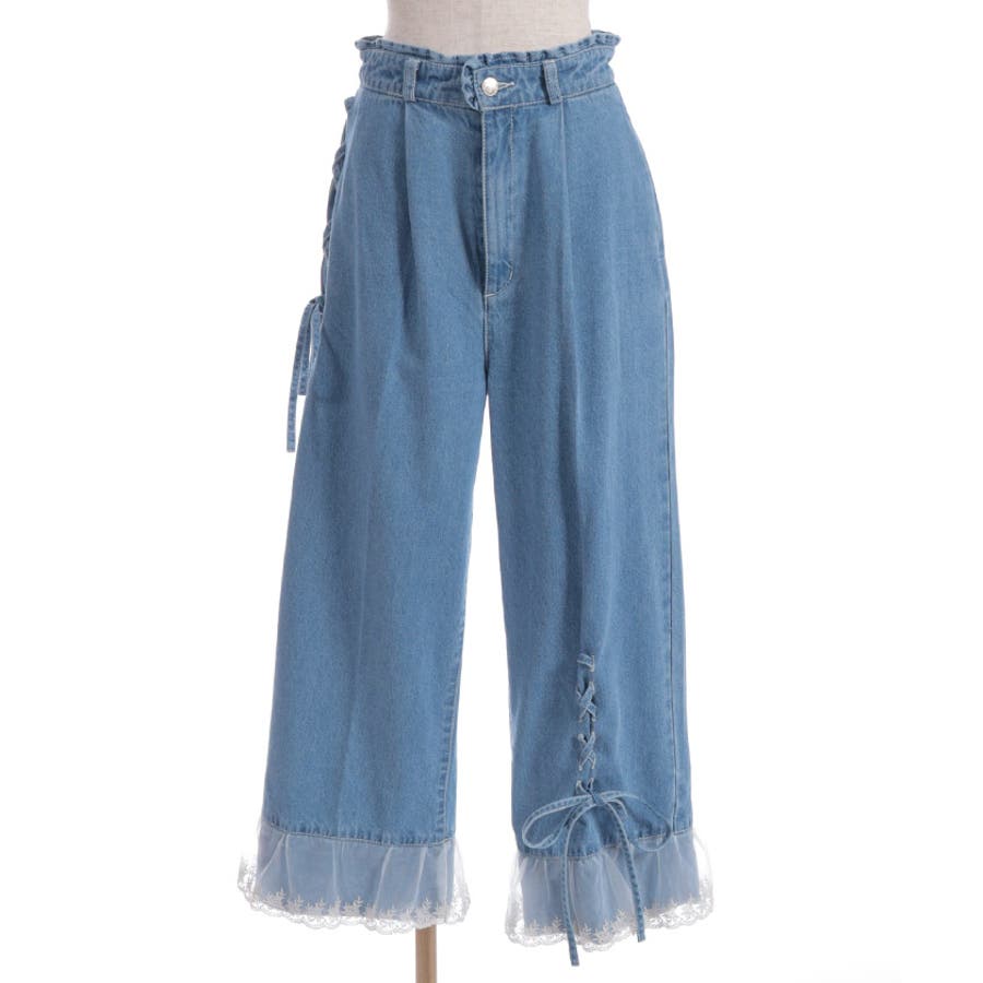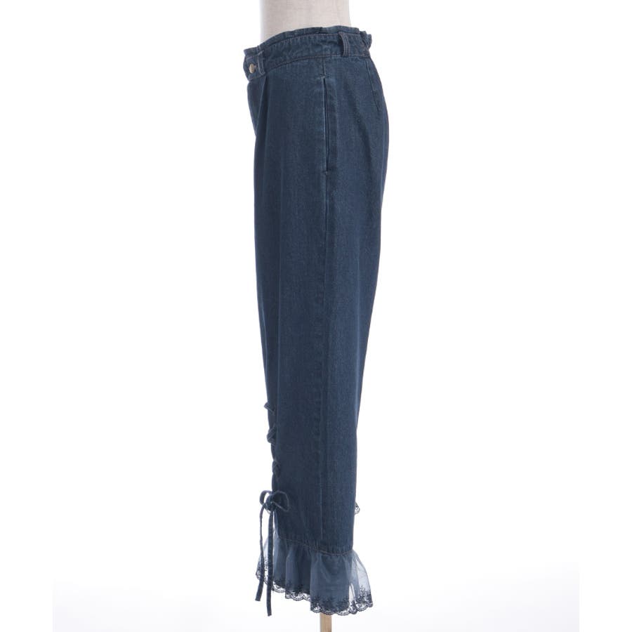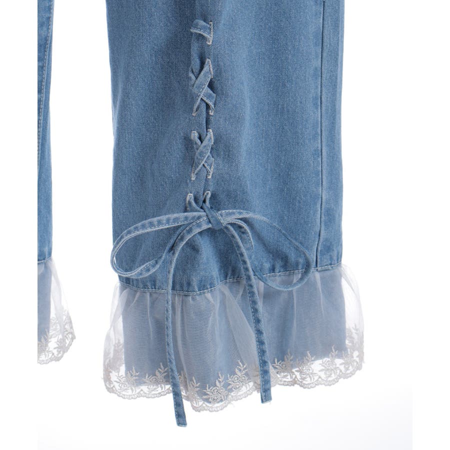 裾レースストレートデニムパンツ