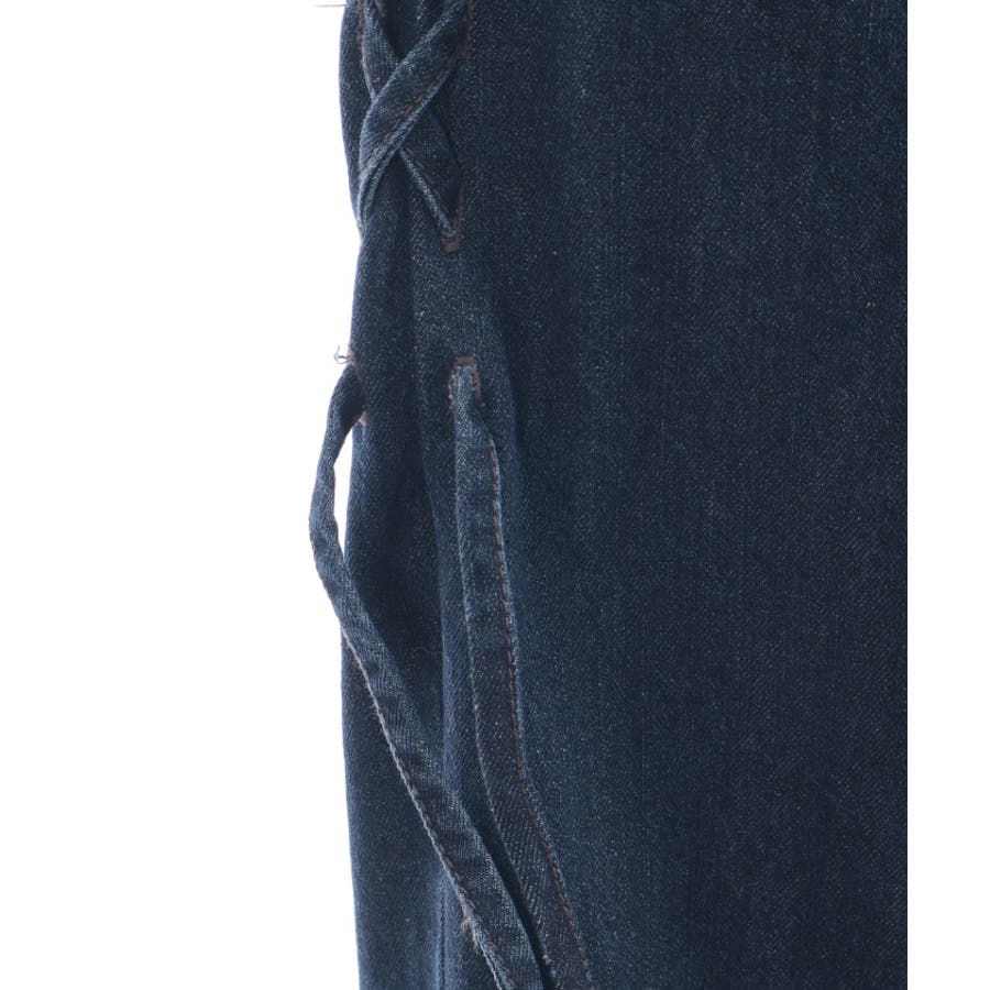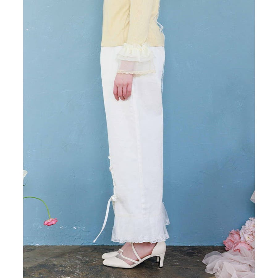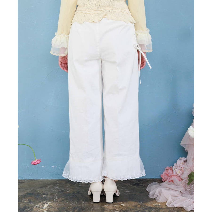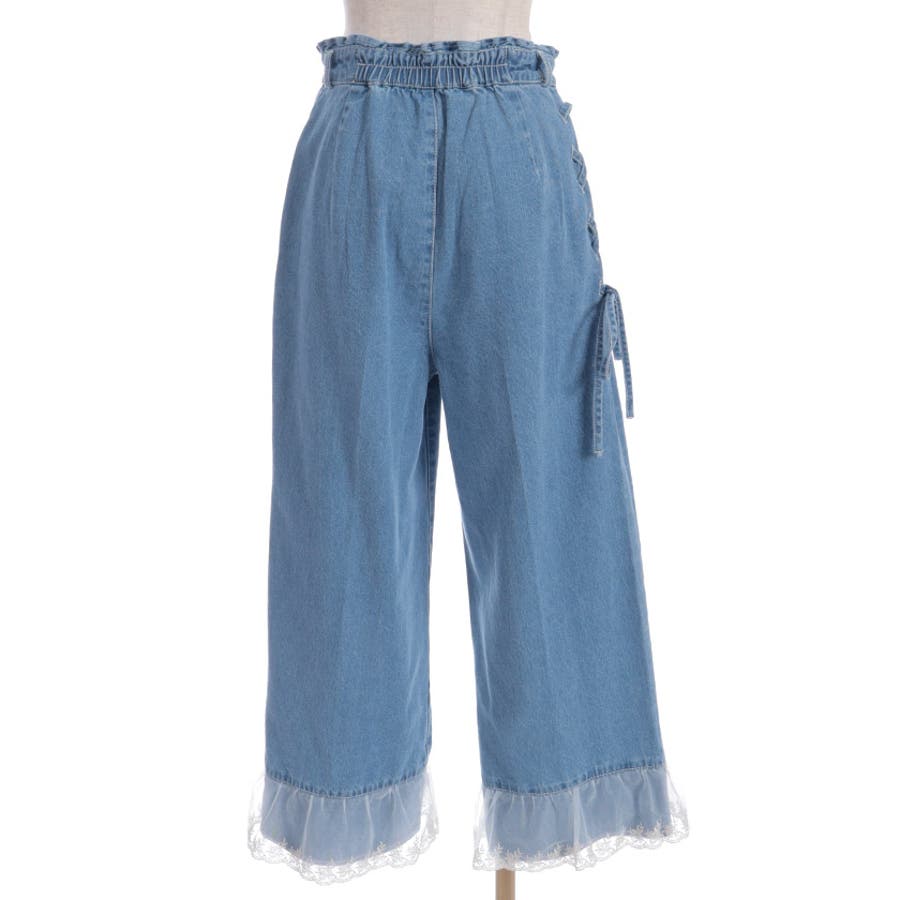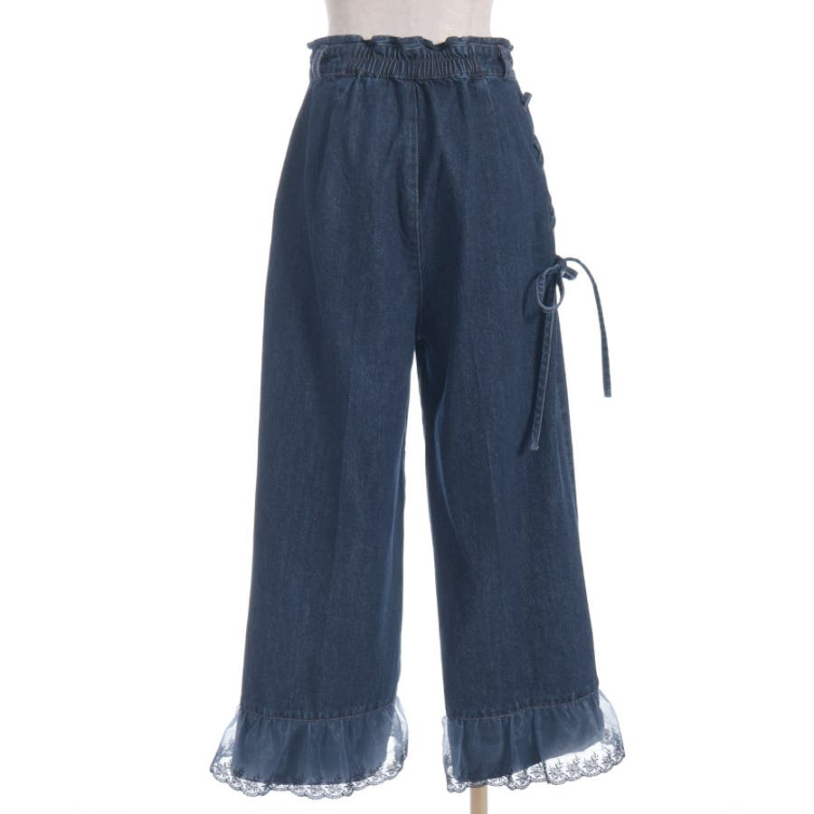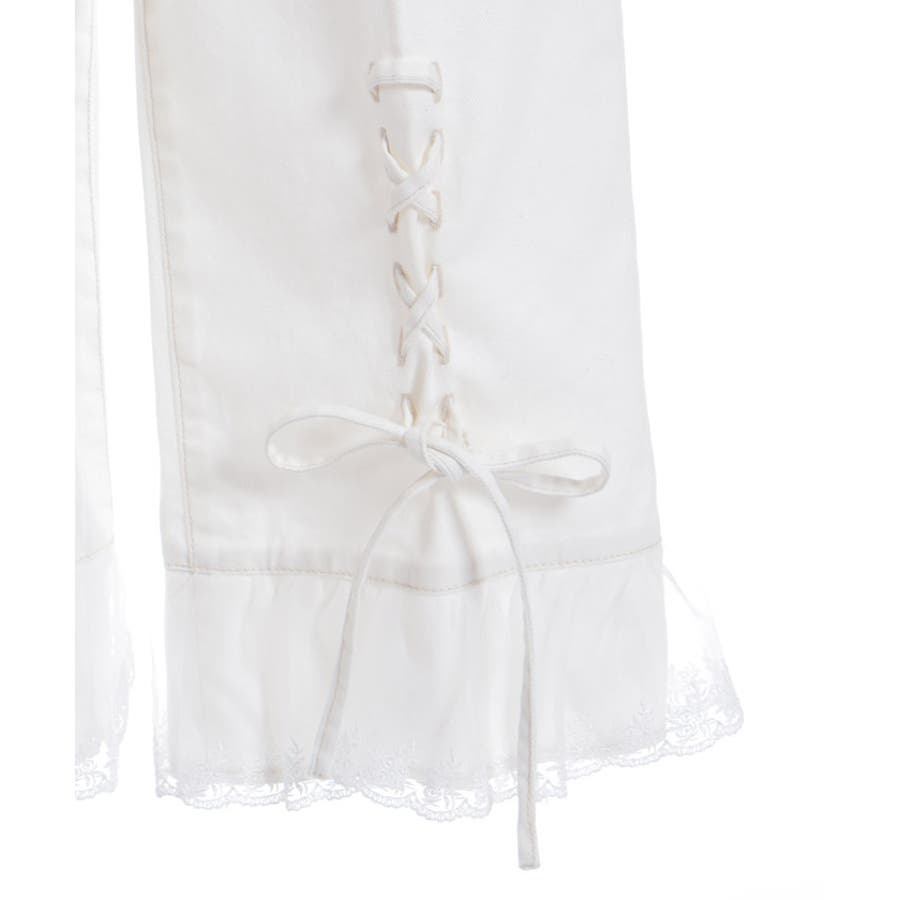 裾レースストレートデニムパンツ