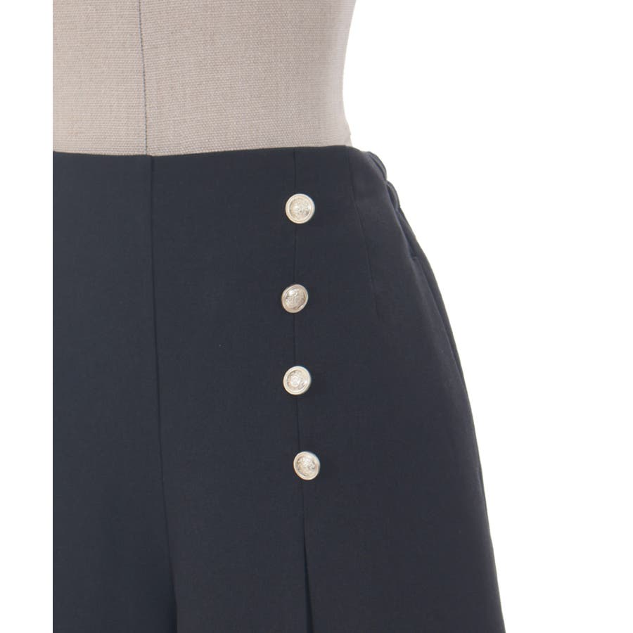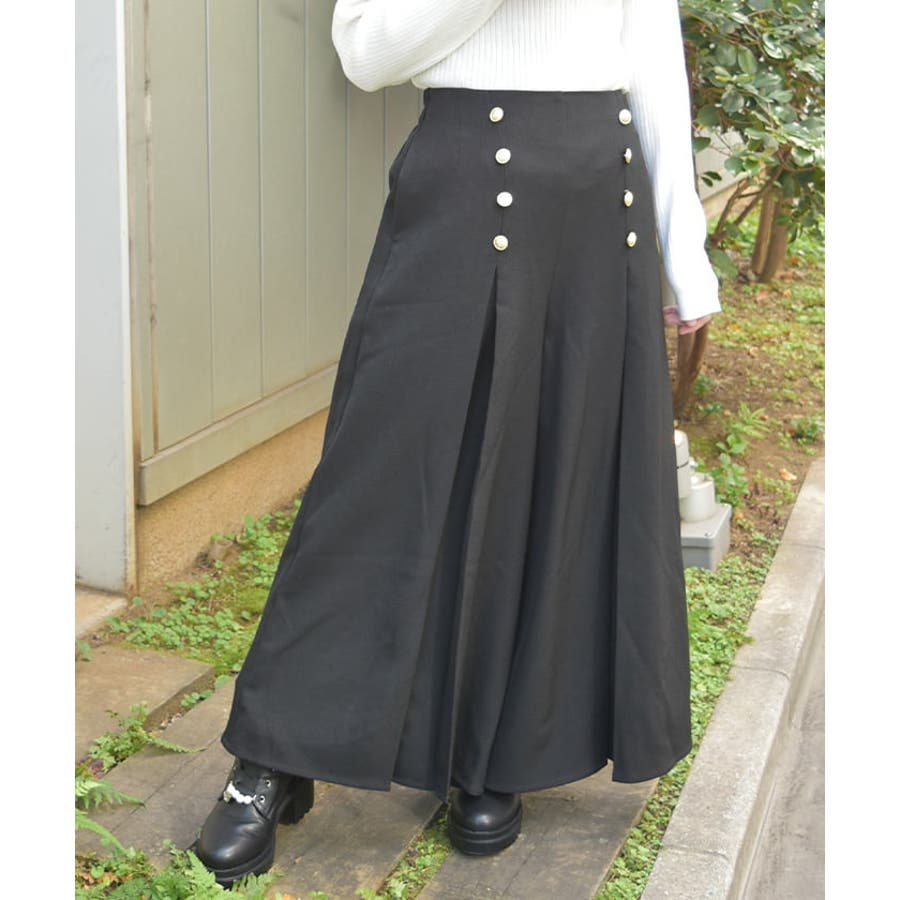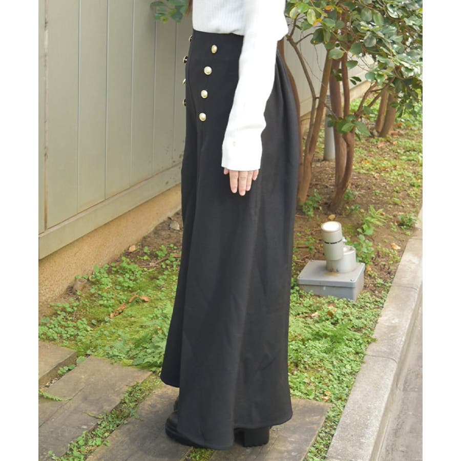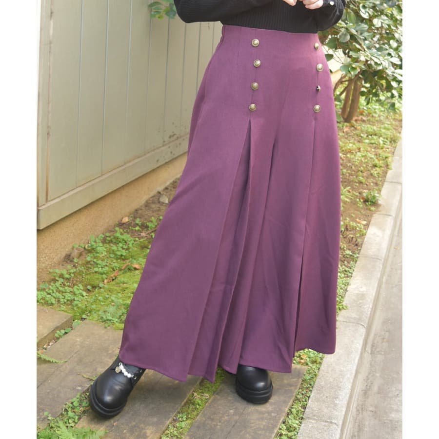 連ボタンのクラシカルなデザインがポイントのワイドパンツです。