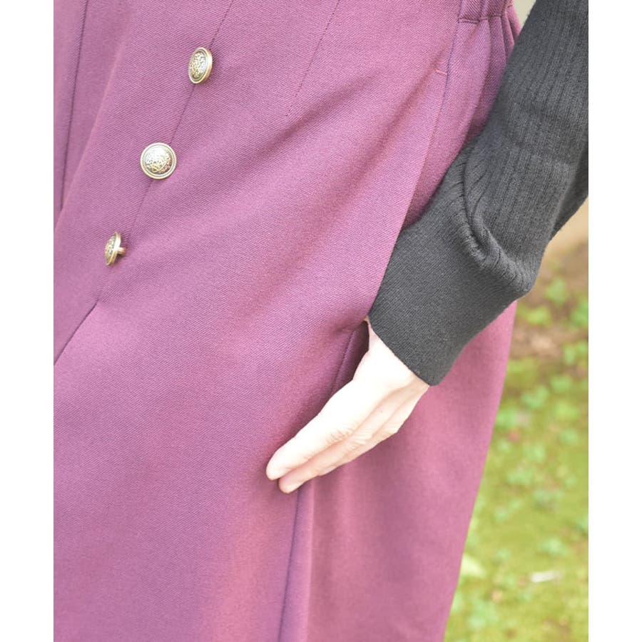 トレンドライクでレトロ感のある金ボタンは、パープルとクロで見え方の異なる色合いのボタンを使用しています。