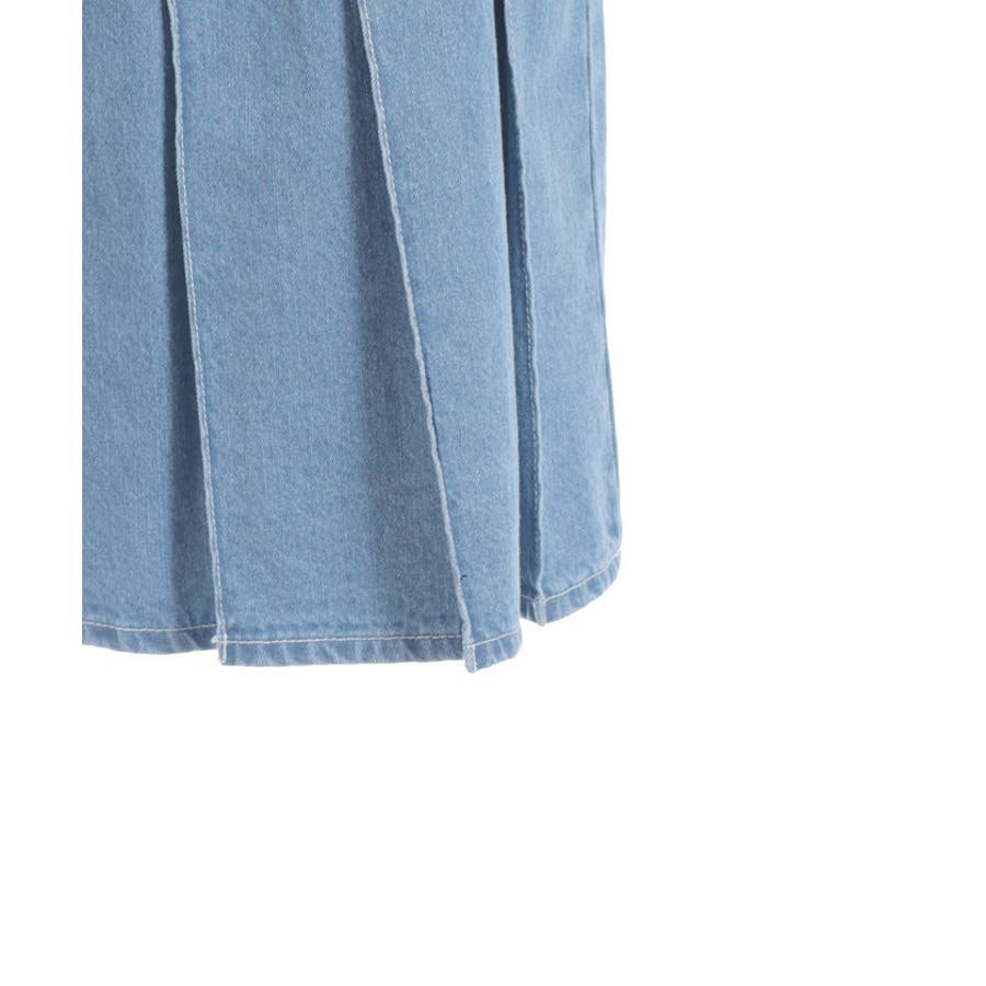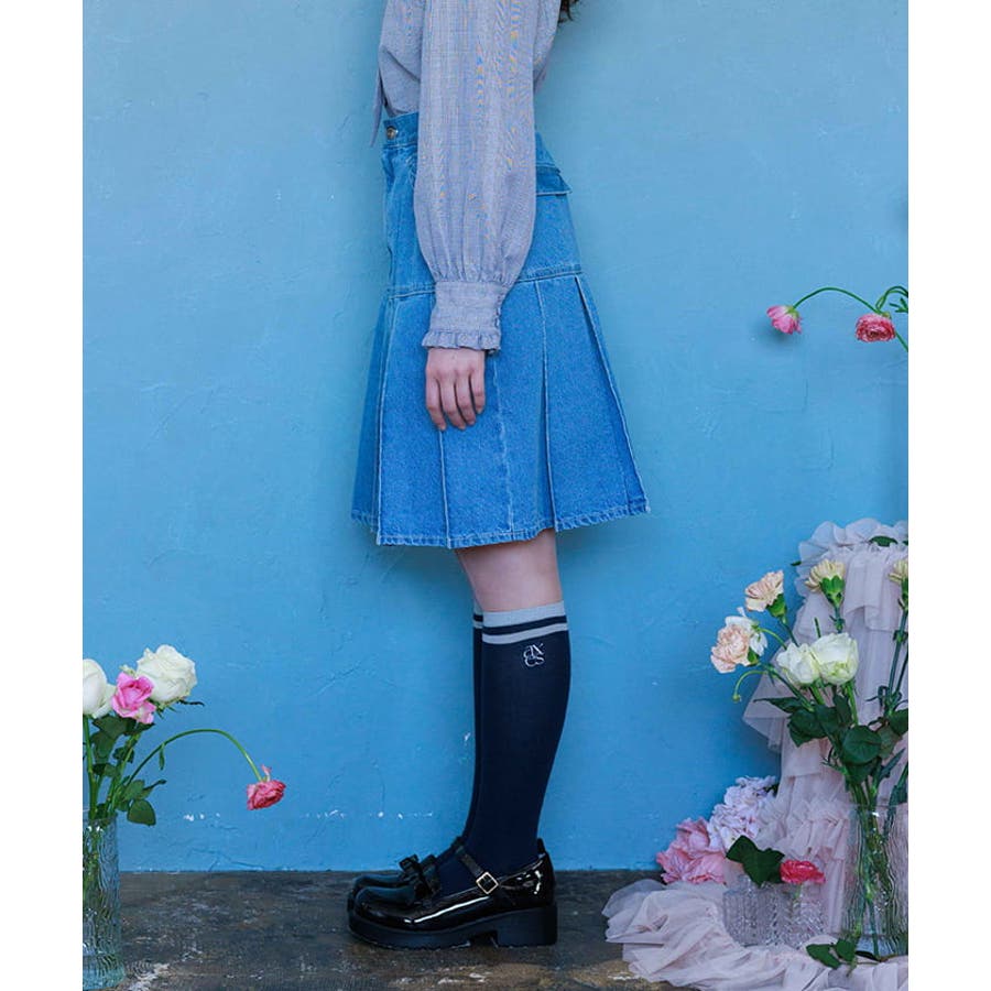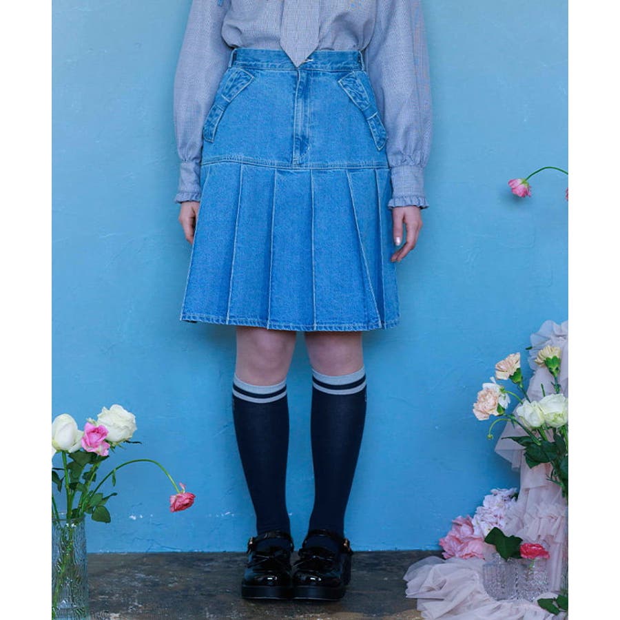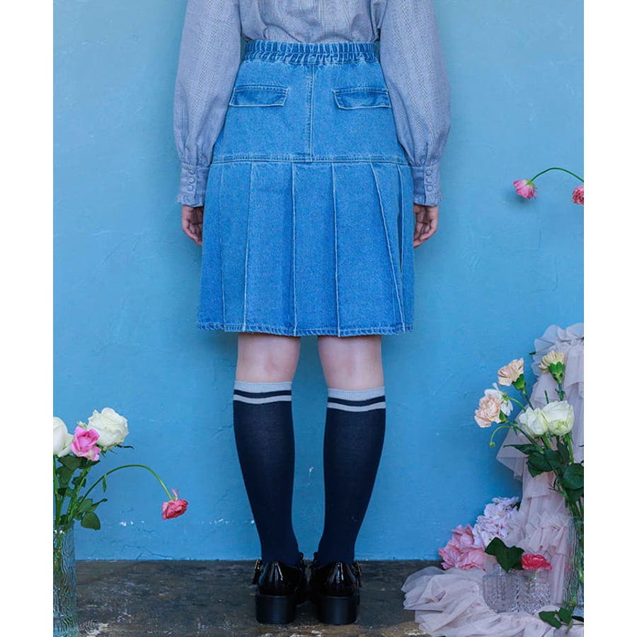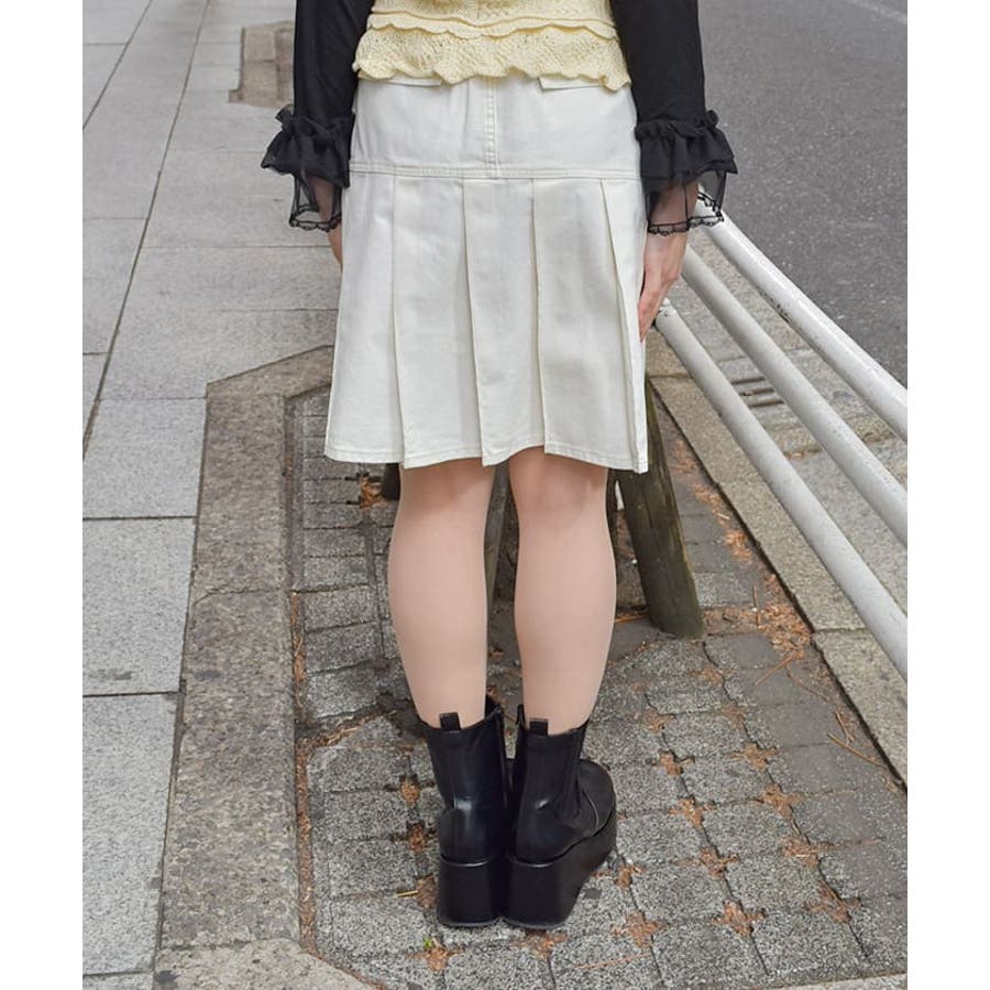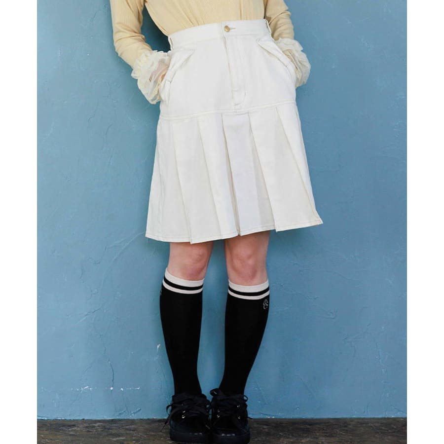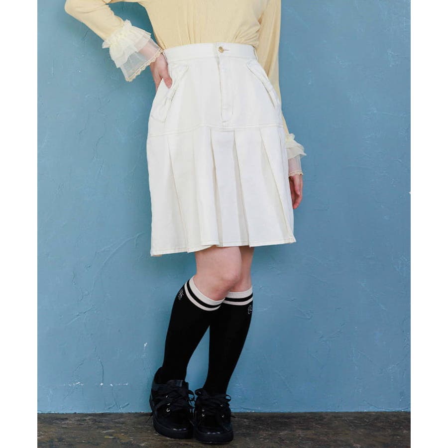 配色感が楽しいステッチをあしらった膝上丈のプリーツスカートです。