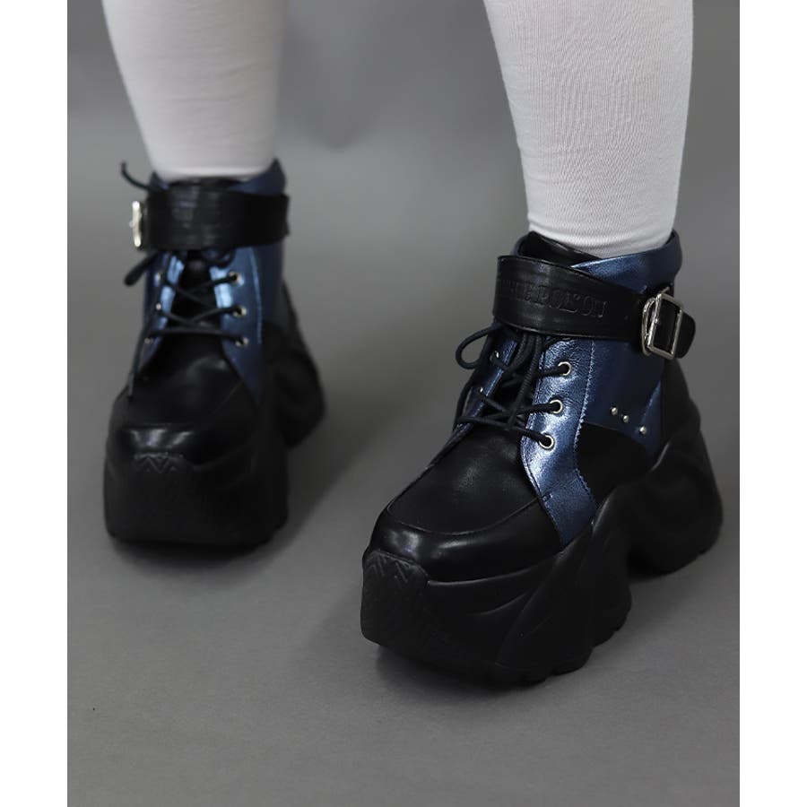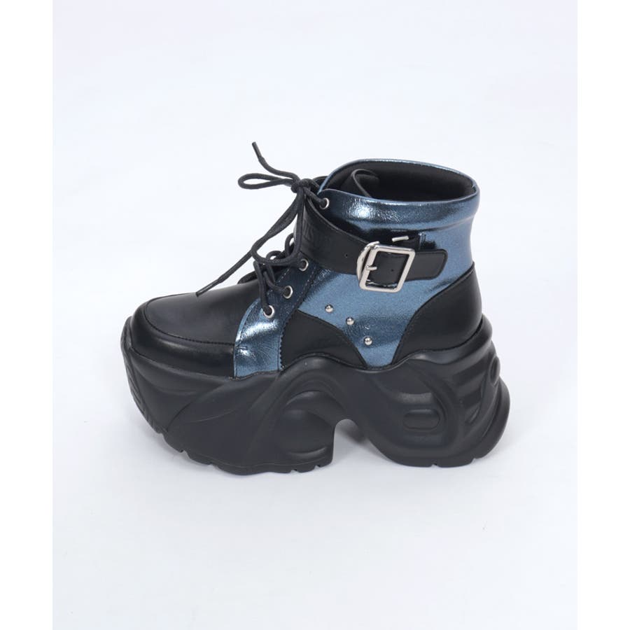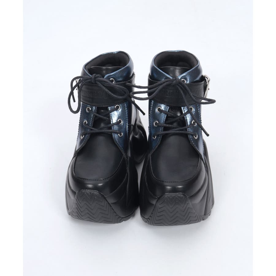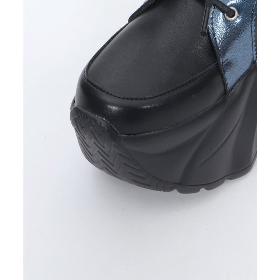 足元にボリューム感をプラスしてくれる厚底スニーカーはミニ丈ボトムとの相性も◎!