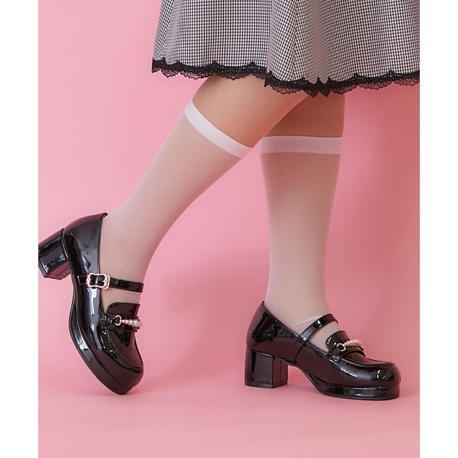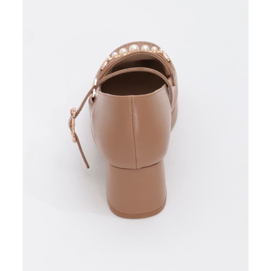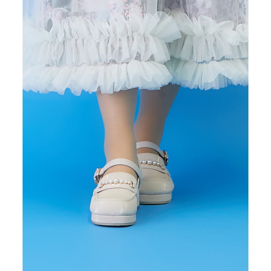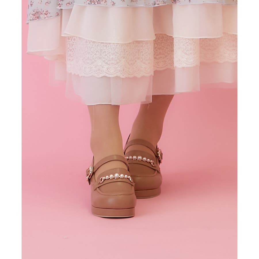 曲線的なフォルムが足元を華奢に見せ、パールビットが華やかさをプラスします。