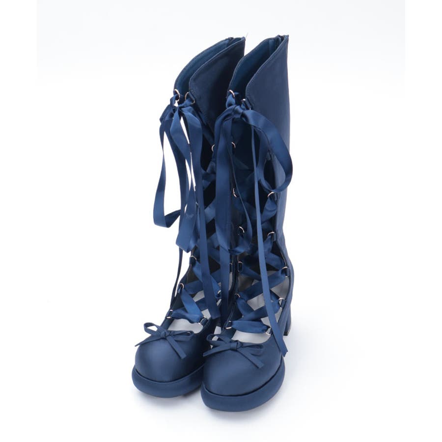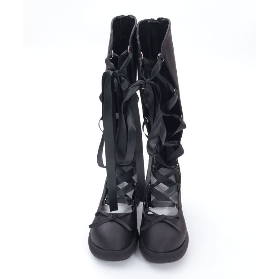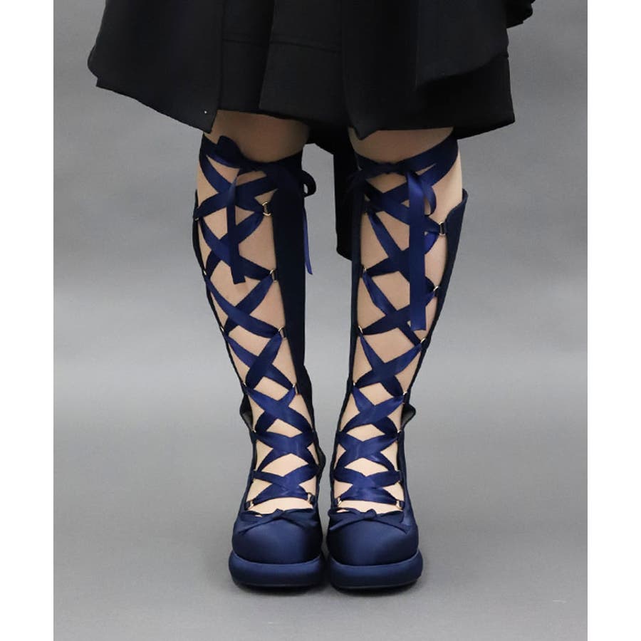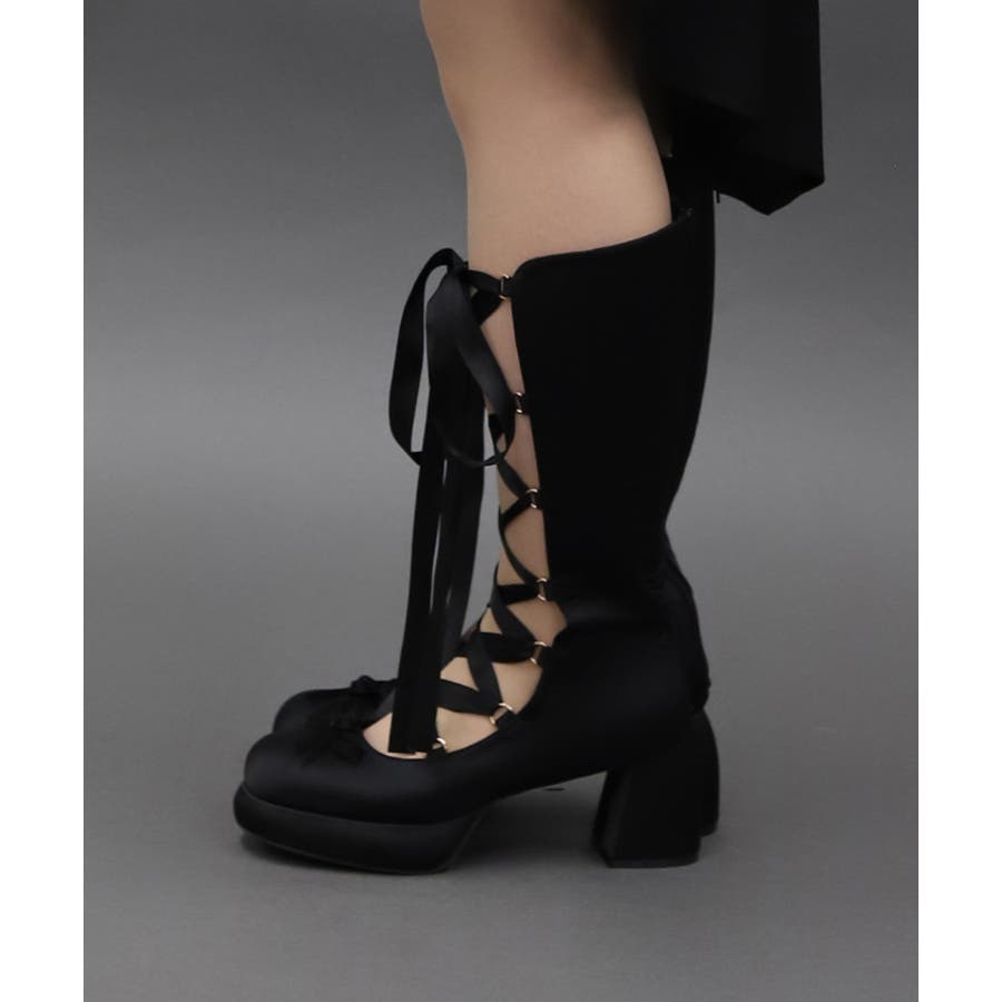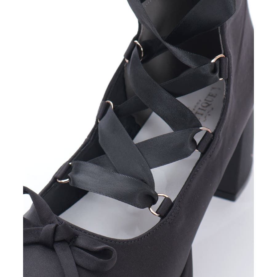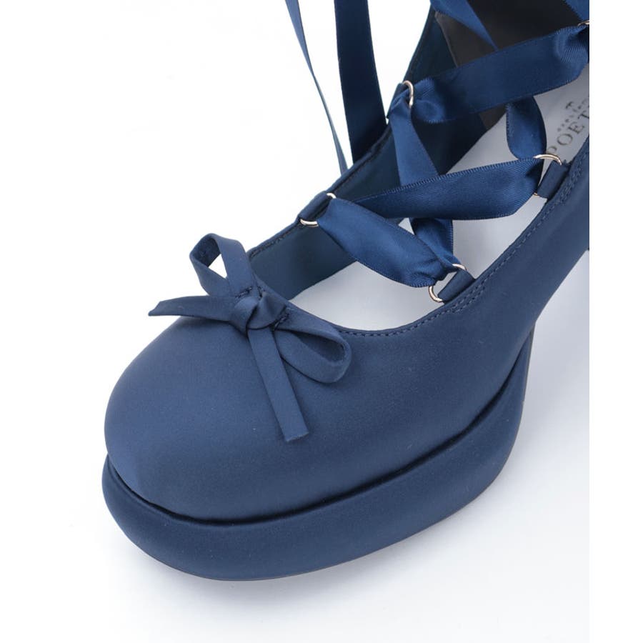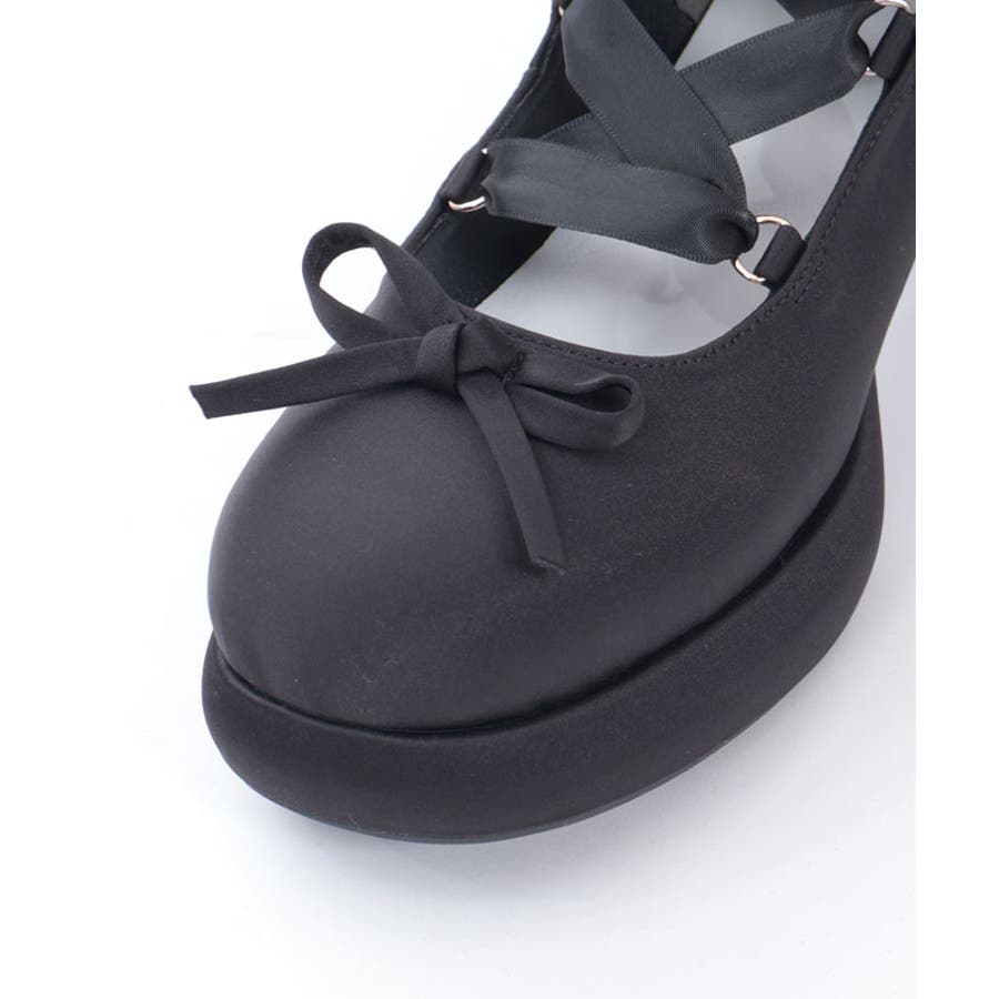 サテンの生地にリボンのレースアップでロマンティックな要素を詰め込んだお靴です。