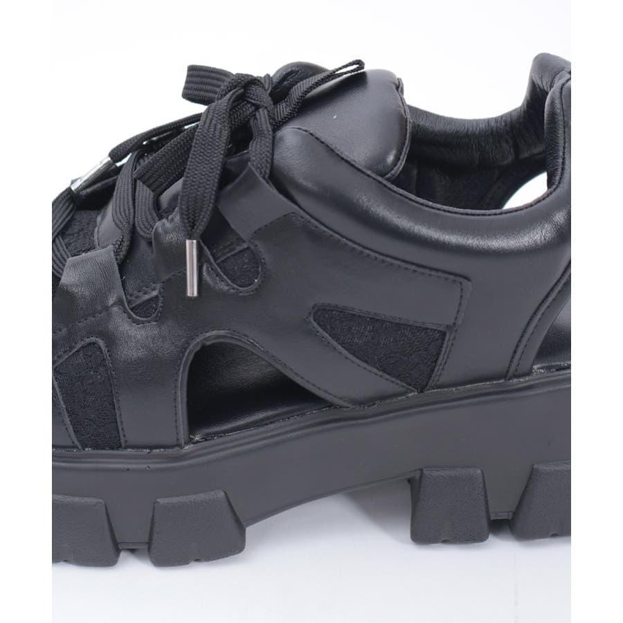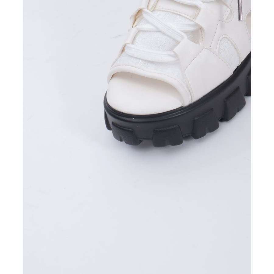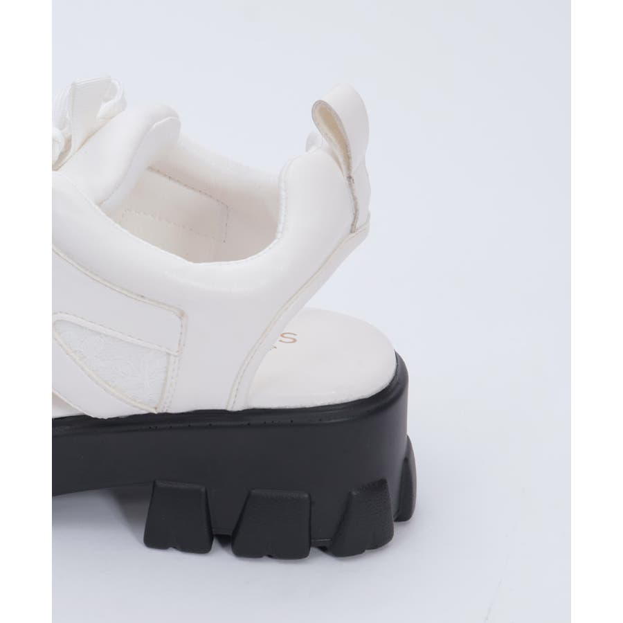 カットワークがほどこされたアッパーにレース生地を重ね、フェミニンなディティールをさりげなく取り入れたデザイン。