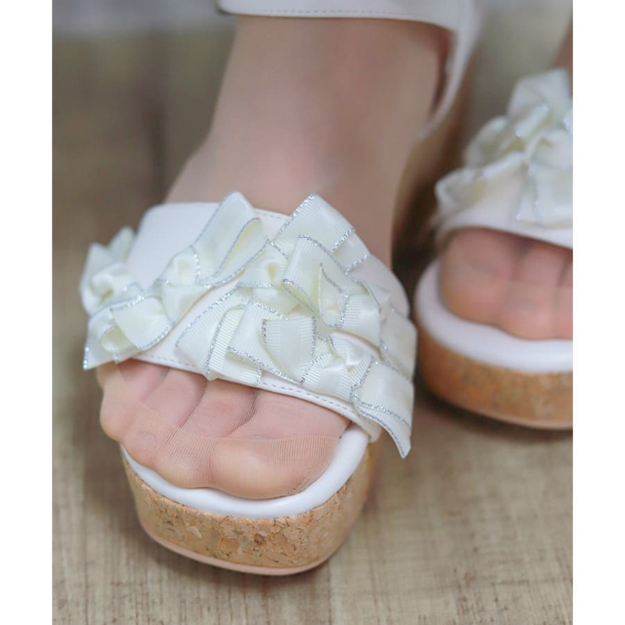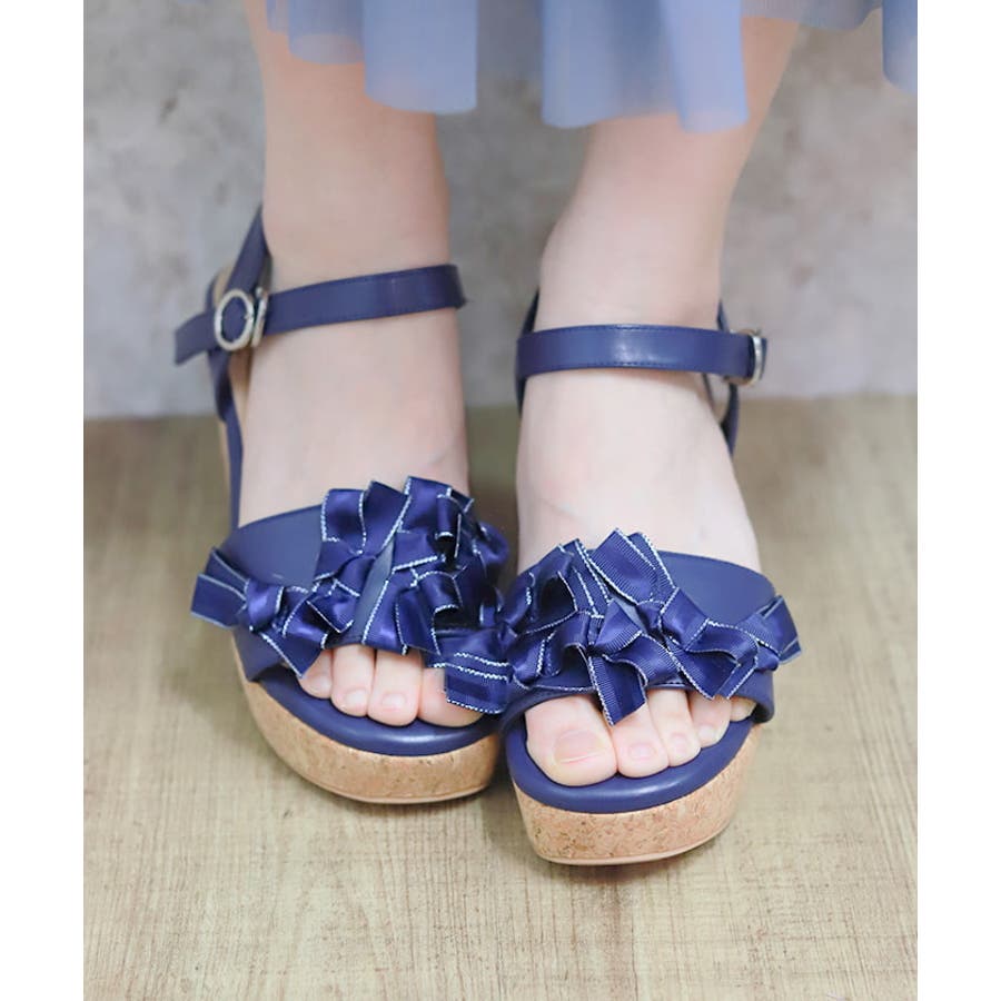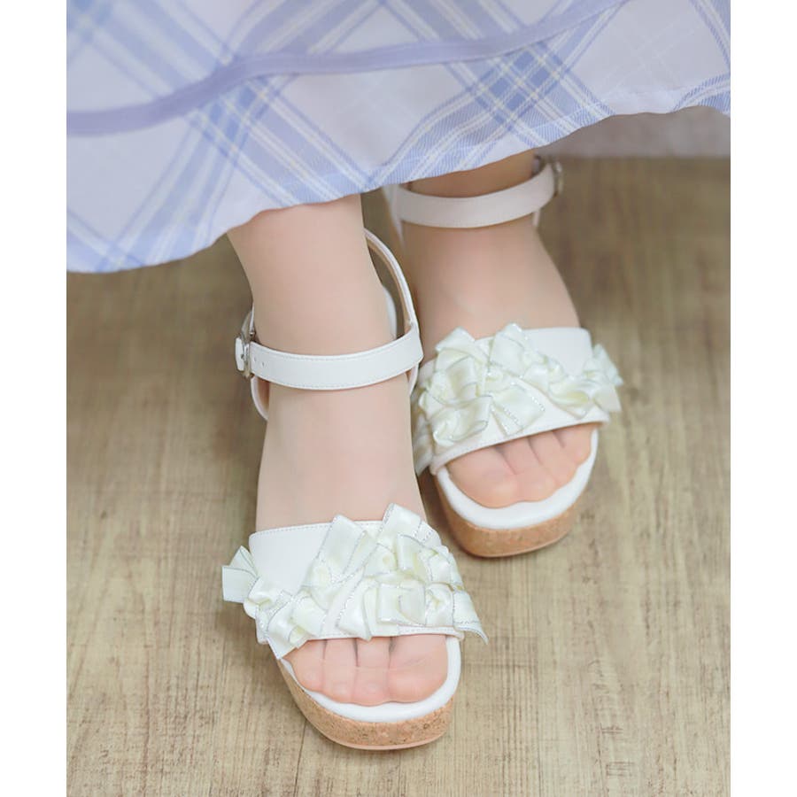 リボンいっぱいの華やかフェミニンなサンダルです。