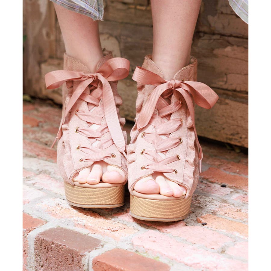 ウェッジソールの安定感と、足首までしっかりホールドしてくれる仕様で歩きやすさも◎