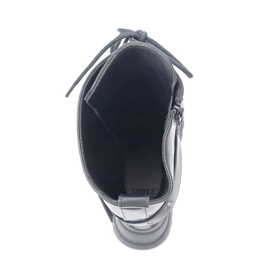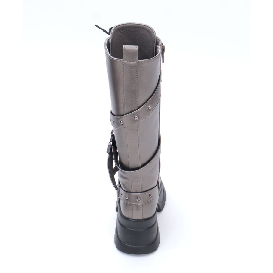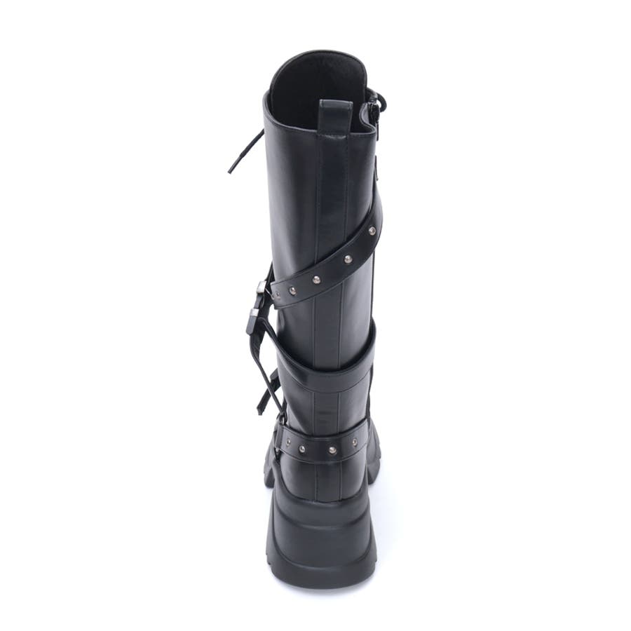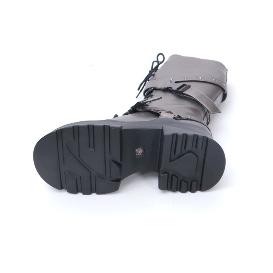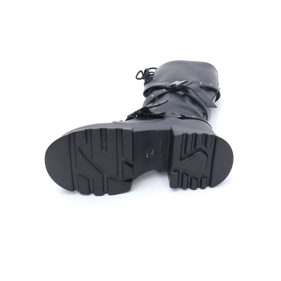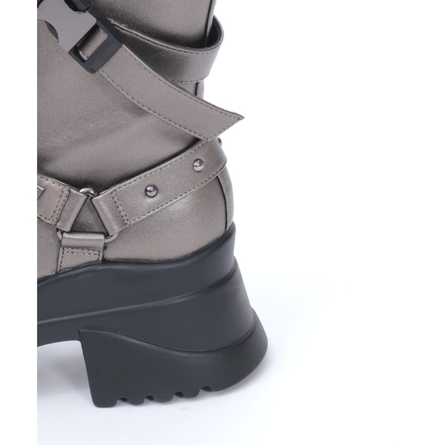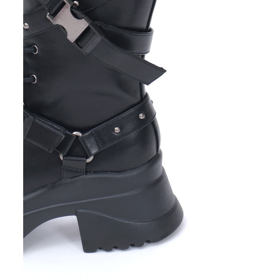 ガチャベルトをポイントであしらったレースアップロングブーツです。