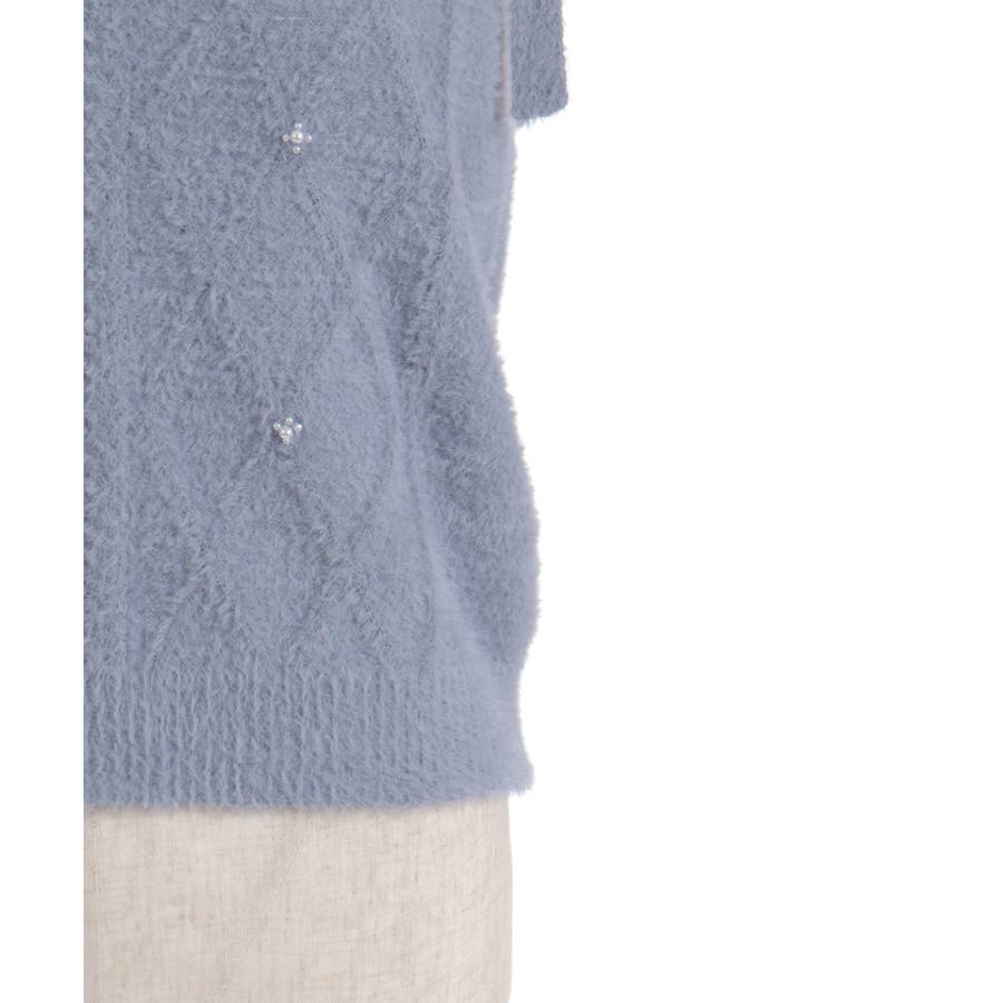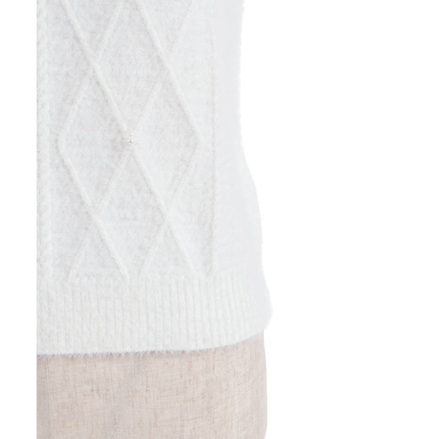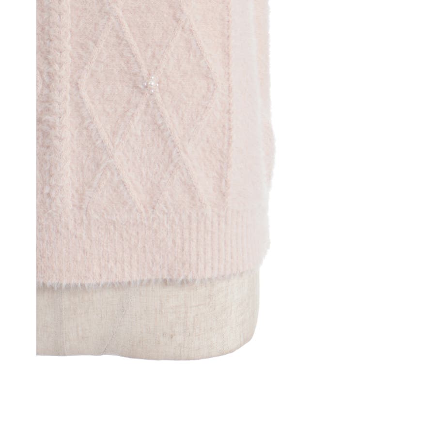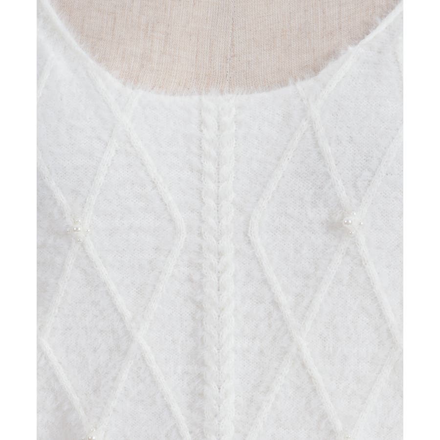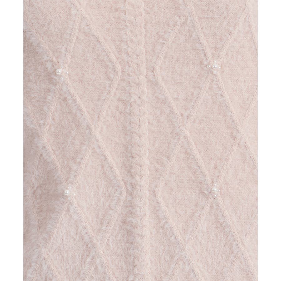 ケーブル編みにパールをあしらった華やかなデザイン。