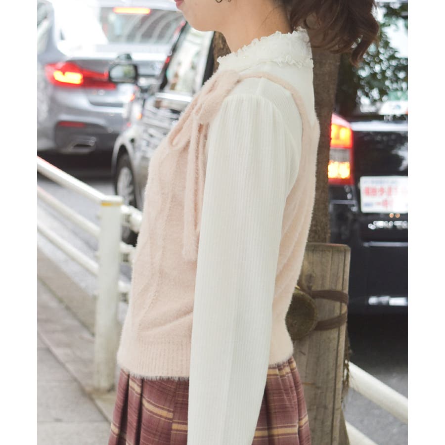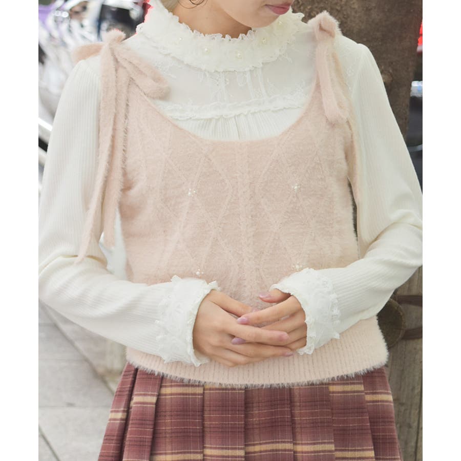 肩リボンシャギービスチェ