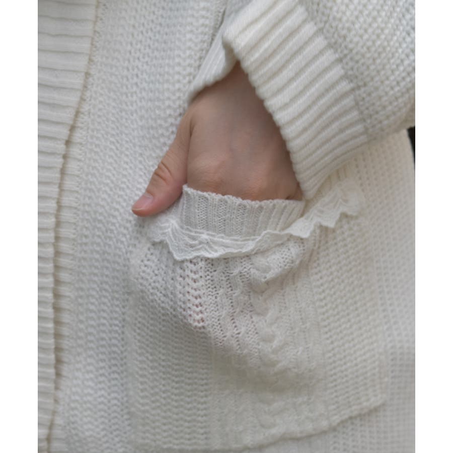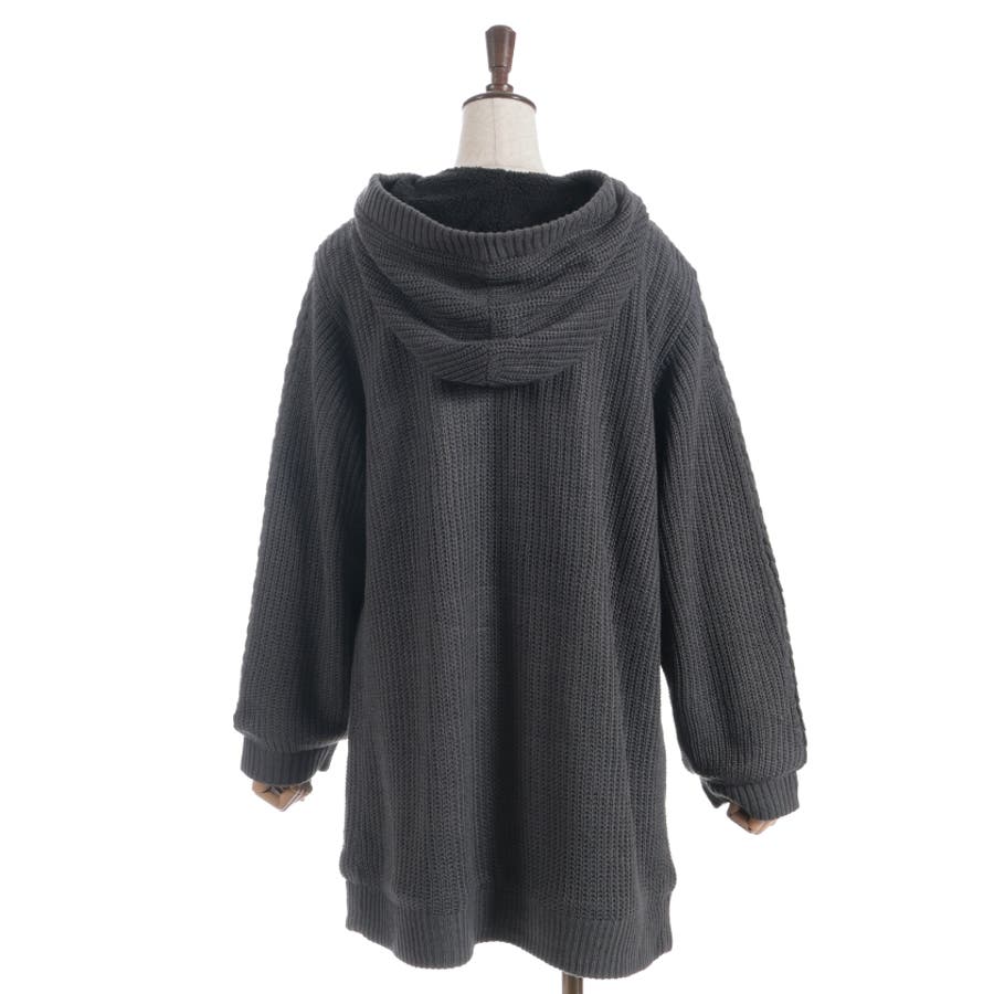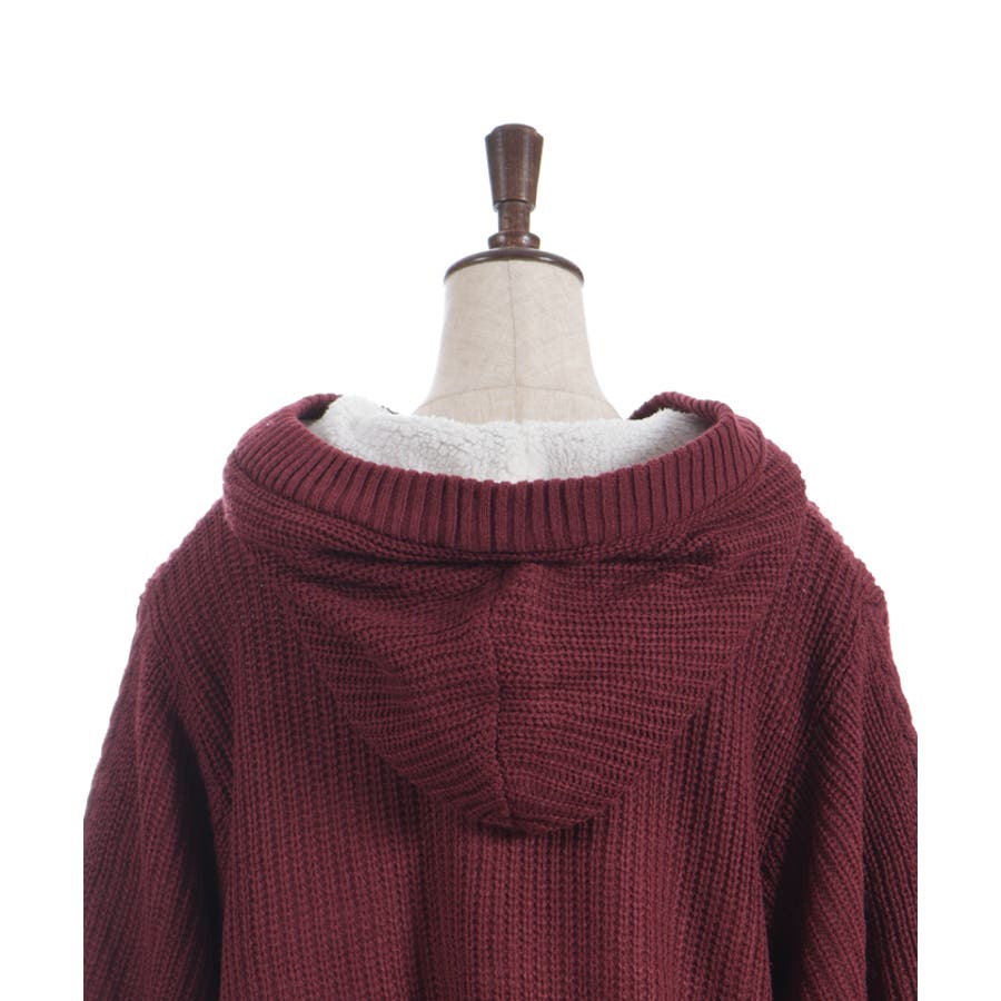 ニット生地×裏ボアの見た目も着心地もあたたかなコーディガンです。