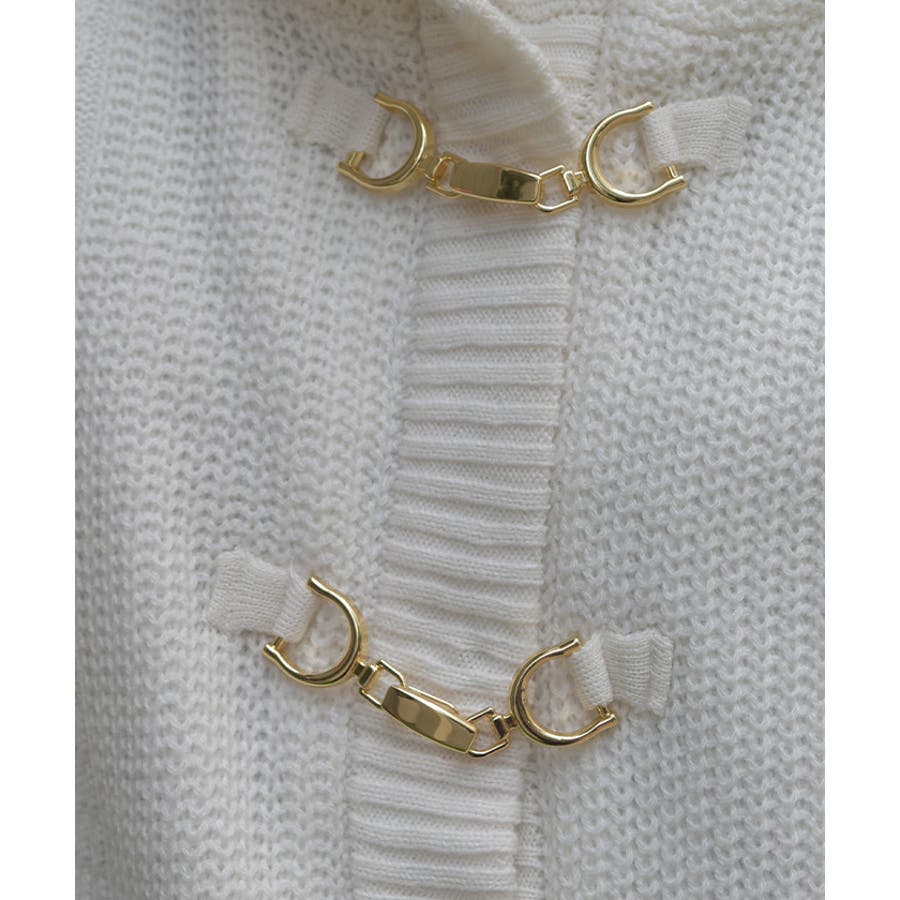 上品な印象のビットデザインがポイントで、前が開かないよう隠しスナップボタンが内側に付いた仕様です。