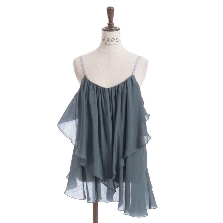 動きのあるドレープが印象的なキャミビスチェ。華やかさと抜け感を兼ね備えた、主役トップスです。