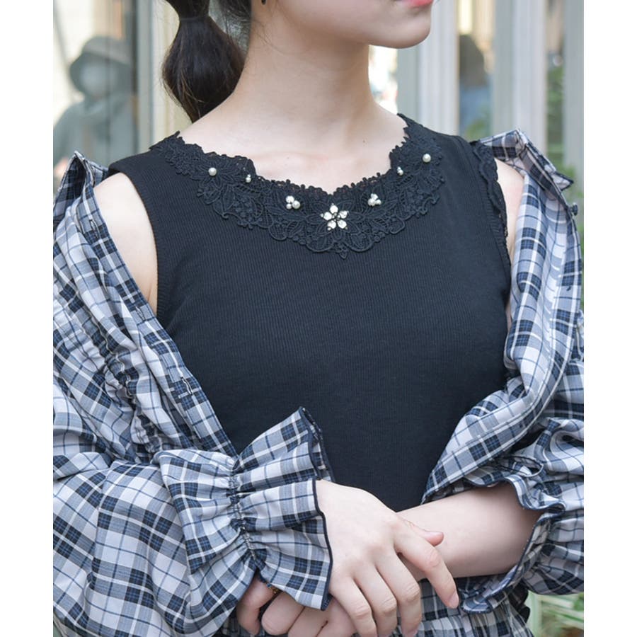 後ろレースもあるので、バックネックが広いアイテムにもオススメ♪