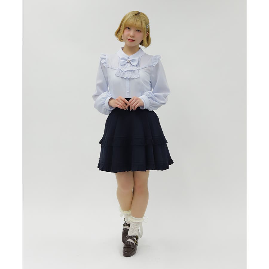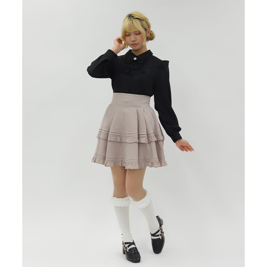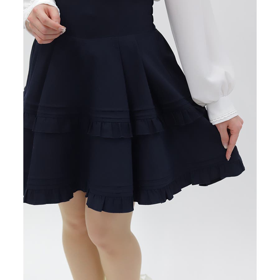 ピンタック&フリル使いがプレッピーなデザイン。