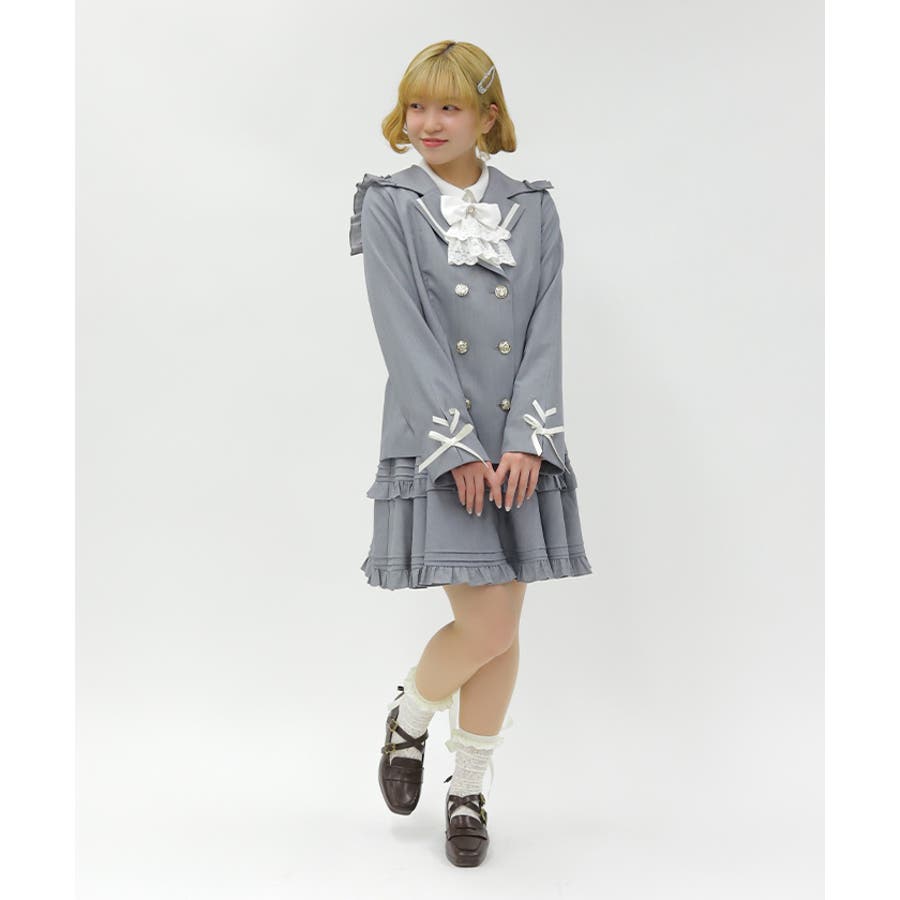 と合わせた、スクールガールのようなセットアップ風の着こなしがおすすめです。
