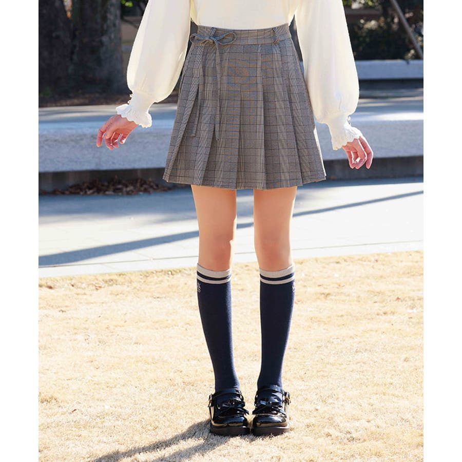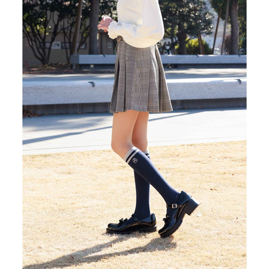 ハイソックスや厚底ブーツを合わせたプレッピーなコーディネートが◎。ガーリーなブラウスからシンプルなトレーナーまで様々なテイストに合わせやすいデザインです。