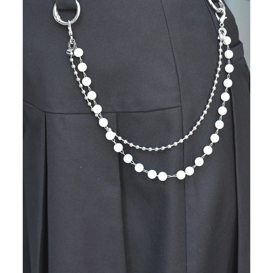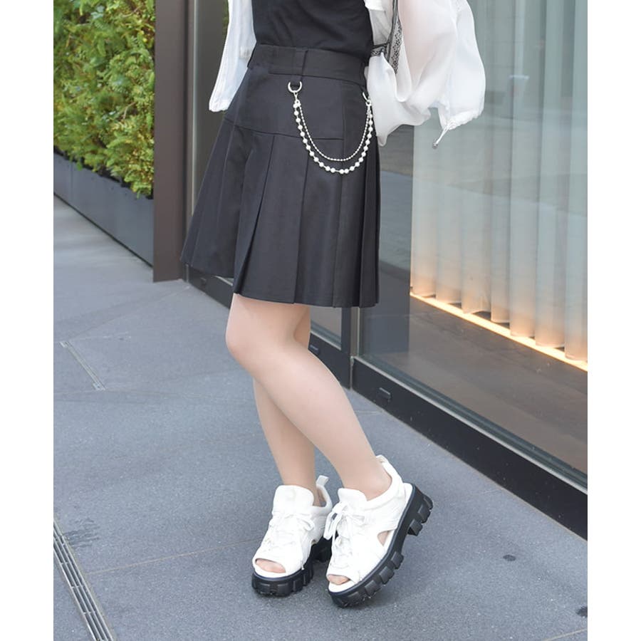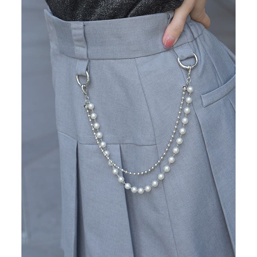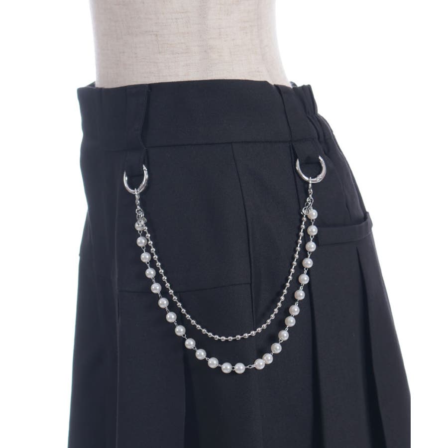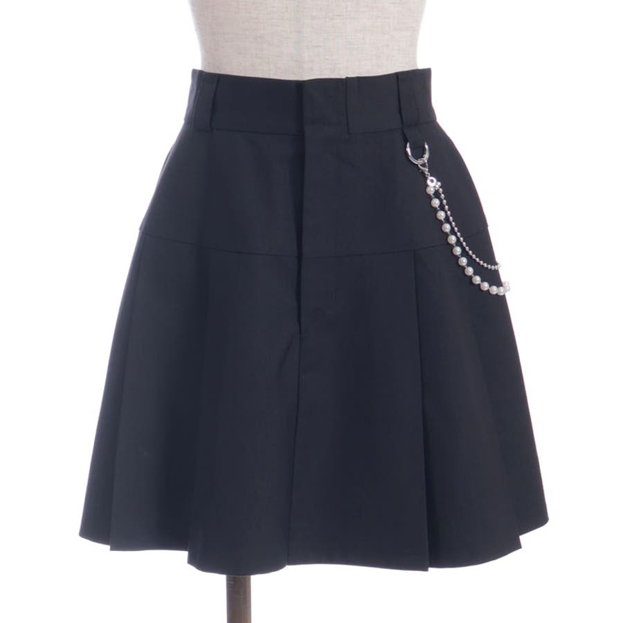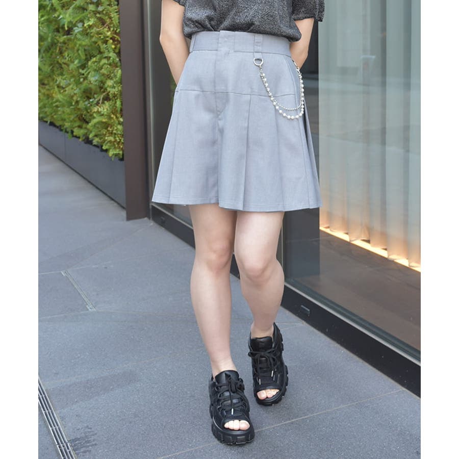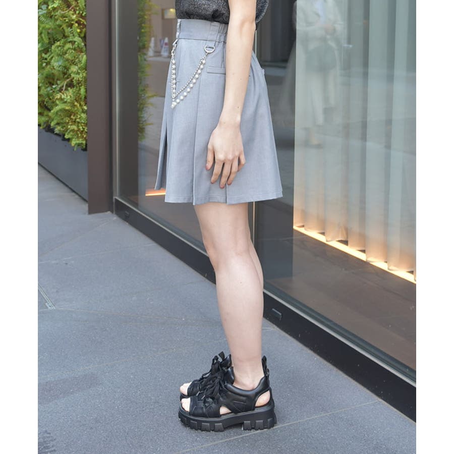 パールチェーンがアクセントになる、スカートライクなショートパンツ。