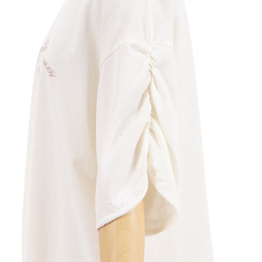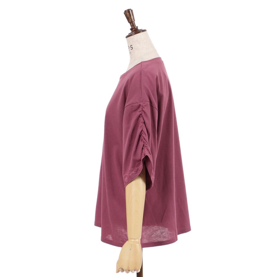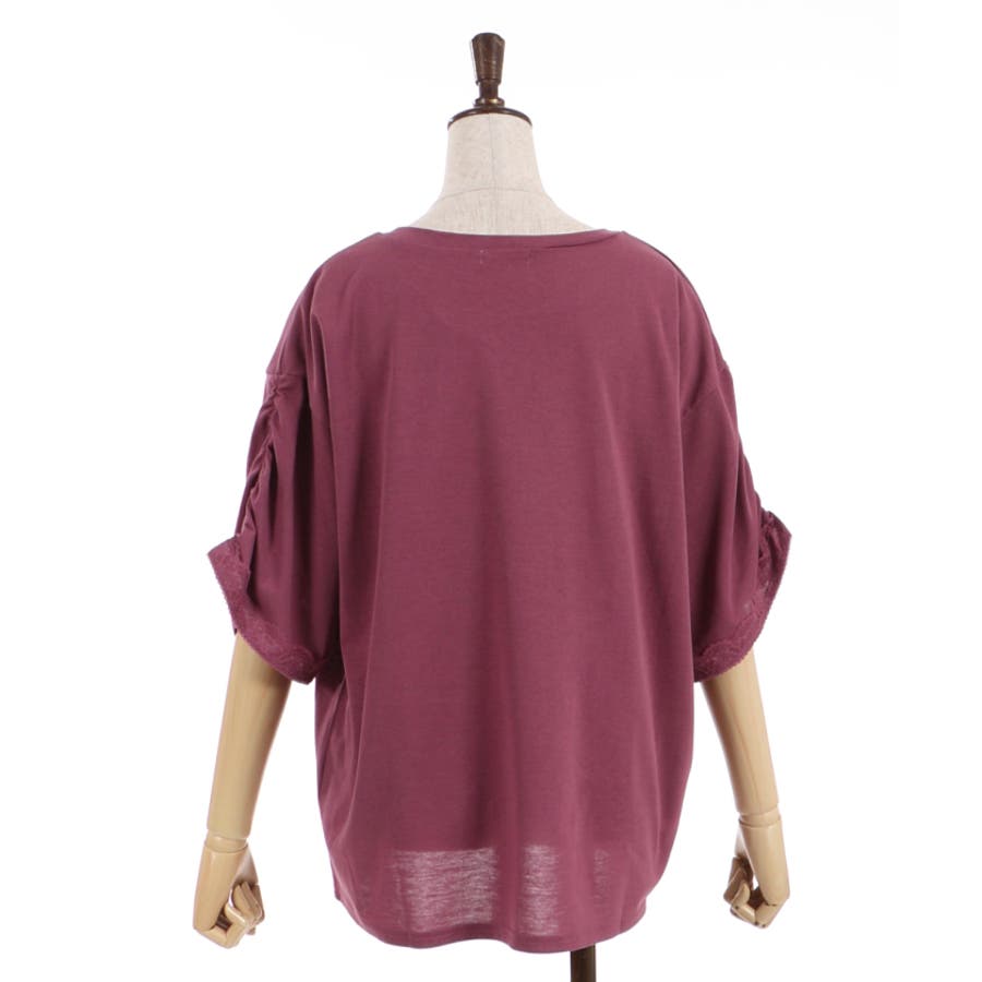 袖口にはレースを重ね、袖山がくしゅっとしたギャザーデザインになっているのがポイント。
