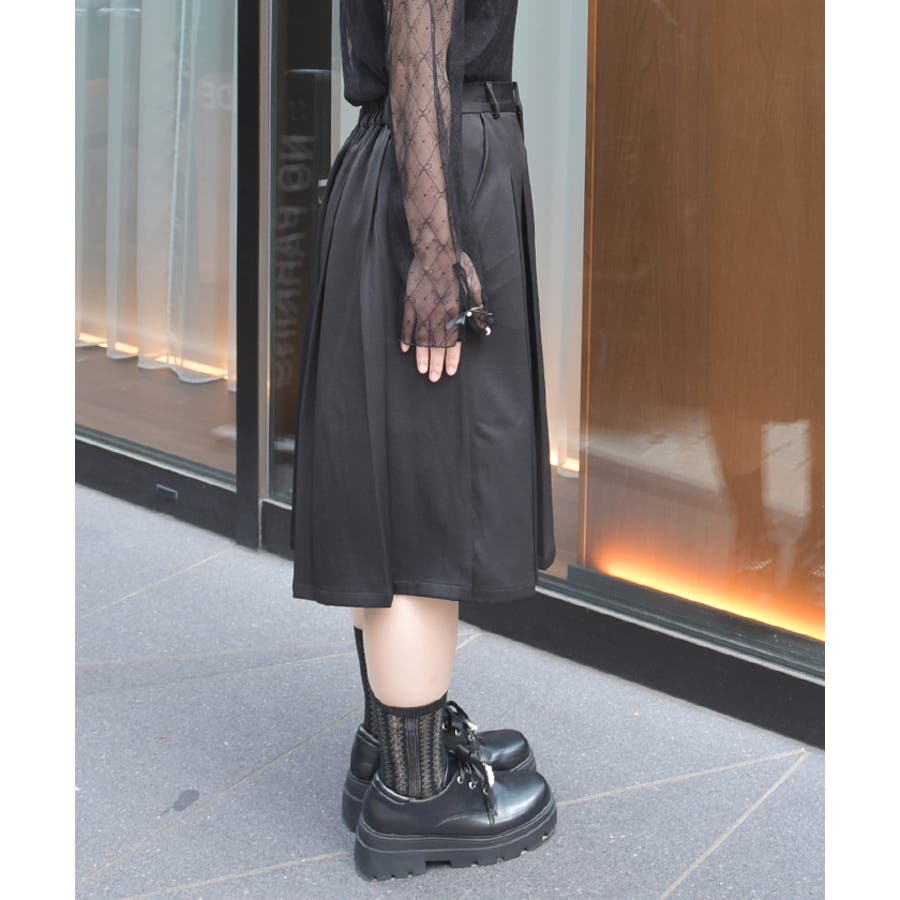 プリーツ風のタックがクラシカルなアクセント。シンプルながらも程よい甘さを感じさせるデザインで、幅広いコーデに取り入れやすい仕上がり。
