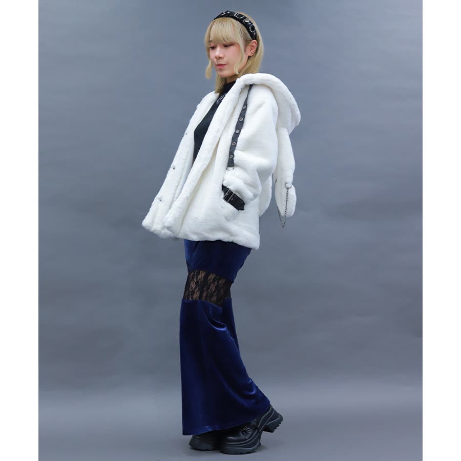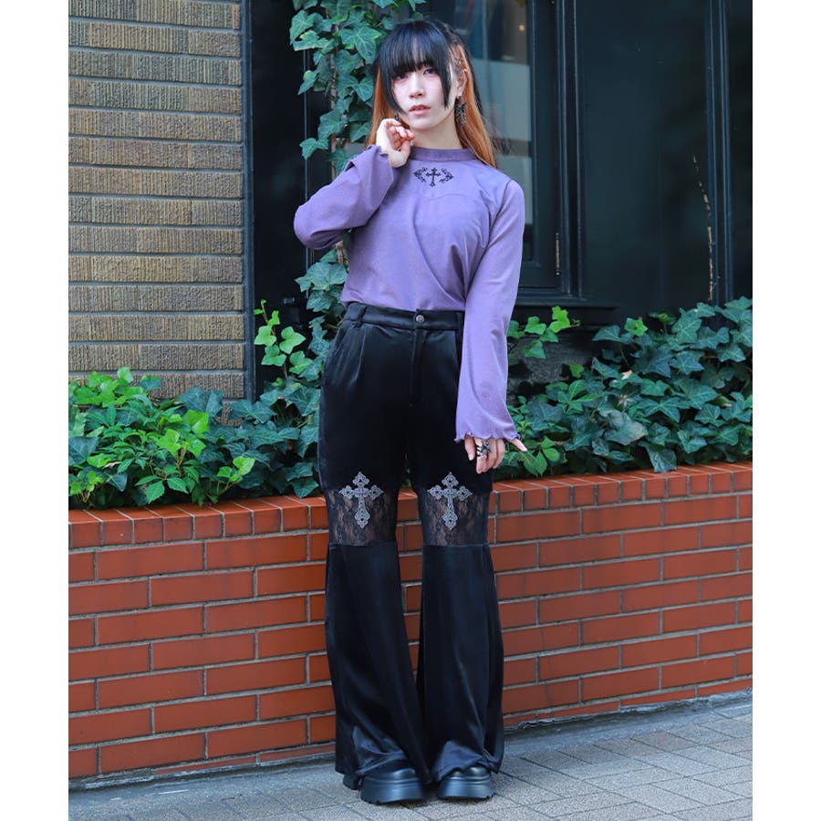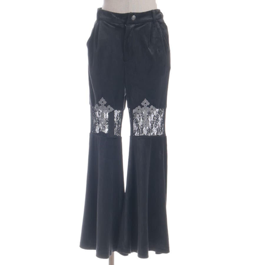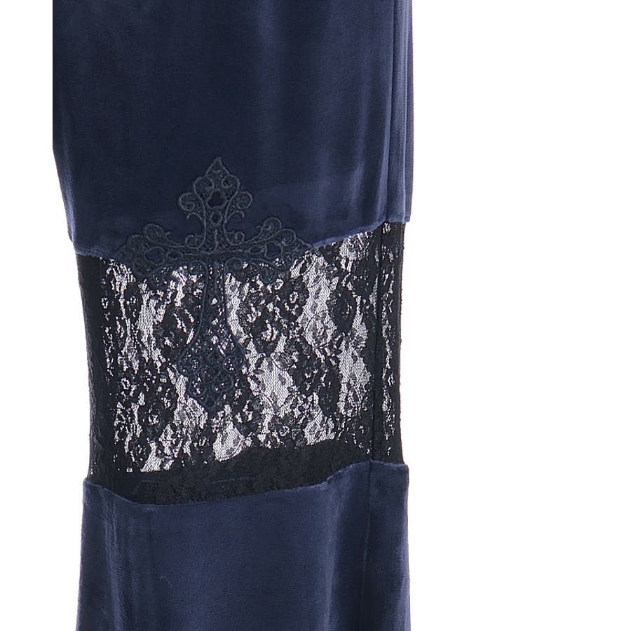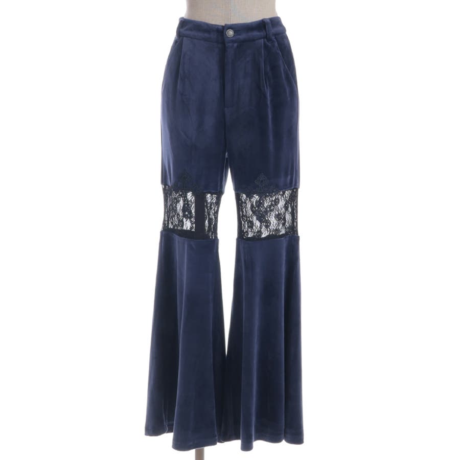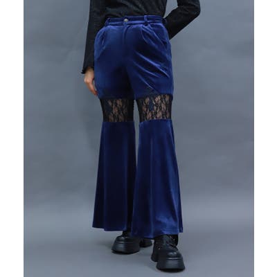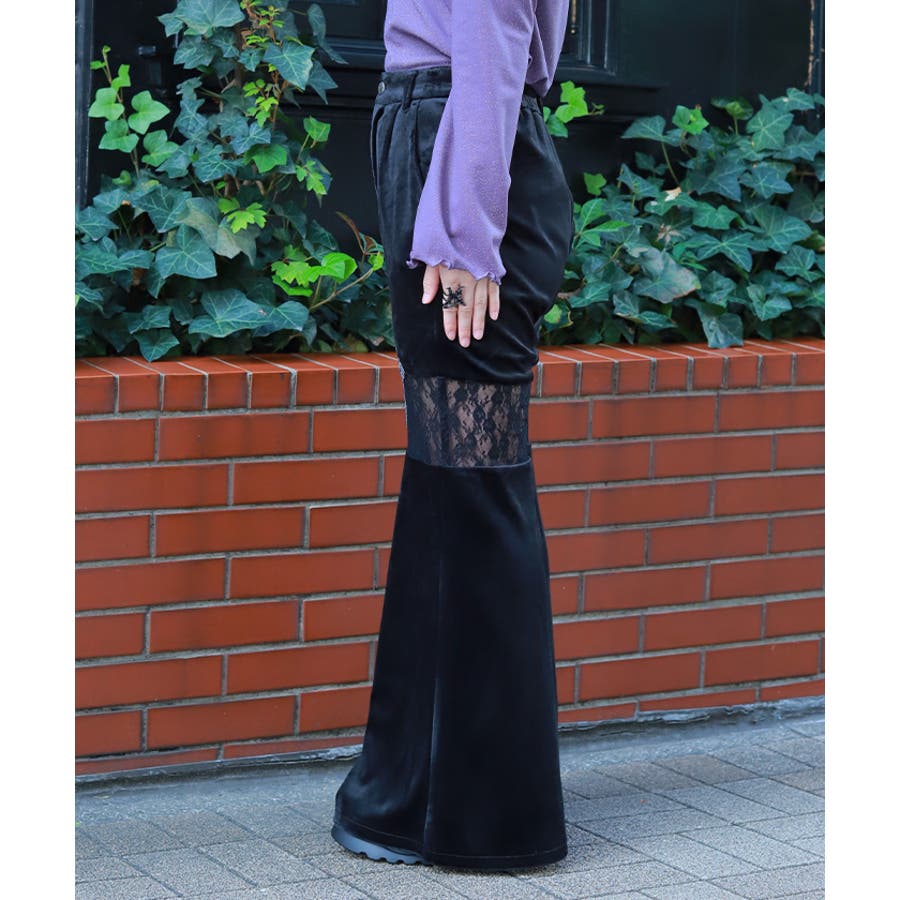 レース切替ベロアフレアパンツ