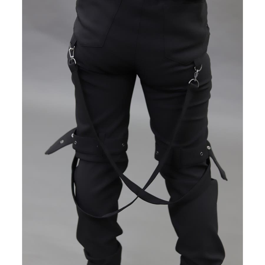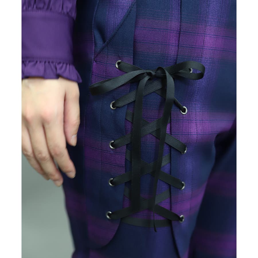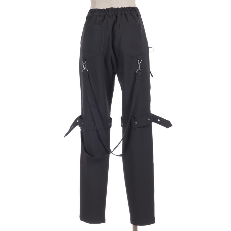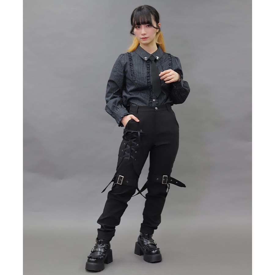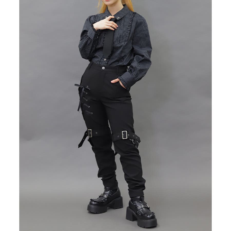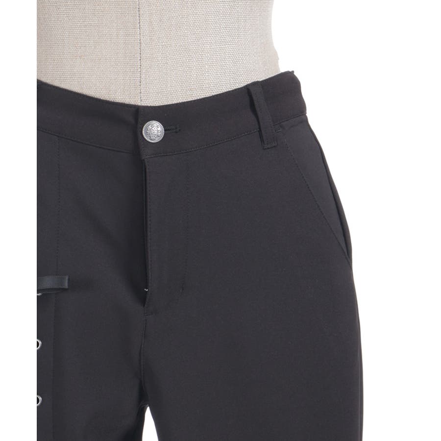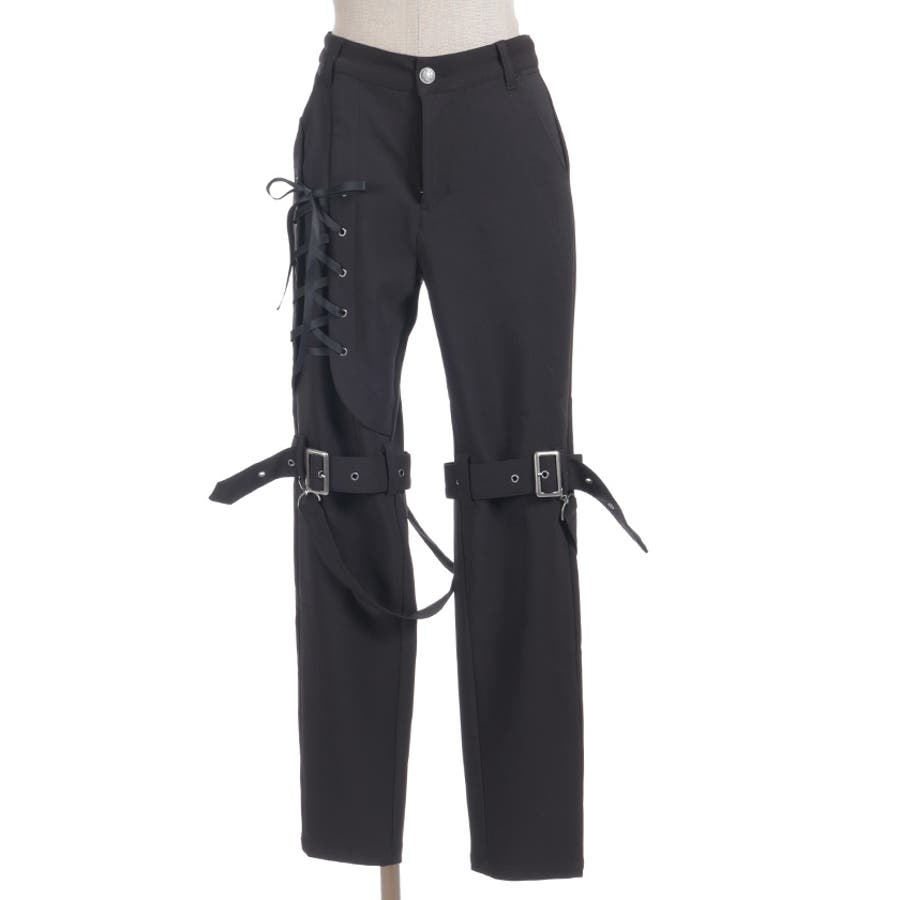 アシンメトリーにあしらったレースアップでデザイン性高く仕上げたボンテージパンツです。