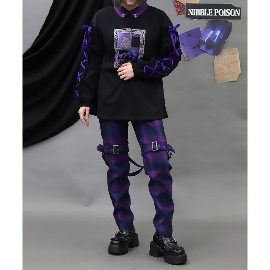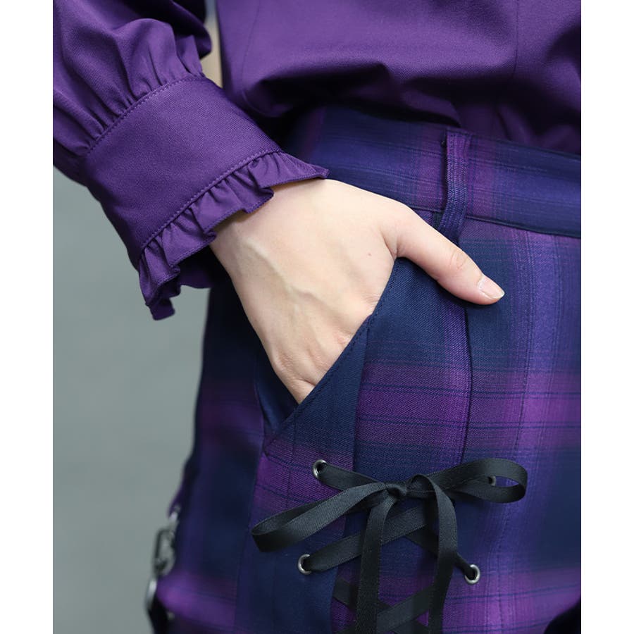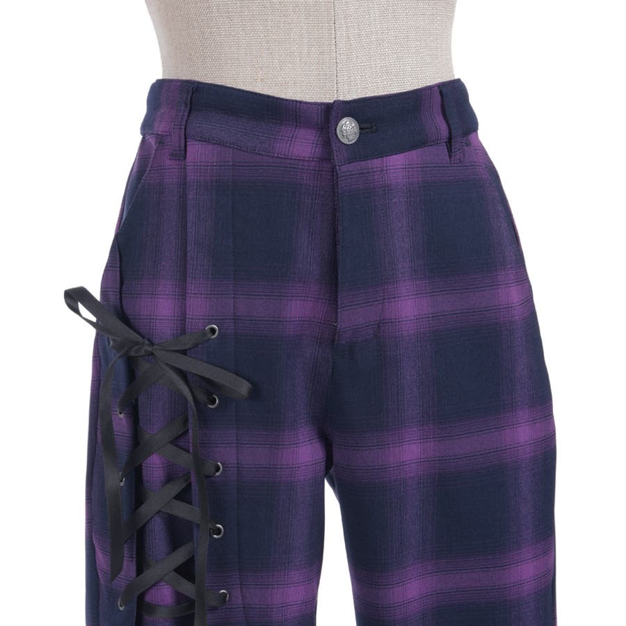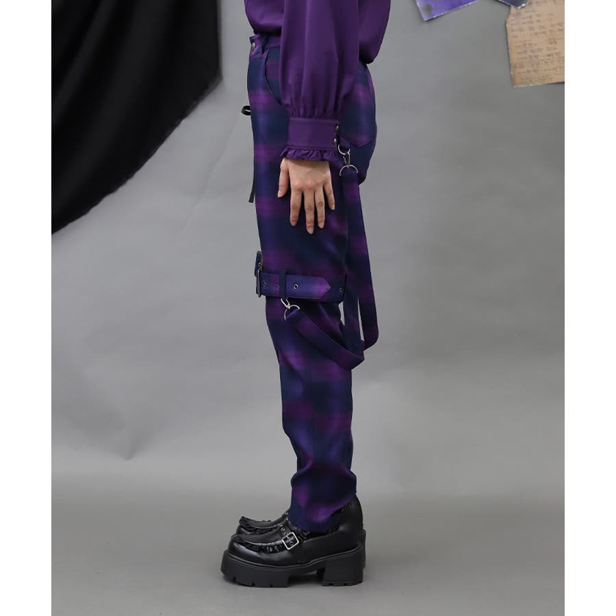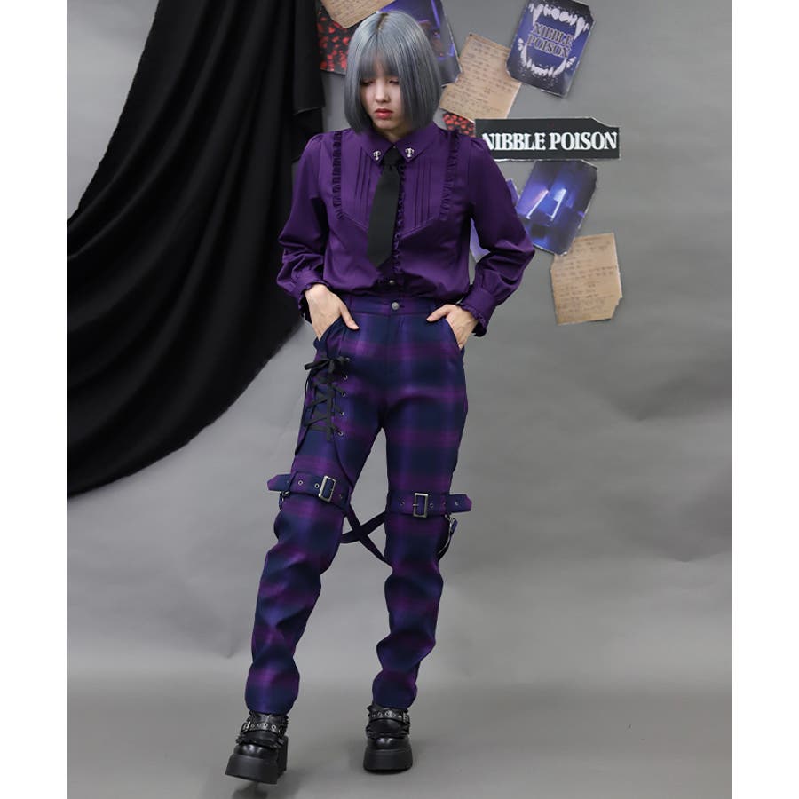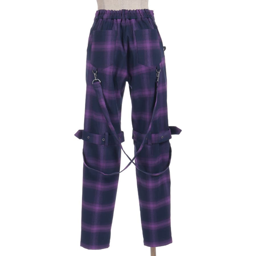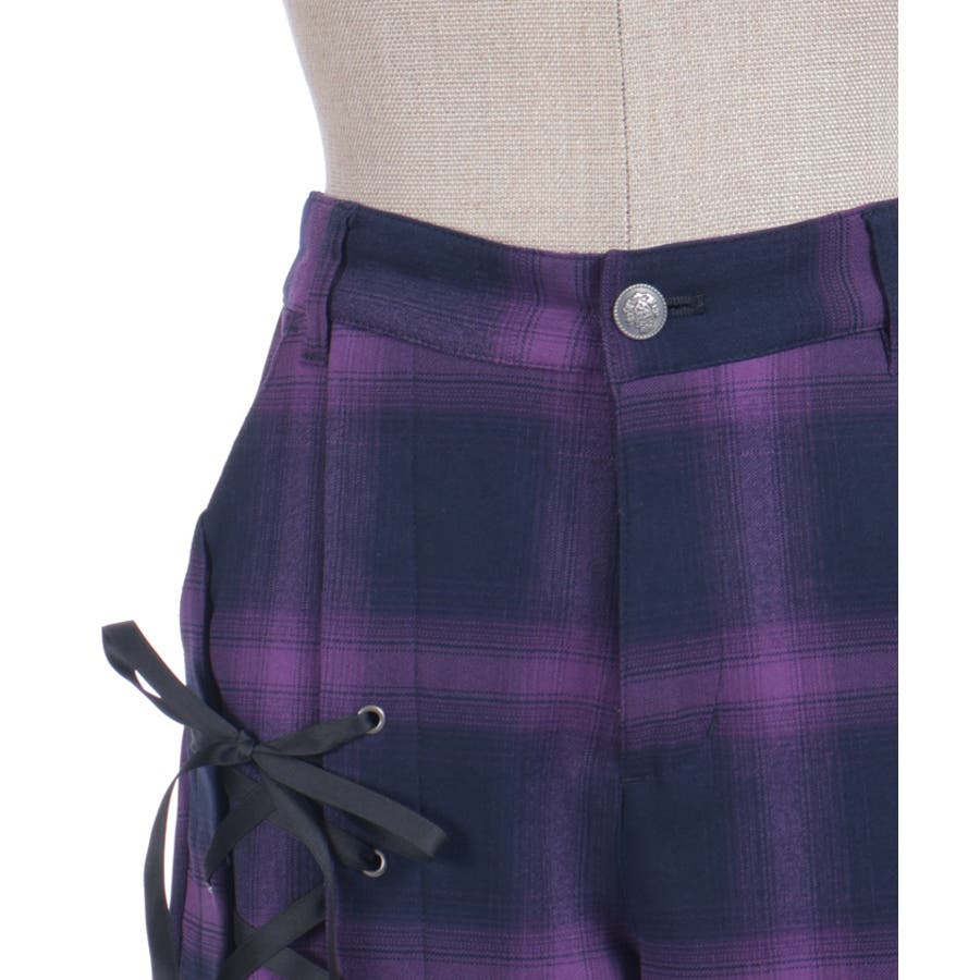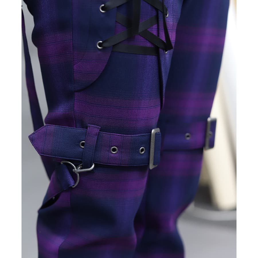 アシンメトリーにあしらったレースアップでデザイン性高く仕上げたボンテージパンツです。