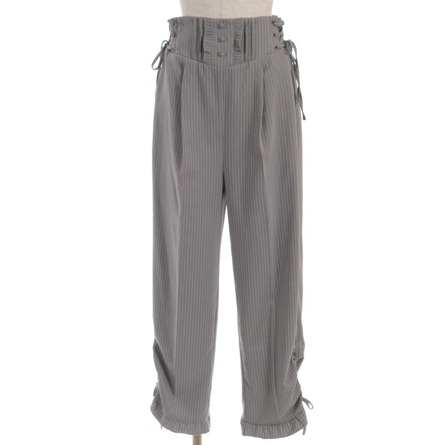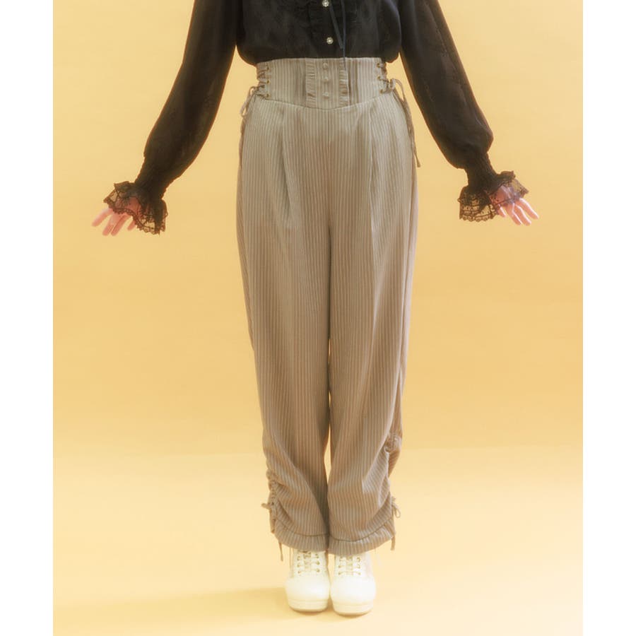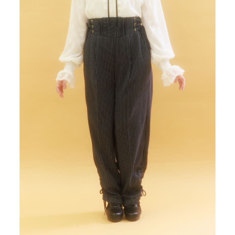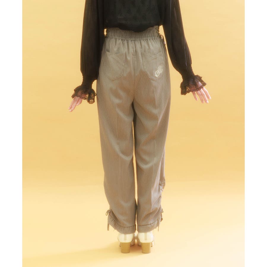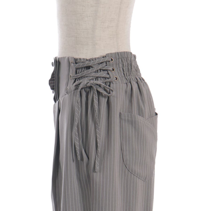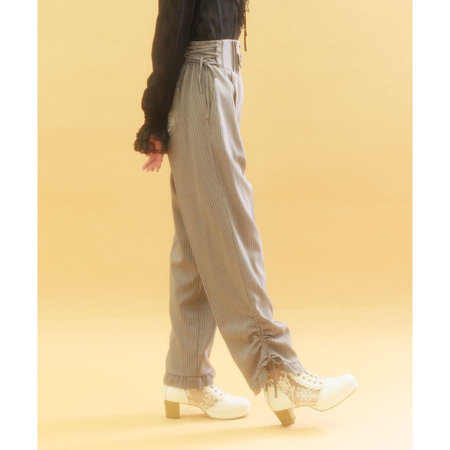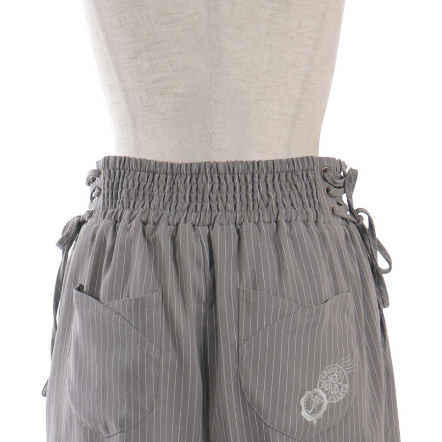 ウエストは後ろシャーリングゴム+両サイドレースアップで、ウエストサイズの調整が効きやすいアイテムです。