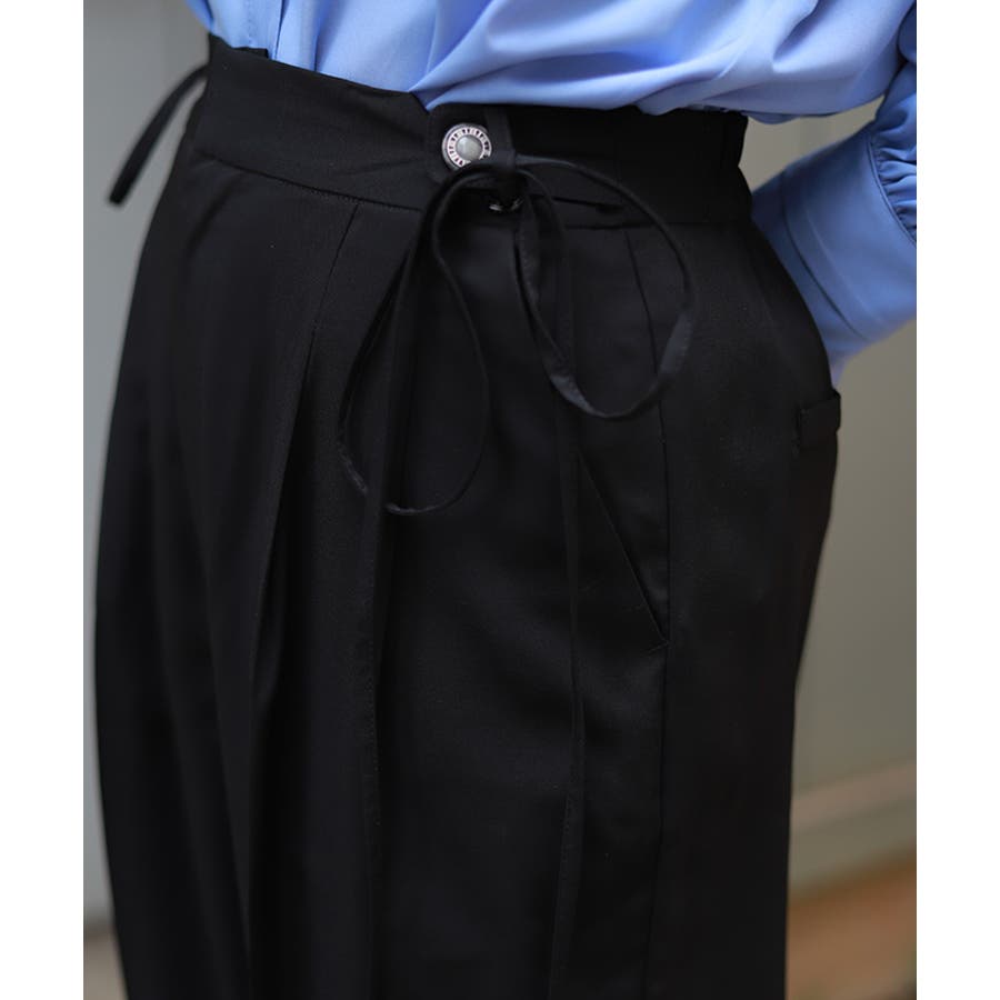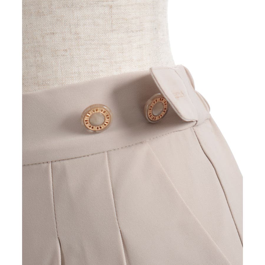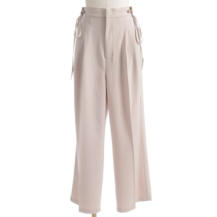 ウエスト調節が可能なボタンデザインのストレートパンツです。