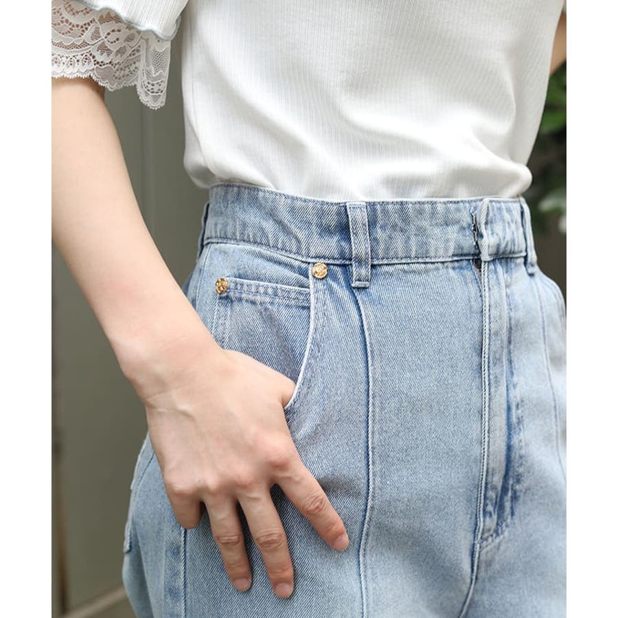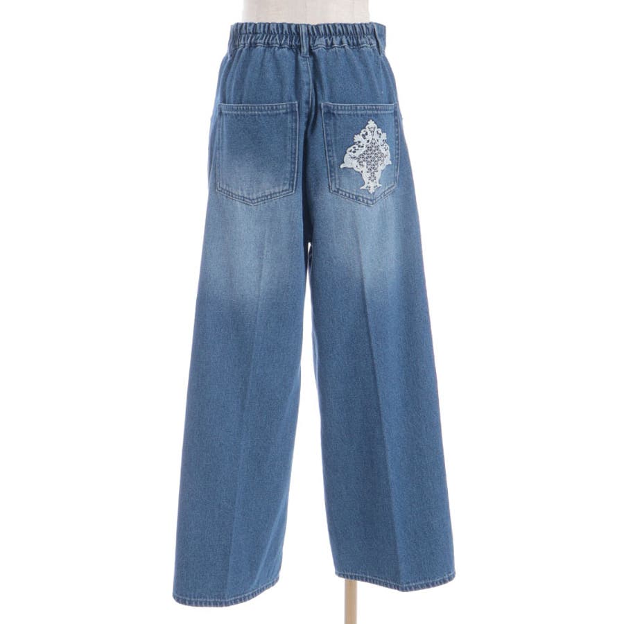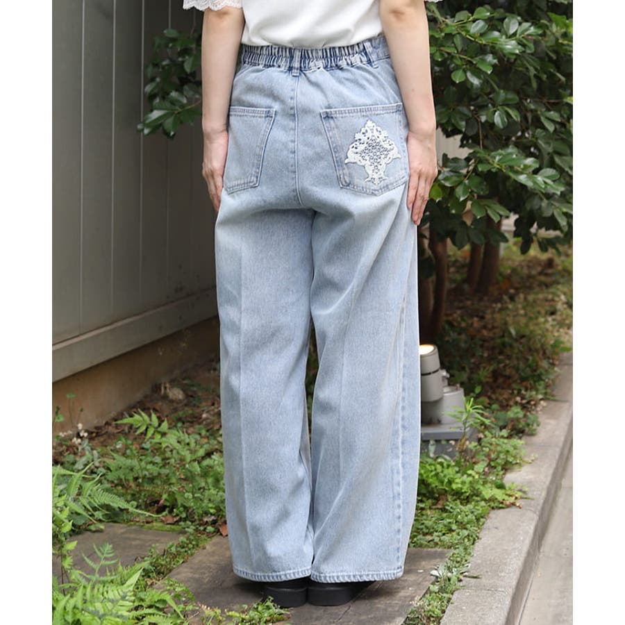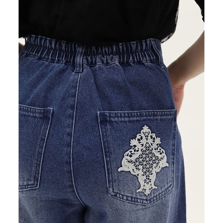 後ろポケットにはさりげなくレースモチーフをあしらい、フェミニンなエッセンスをプラス。