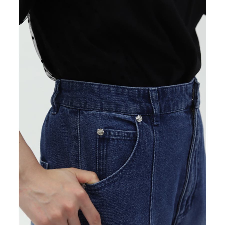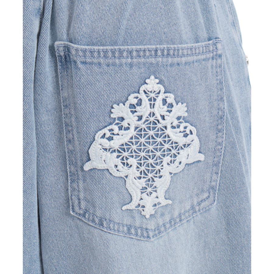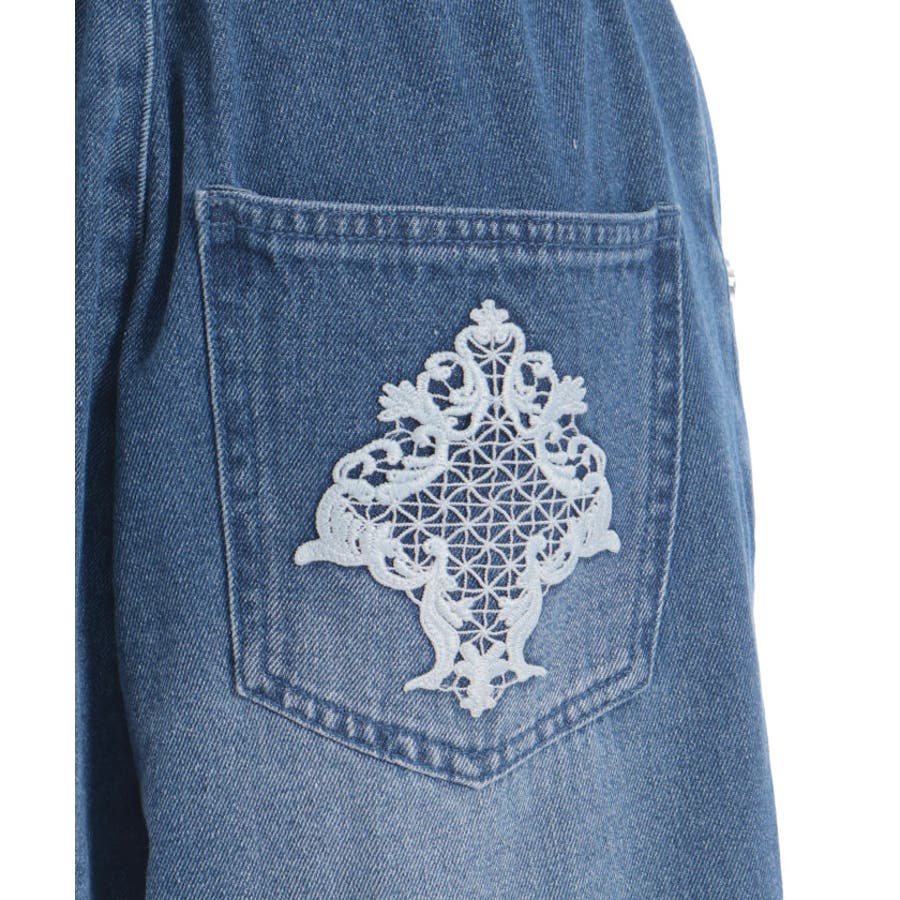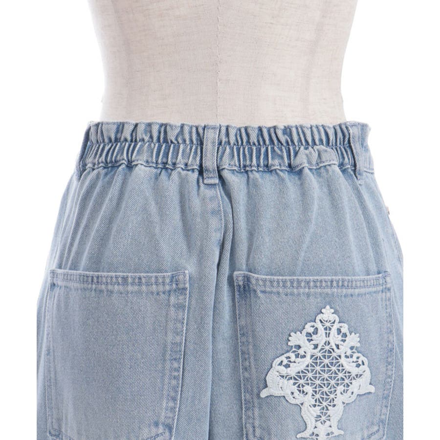 後ろポケットにはさりげなくレースモチーフをあしらい、フェミニンなエッセンスをプラス。