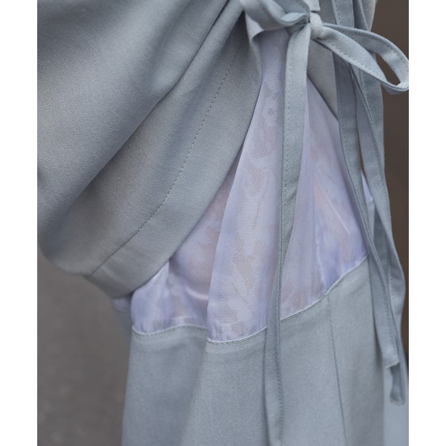 素材 | 表地:ポリエステル77%、 :レーヨン20%、 :ポリウレタン3%、裏地:ポリエステル100%、レース:ポリエステル100% |