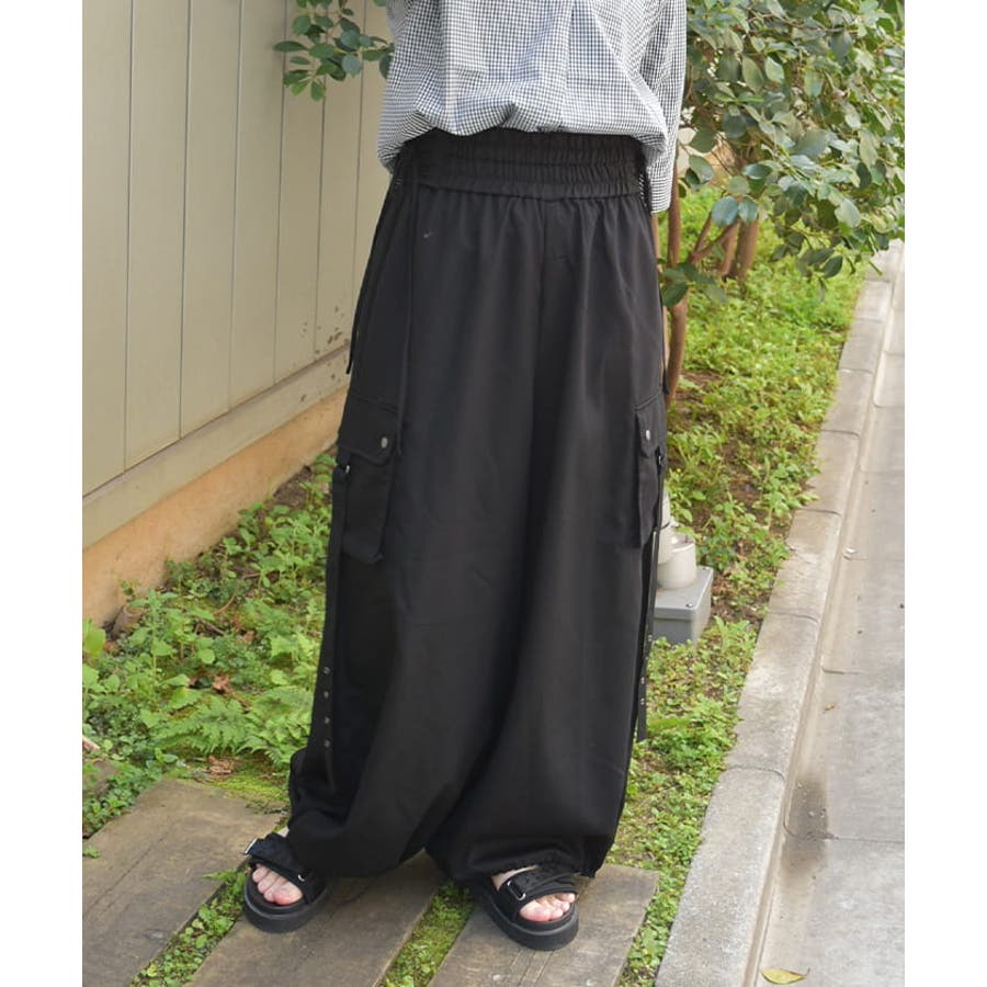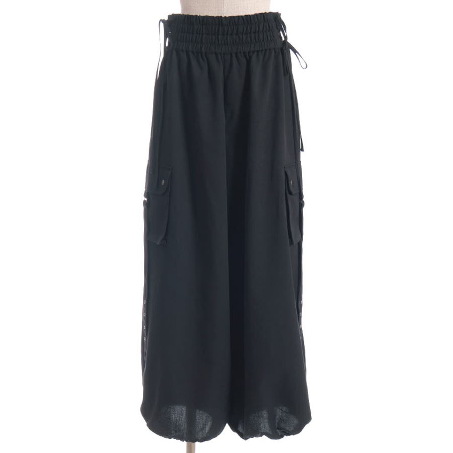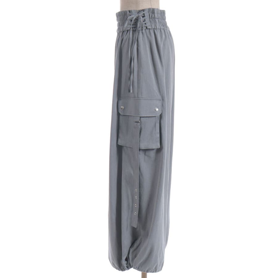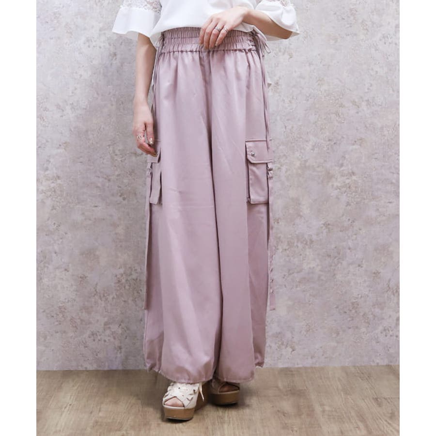 サイドの編み上げデザインがアクセントになったカーゴパンツは、トレンド感とリラックス感を兼ね備えたアイテム。ウエストゴム仕様により快適な穿き心地と脚長効果も期待できます。