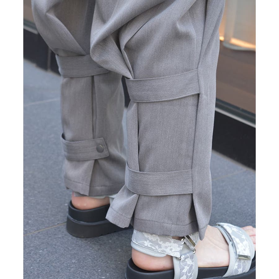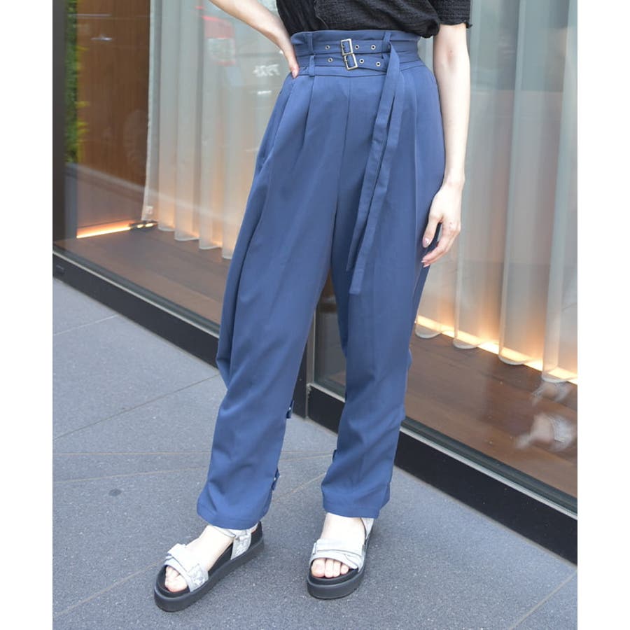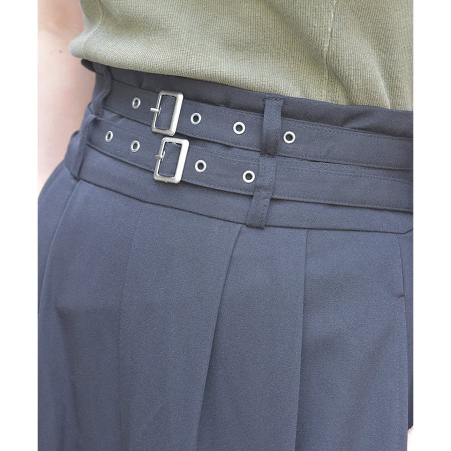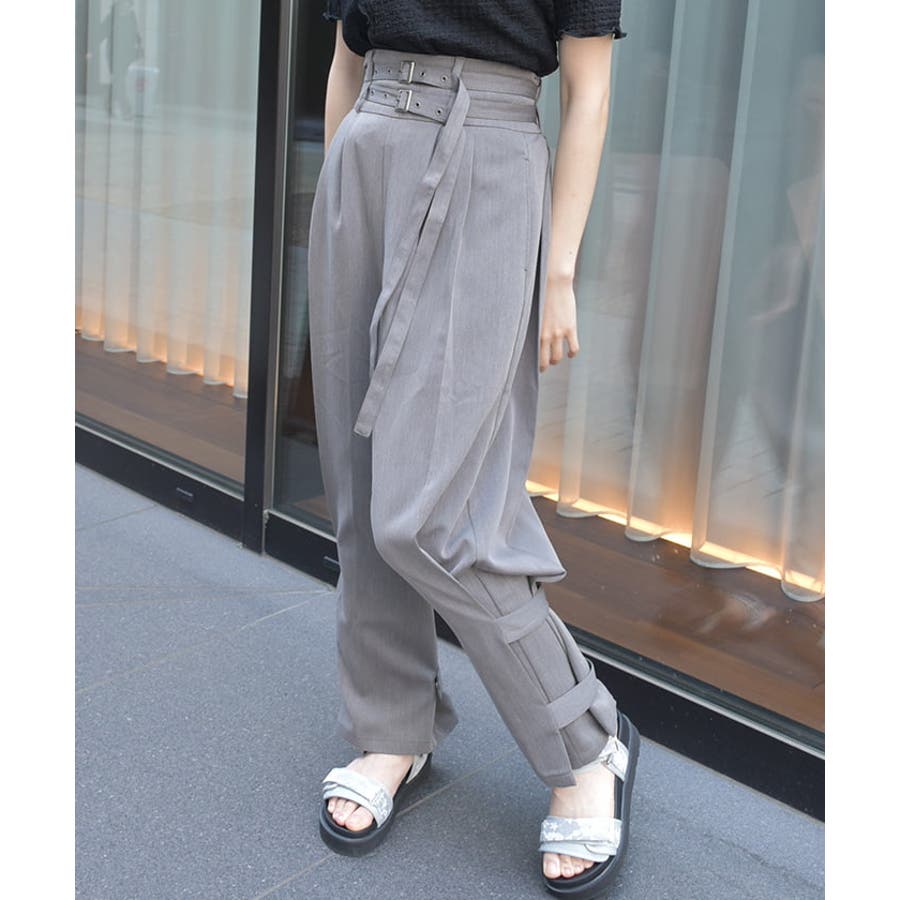 ダブルベルトがアクセントになった存在感のあるデザインパンツは、スタイリング次第で印象を自在に変えられるアイテムです。