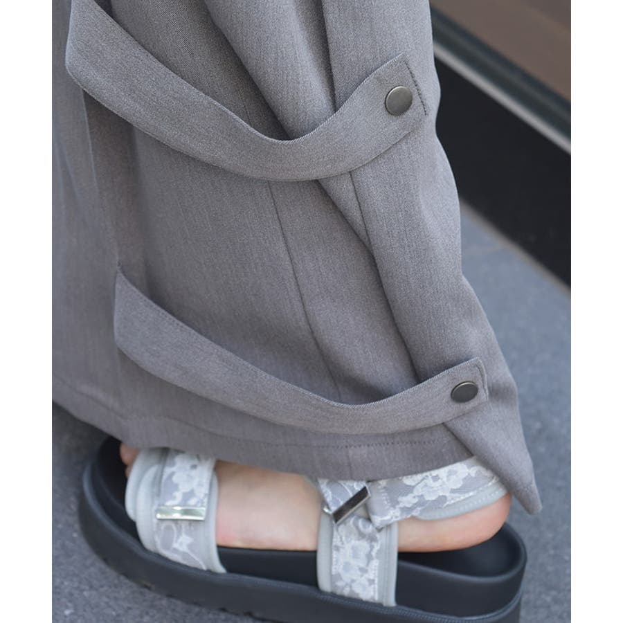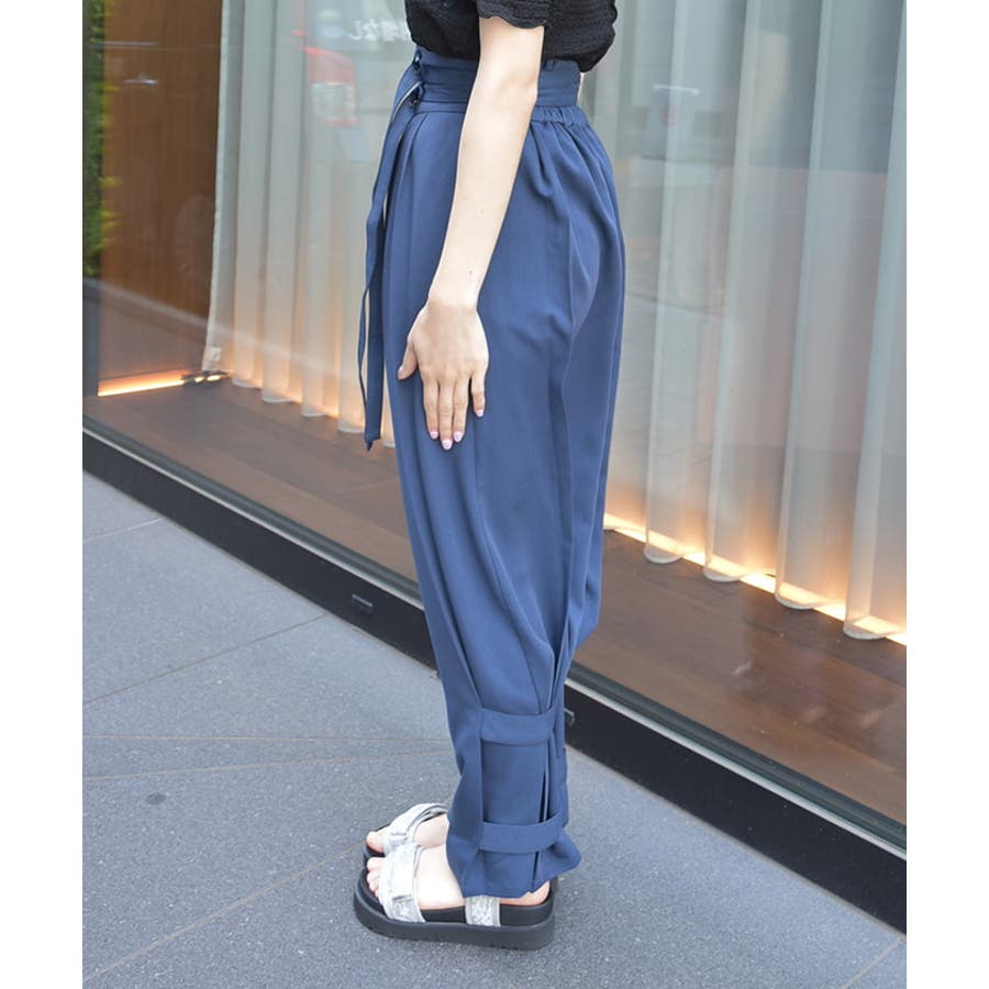 裾のタブは付け位置を変えることでワイドシルエットからサルエル風シルエットにアレンジできる仕様が魅力です。