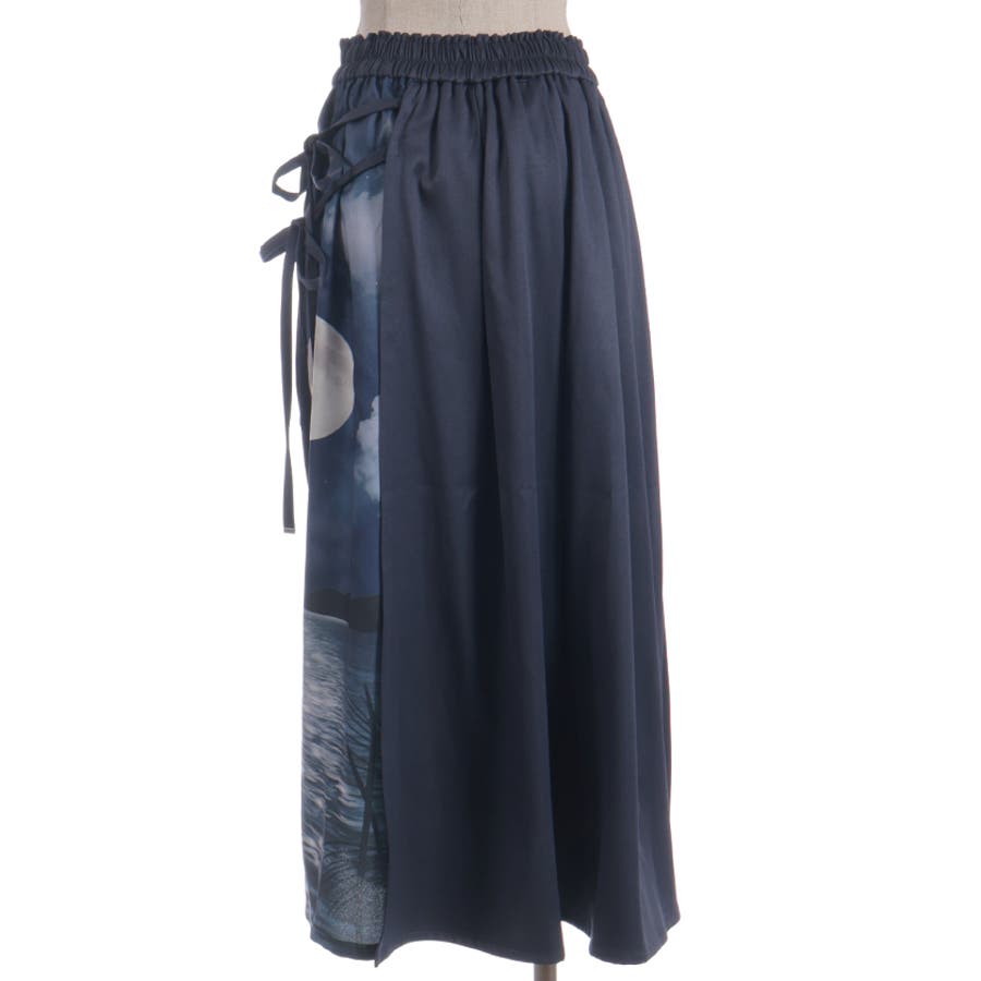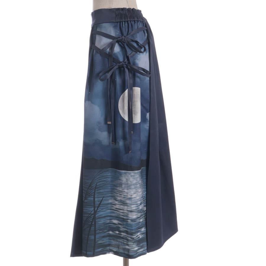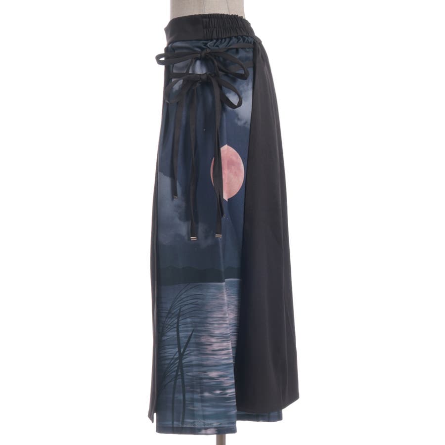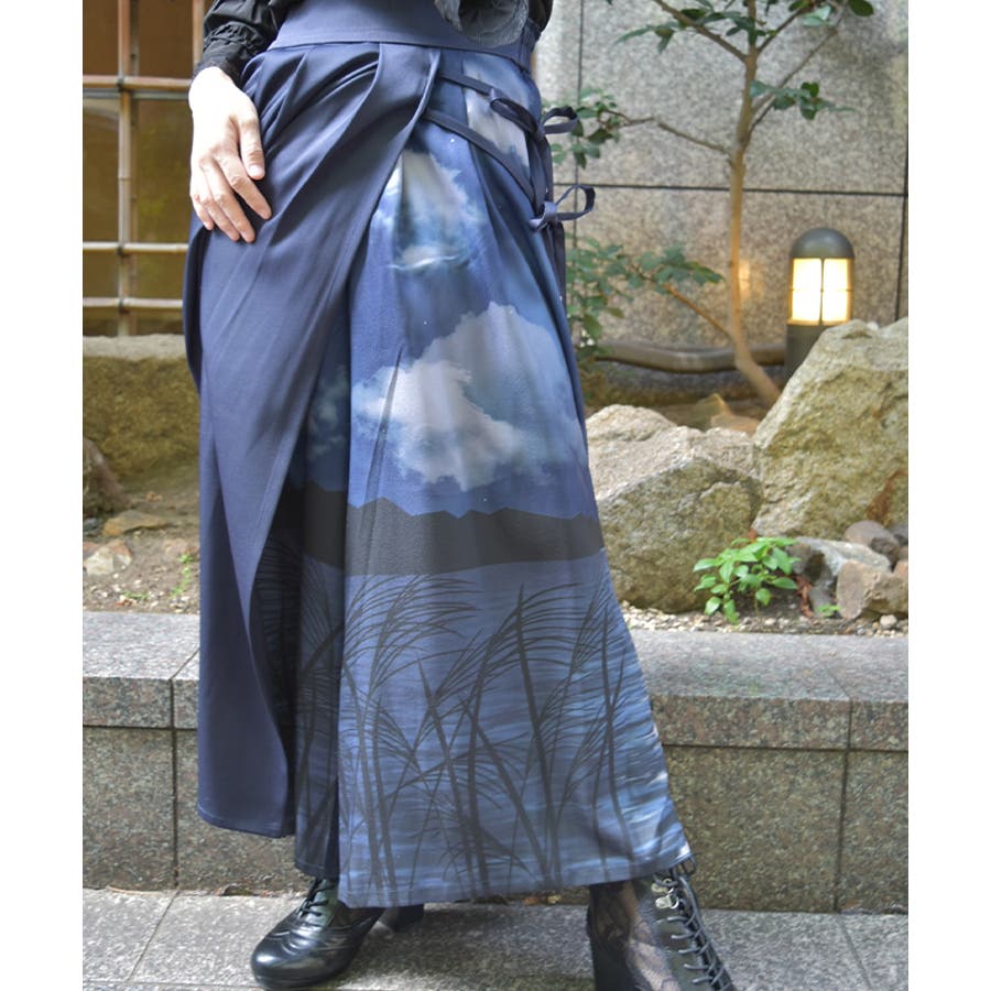 サイドにオリジナルのプリントを施したワイドパンツ。水面に映る十五夜やすすきをモチーフにした幻想的なデザインを感じられる1枚です。
