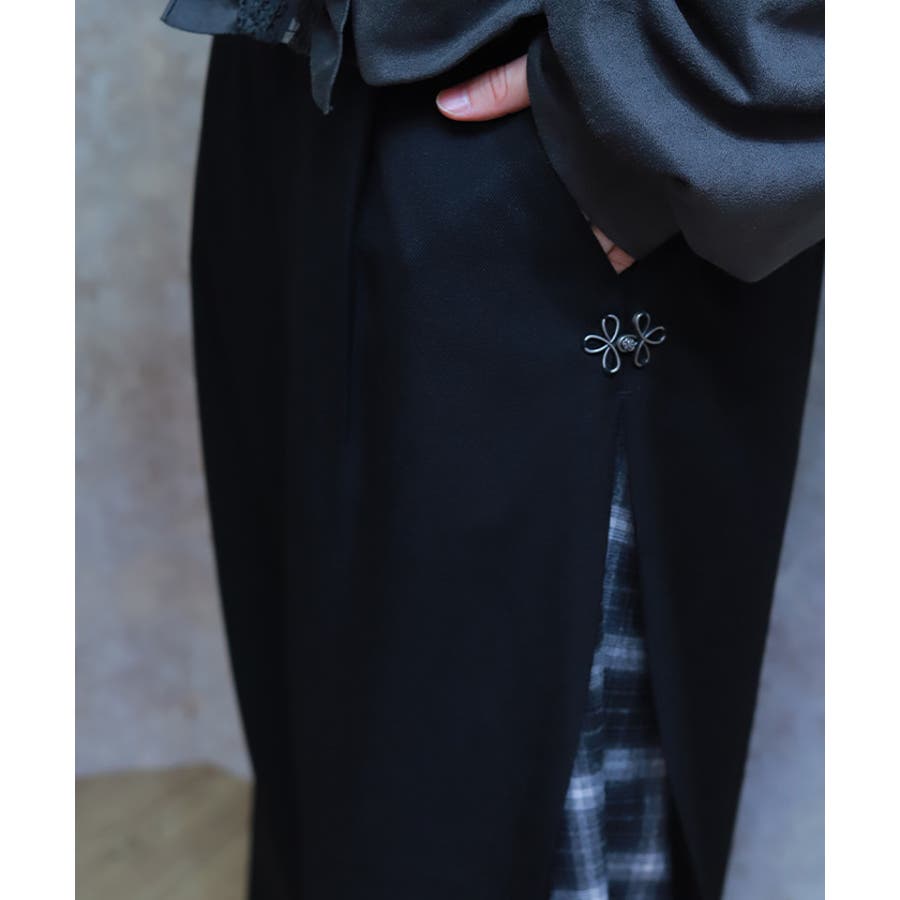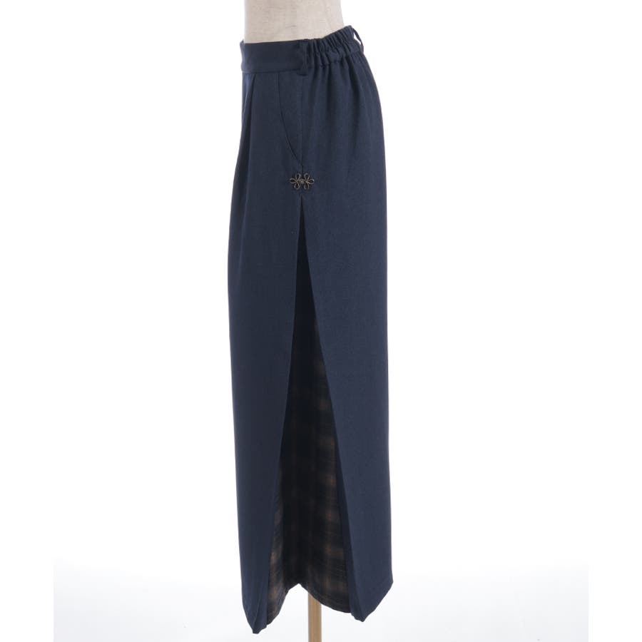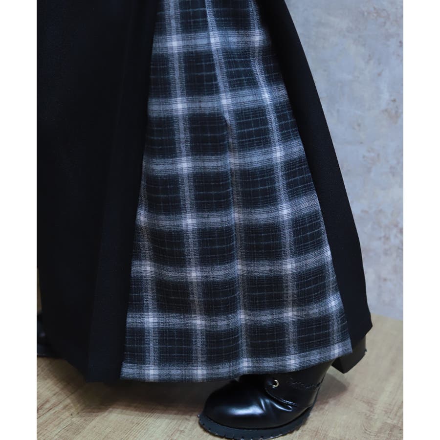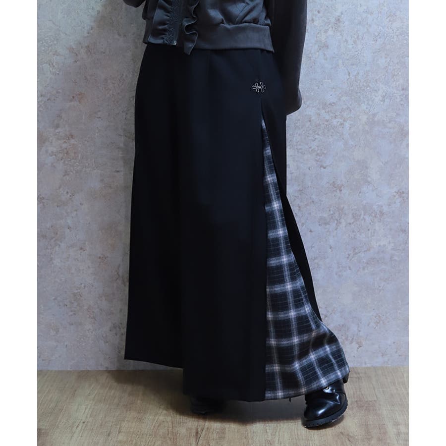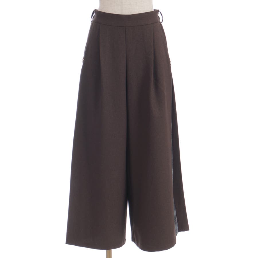 動くとちらっと両サイドから覗く、チェック柄切替がポイントのワイドパンツです。