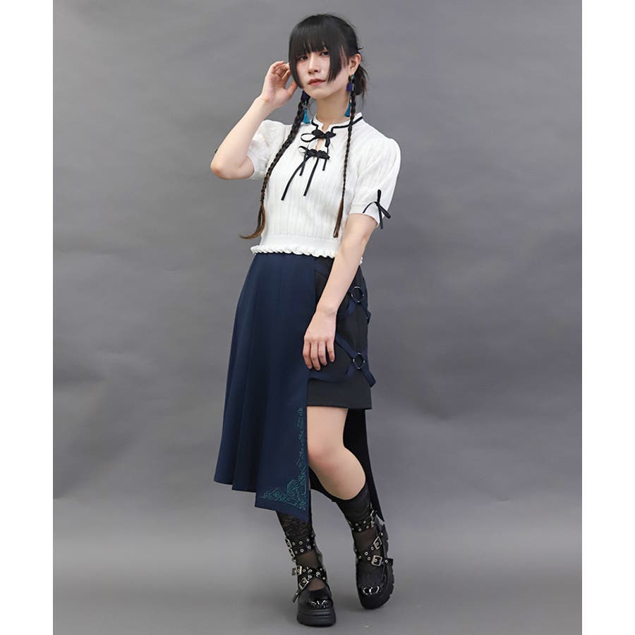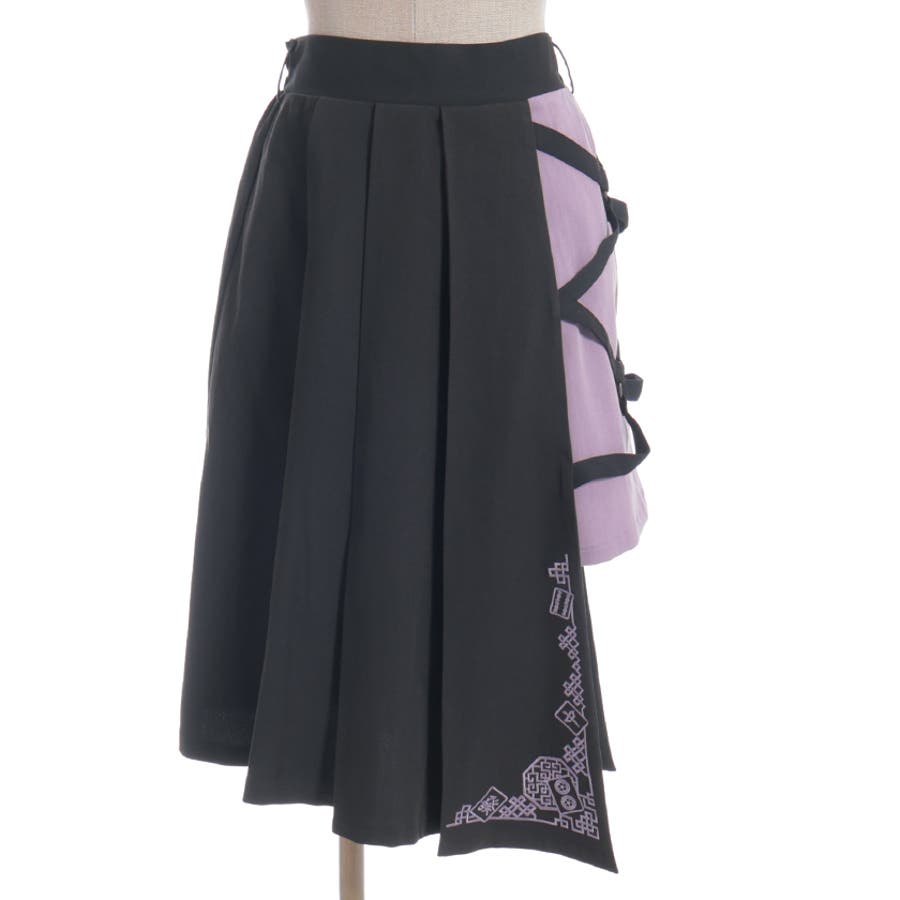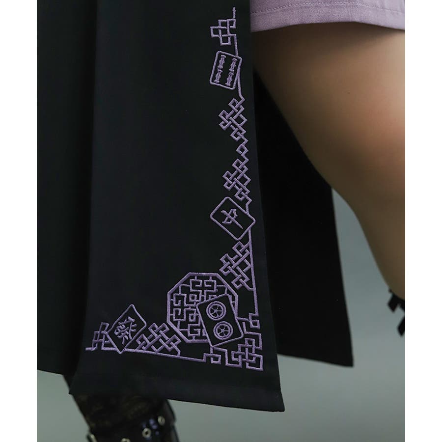 麻雀牌をモチーフとして刺繍に取り入れたスカートです。