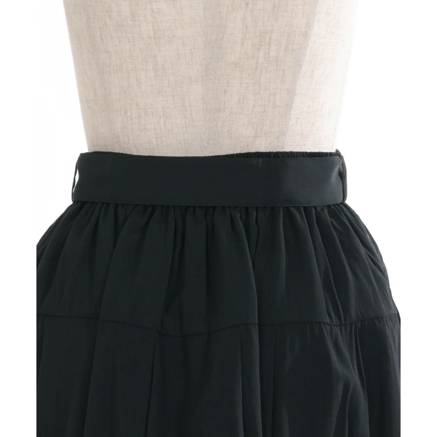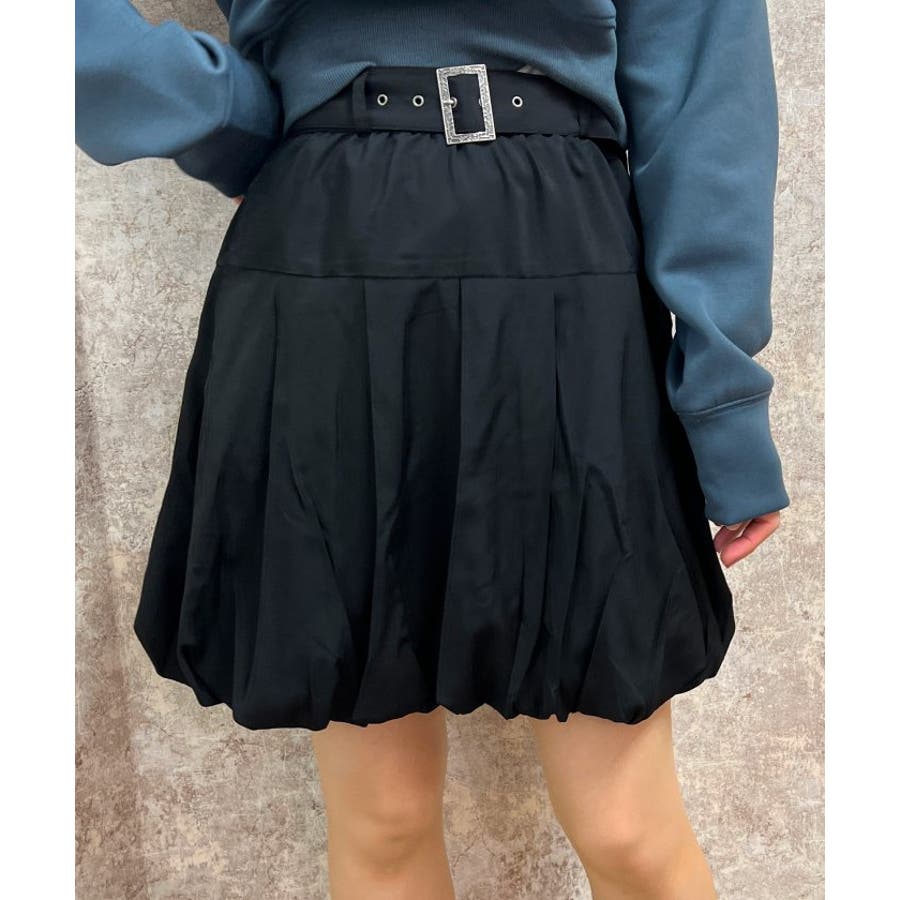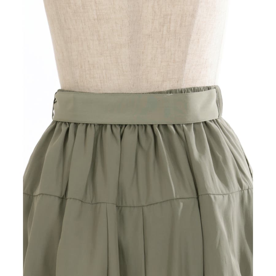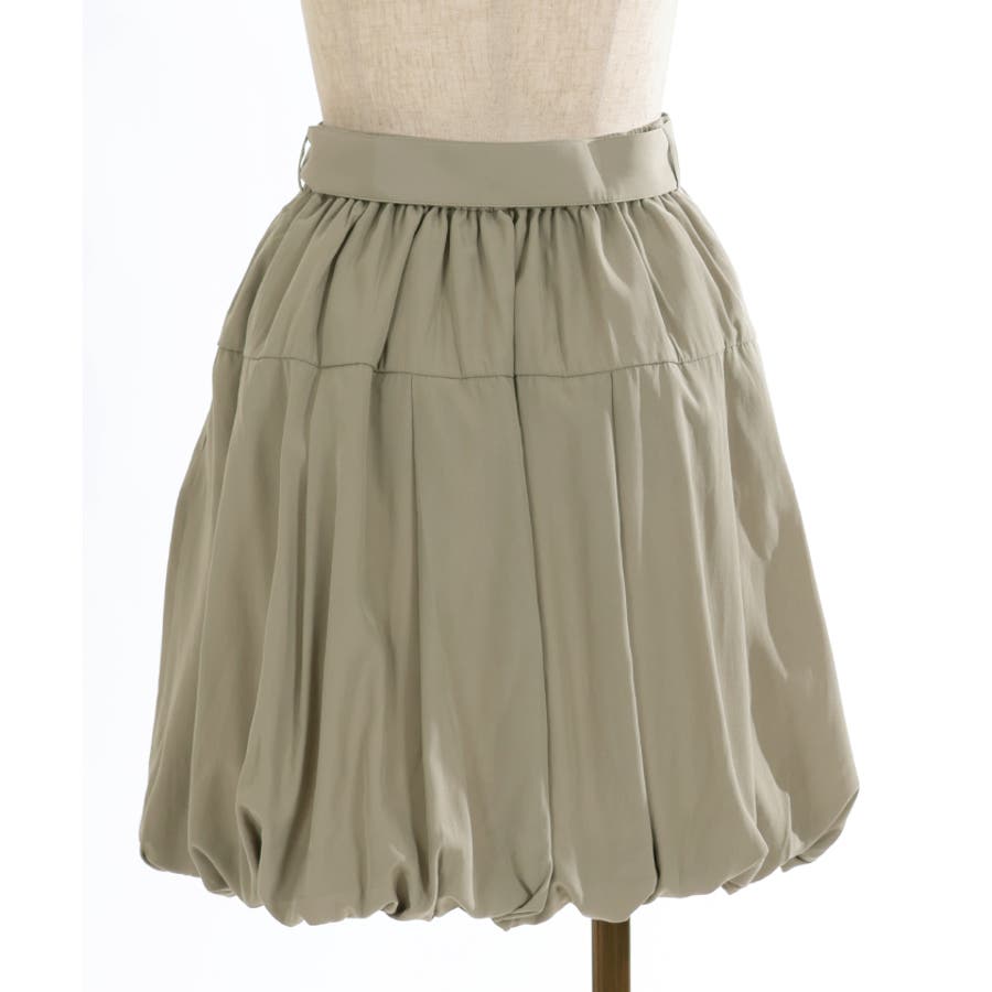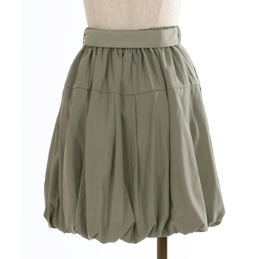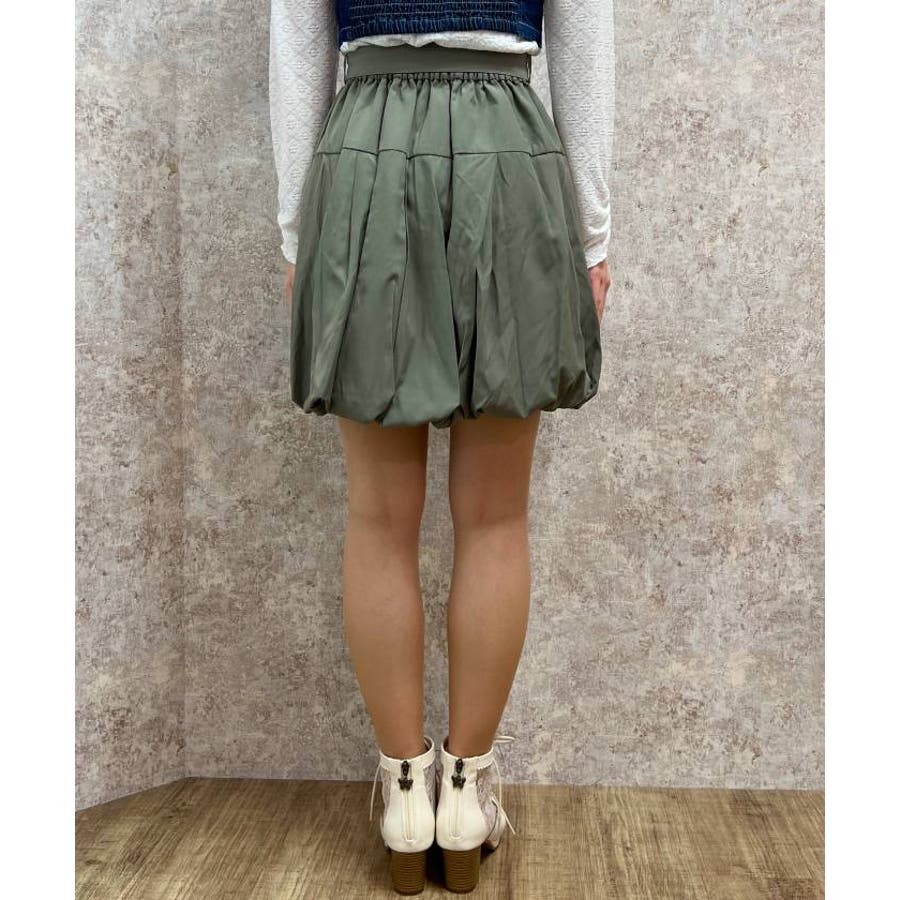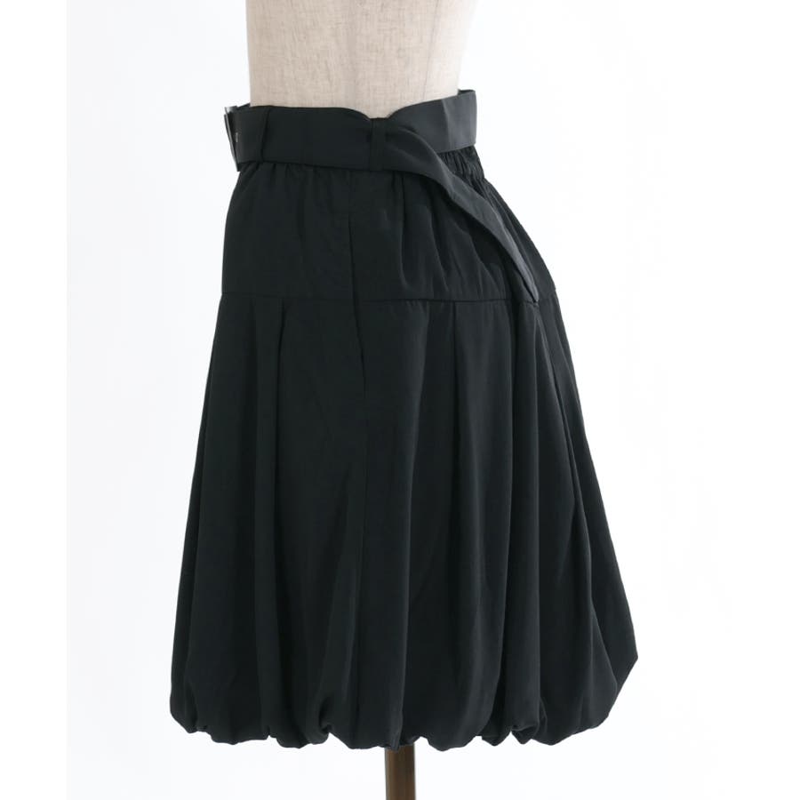 ウエスト~ヒップラインに切り替えを入れ、広がりすぎないようクールなシルエットに。ビッグなバックルが存在感をプラス。