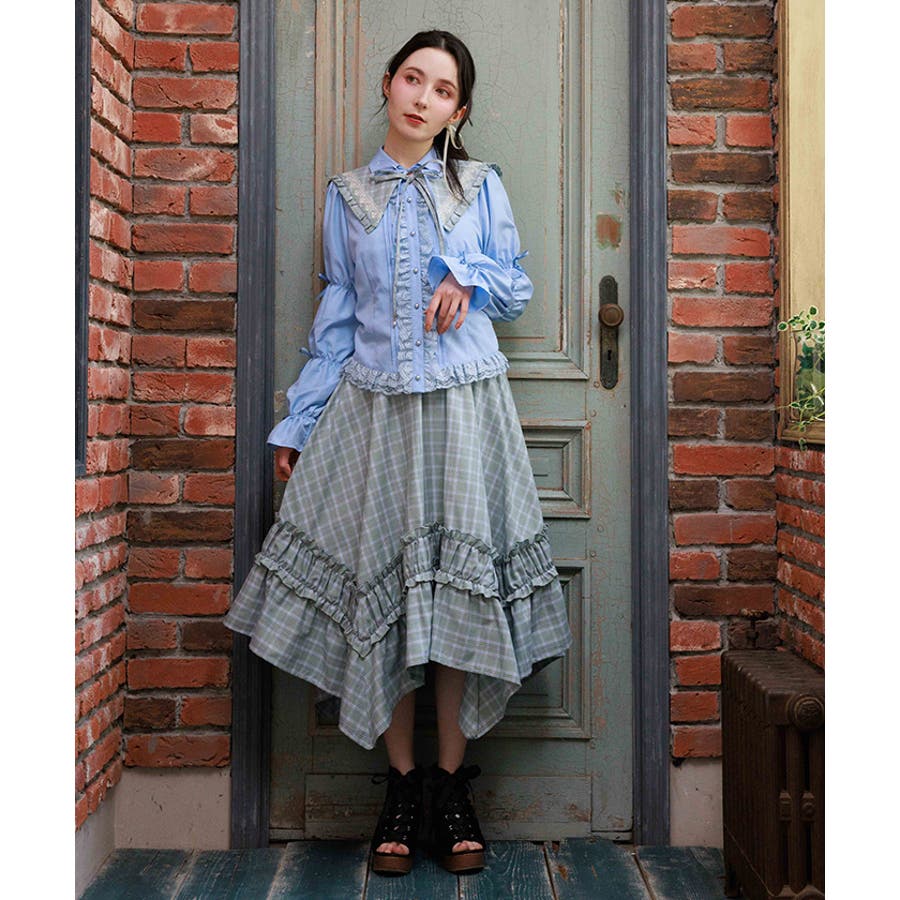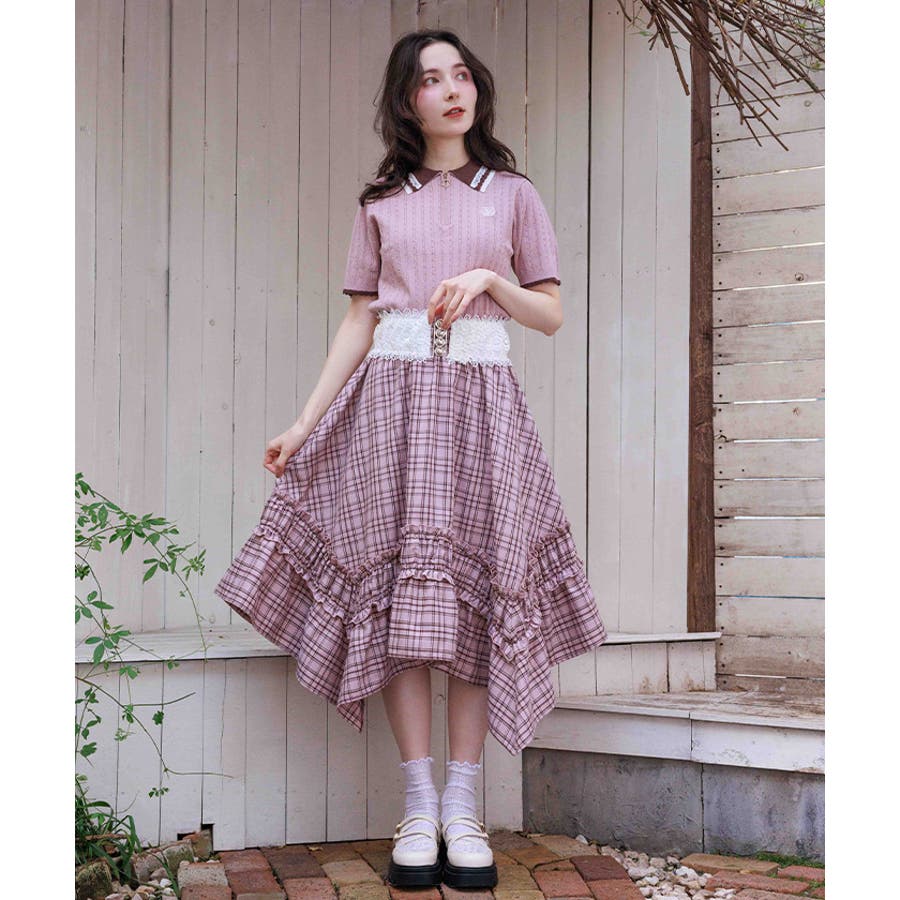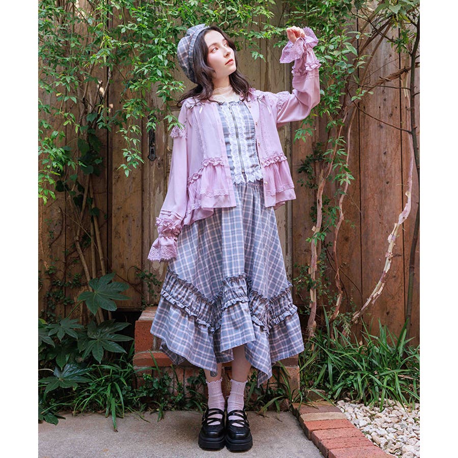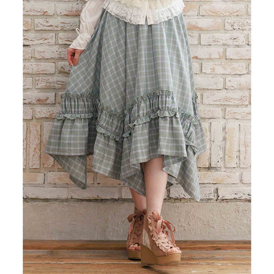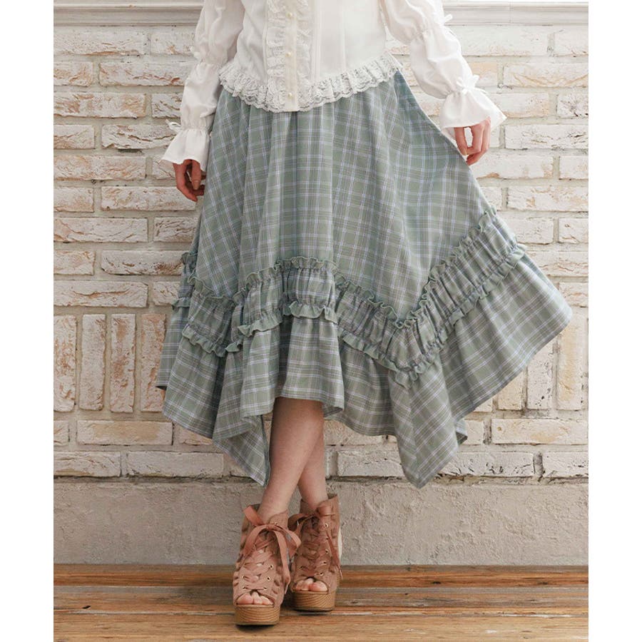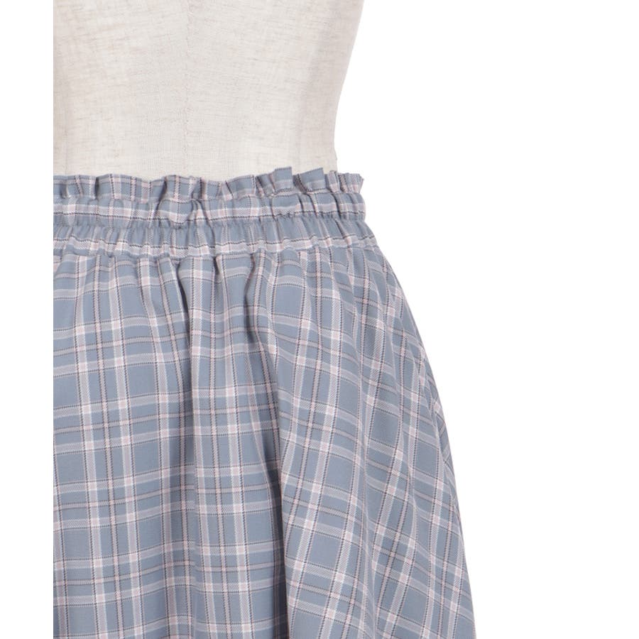ブランドオリジナルのチェック柄を使用し、広がるイレヘムデザインで立体感を演出。ギャザーフリル切替が、歩くたびに軽やかに揺れます。ウエストはシャーリングゴム仕様で、ストレスフリーな穿き心地も魅力。トップスインもきれいに決まります。【コーディネート】