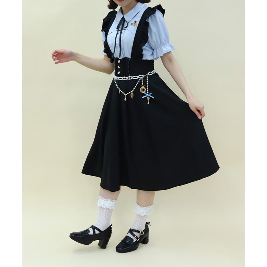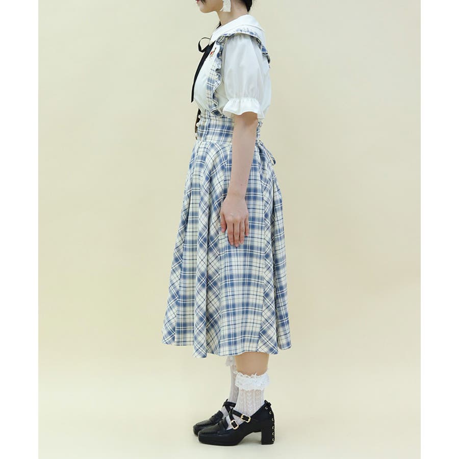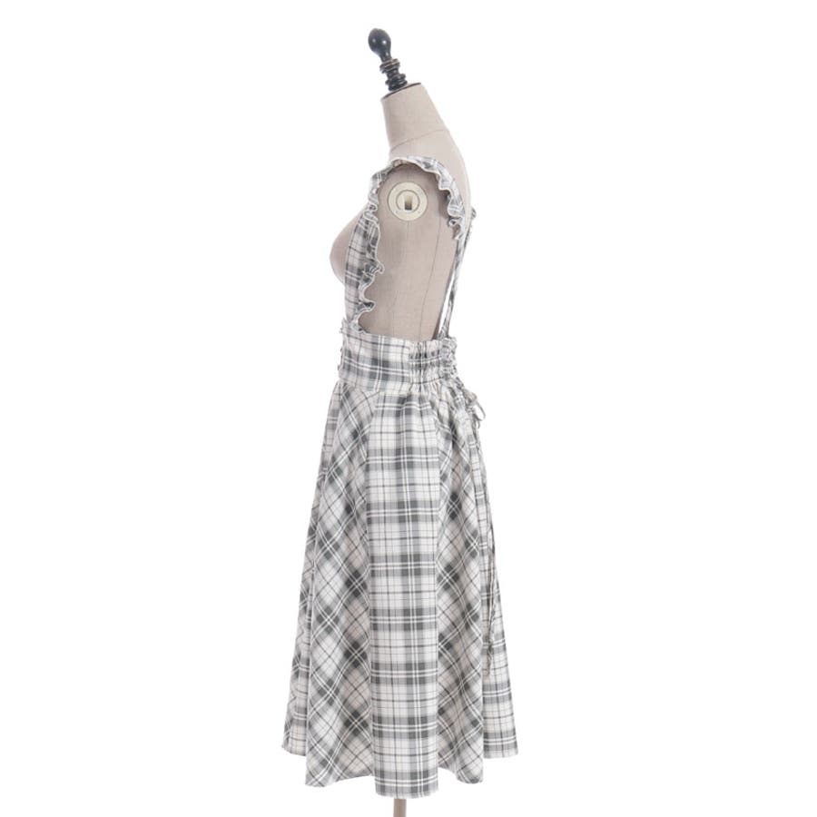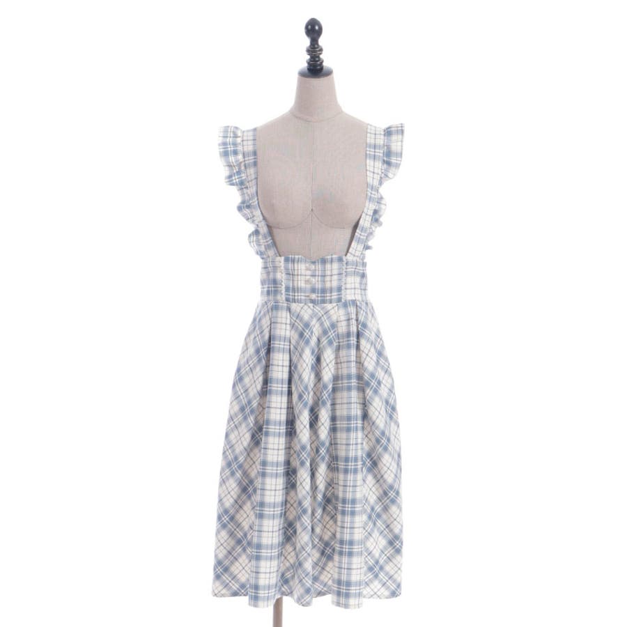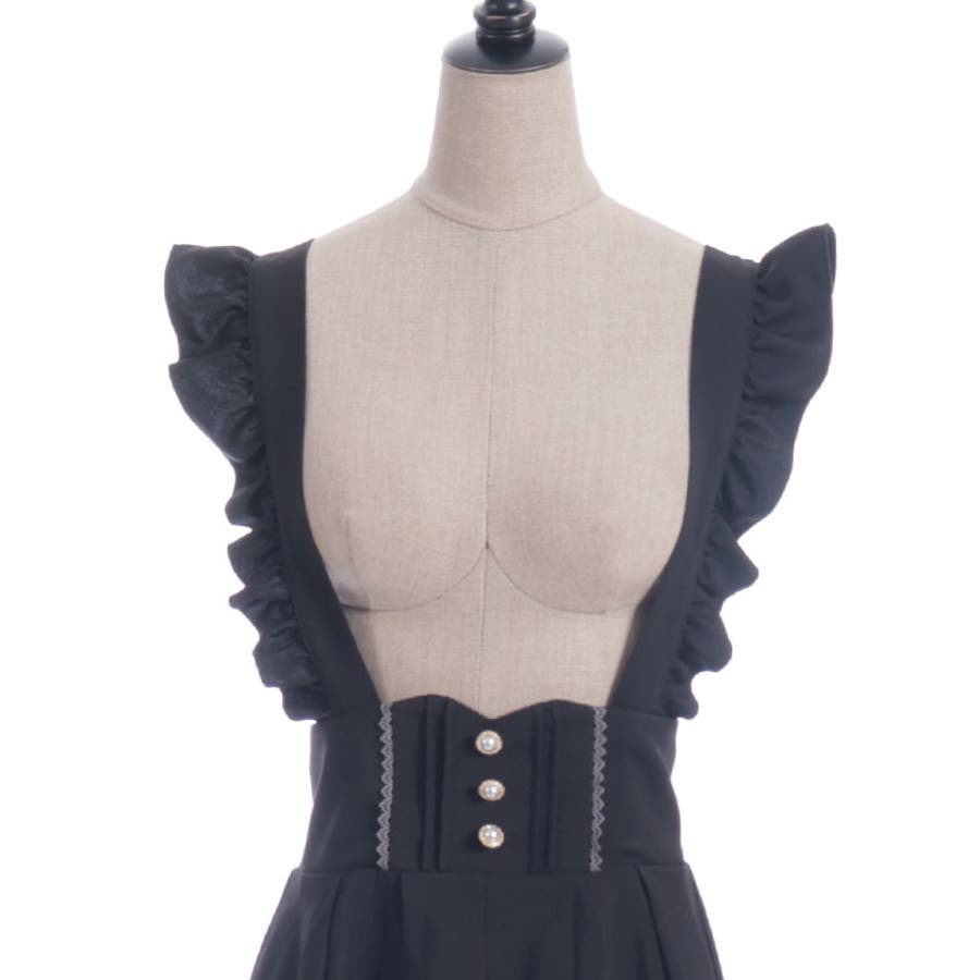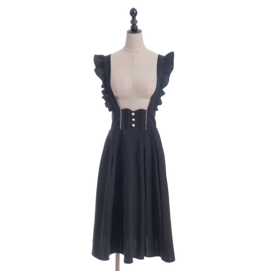 ウエストからフレアに広がりサスを取り外してもかわいく着られるアイテムです。