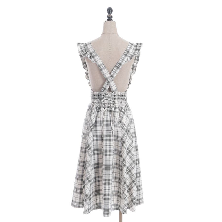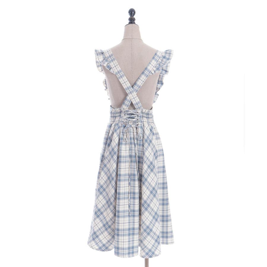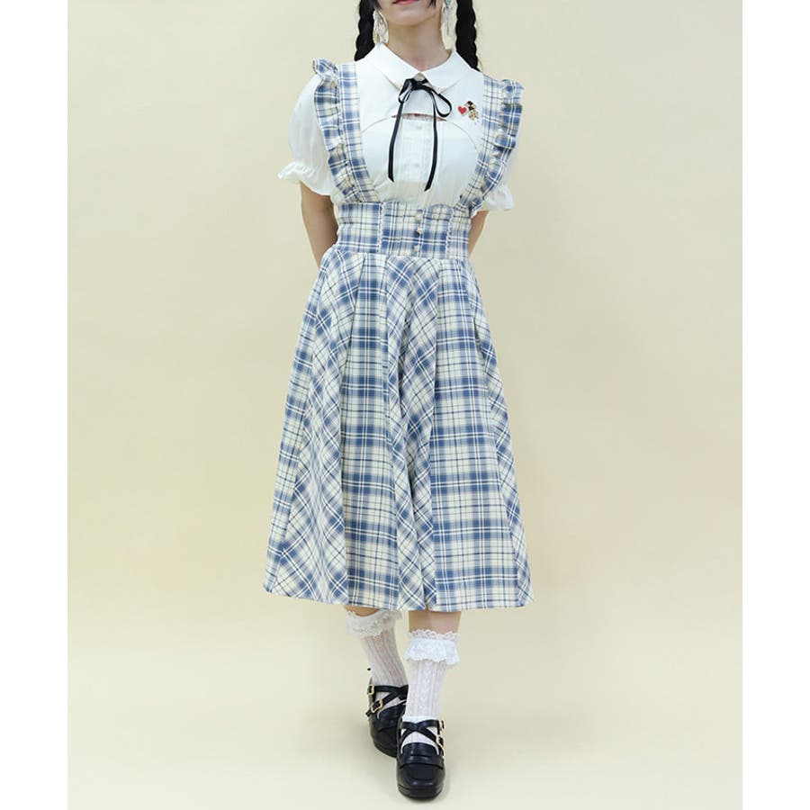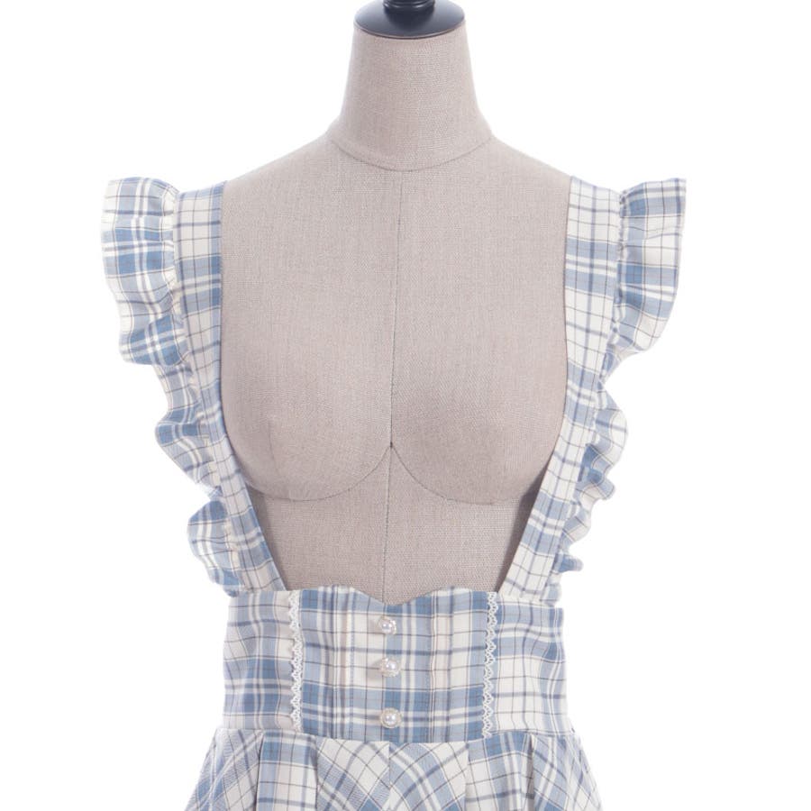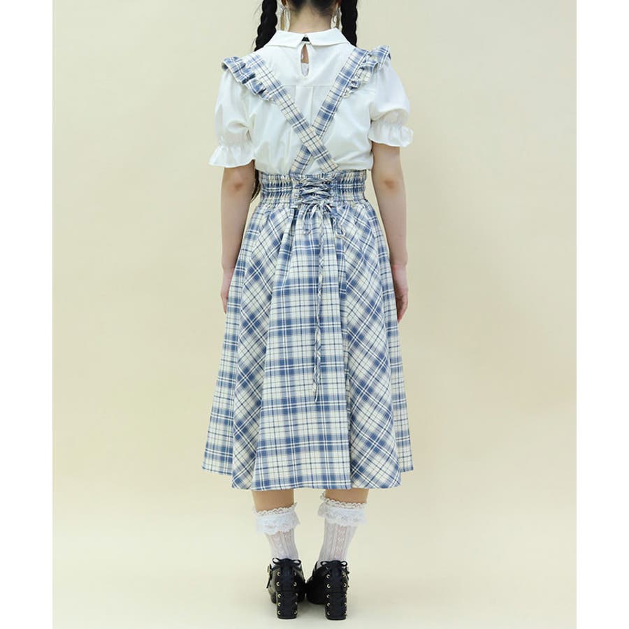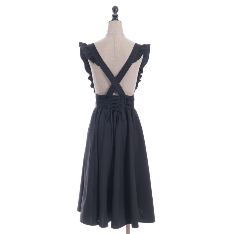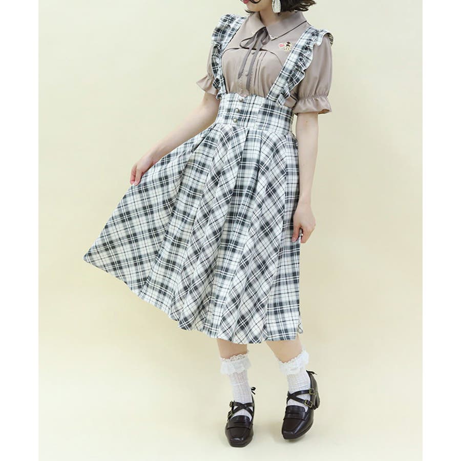ウエストからフレアに広がりサスを取り外してもかわいく着られるアイテムです。