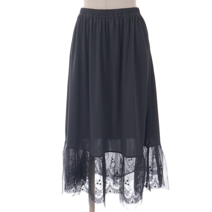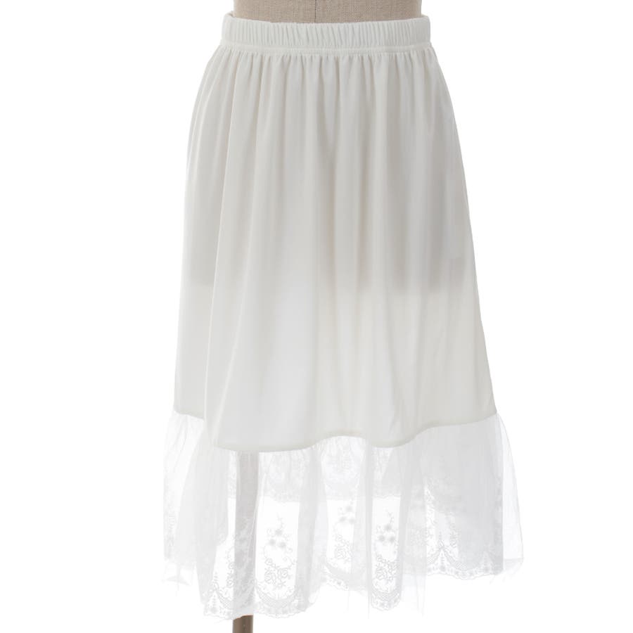 スカートの裾からレースを覗かせて、ボリュームや着丈を調節できるペチスカートです。