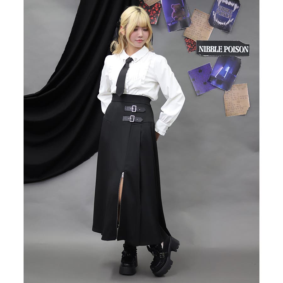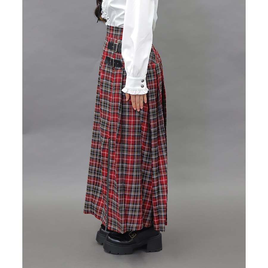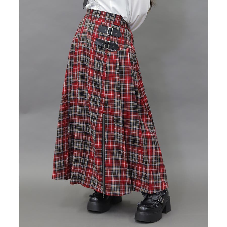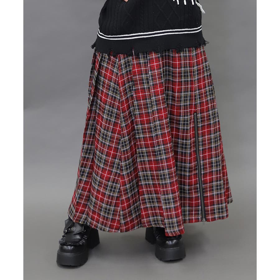 王道のプリーツロングスカートにファスナースリットをあしらい辛口に仕上げたアイテムです。